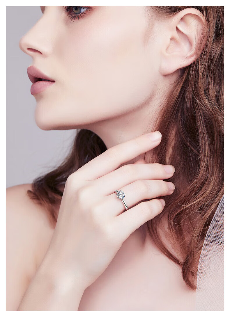 Chinese gold diamond platinum ring female platinum order wedding diamond ring gift for girlfriend and wife birthday platinum six claw diamond ring-no car flower 24 points diamond