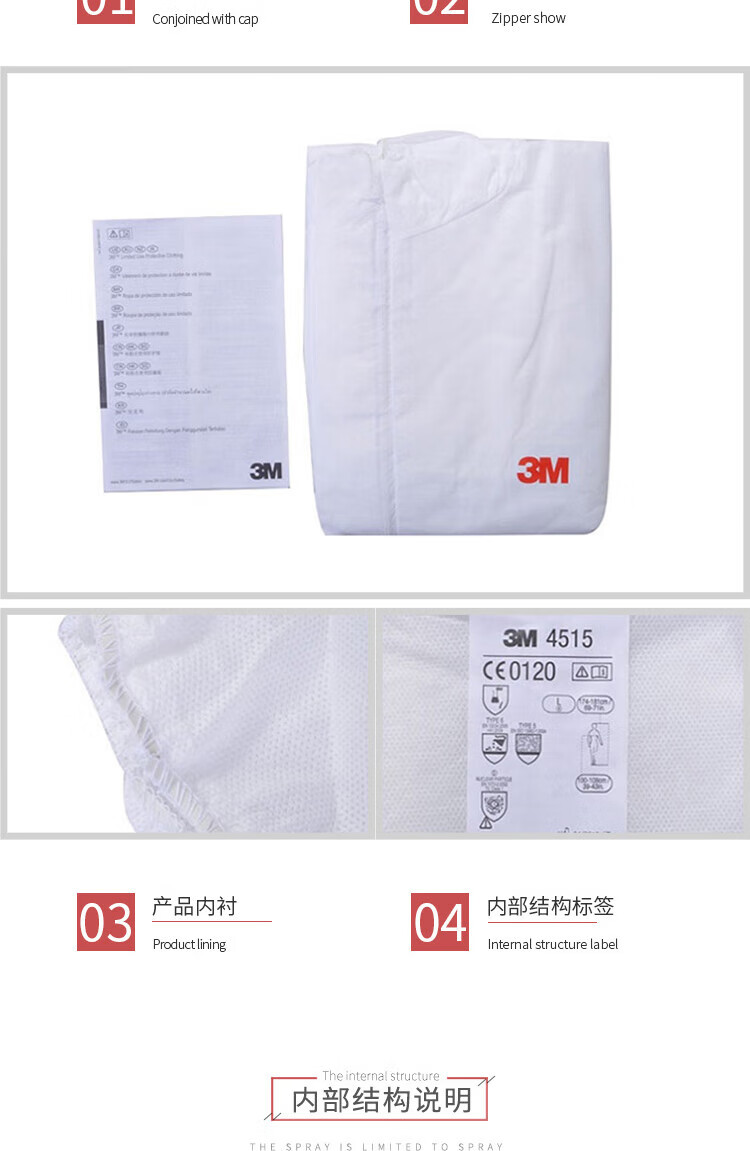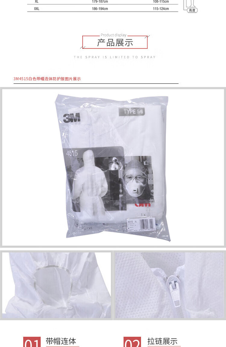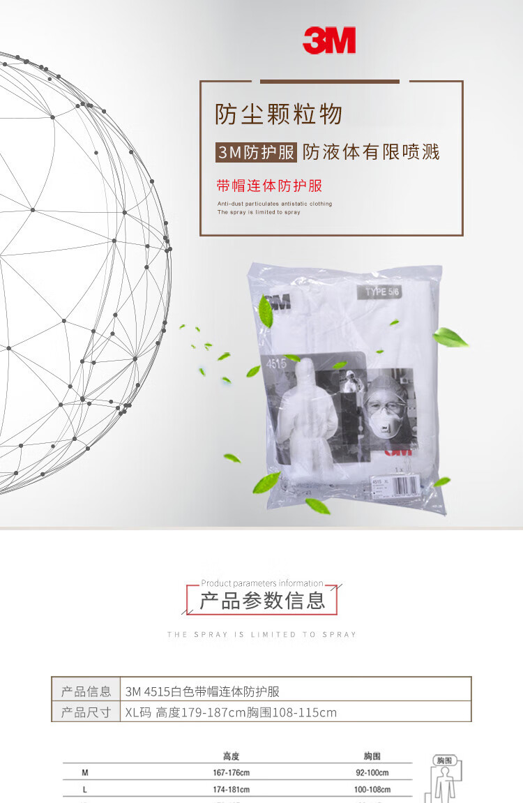 3M 4515 protective clothing white hooded one-piece dust-proof spray painting work anti-particle industrial comfortable breathable work clothes isolation clothing white white L
