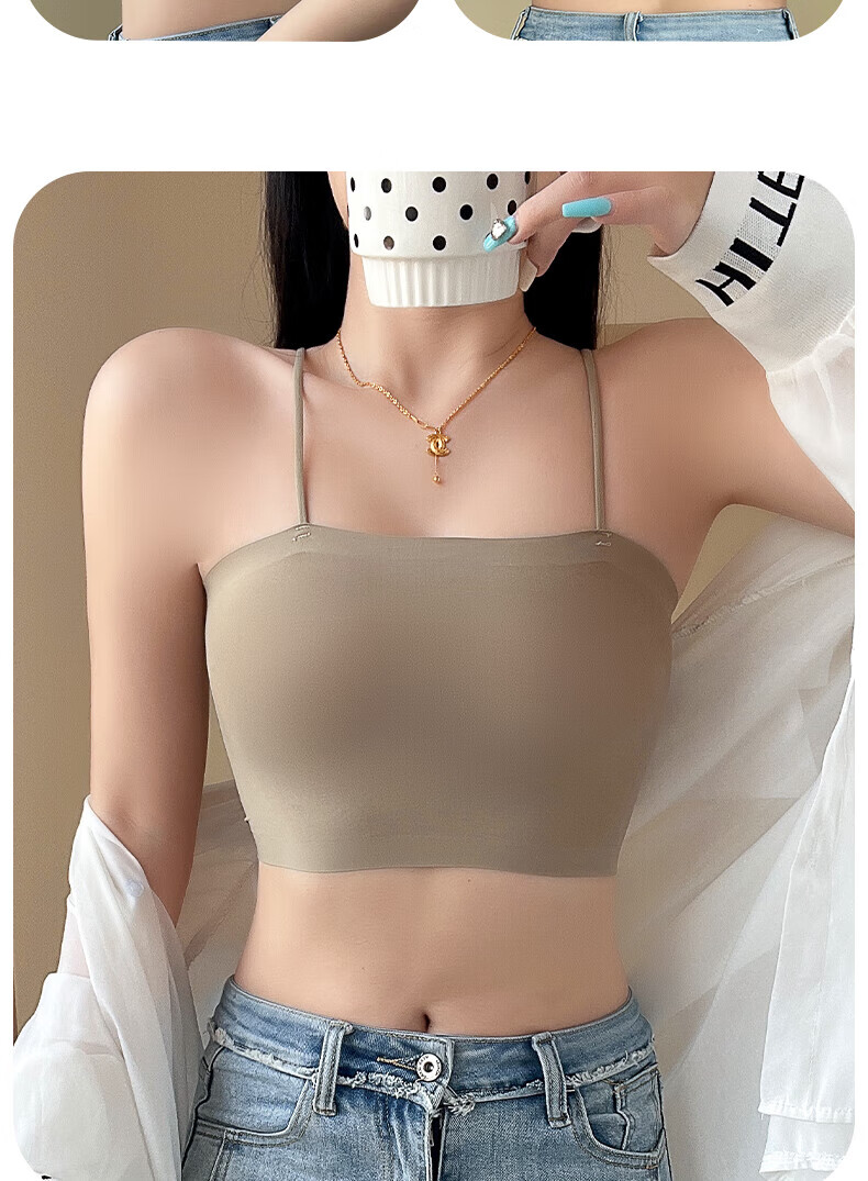LangSha anti-exposure, traceless and beautiful back tube top underwear for girls without breast pads, small camisole with inner cover, thin bust, temperament white, no need to wear bra, fixed bra M 70-89Jin Jin is equal to 0.5 kg