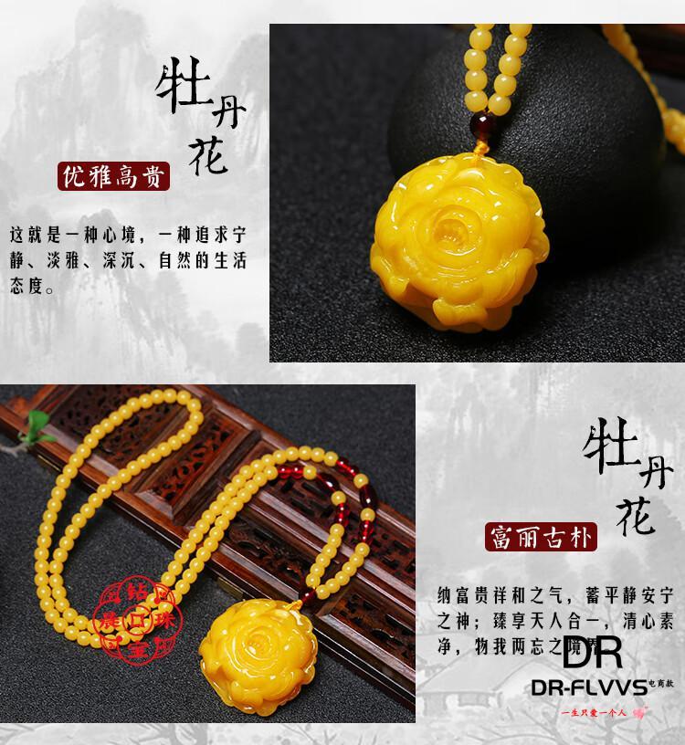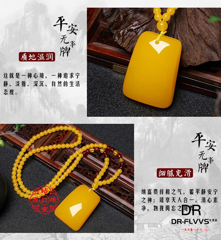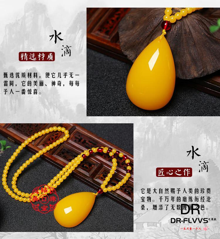 Fat Donglai's same style beeswax pendant top chain old water drop chicken fat yellow amber men's and women's long sweater chain couple pendant 1# water drop beeswax buy two + one