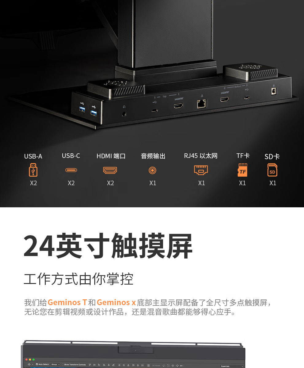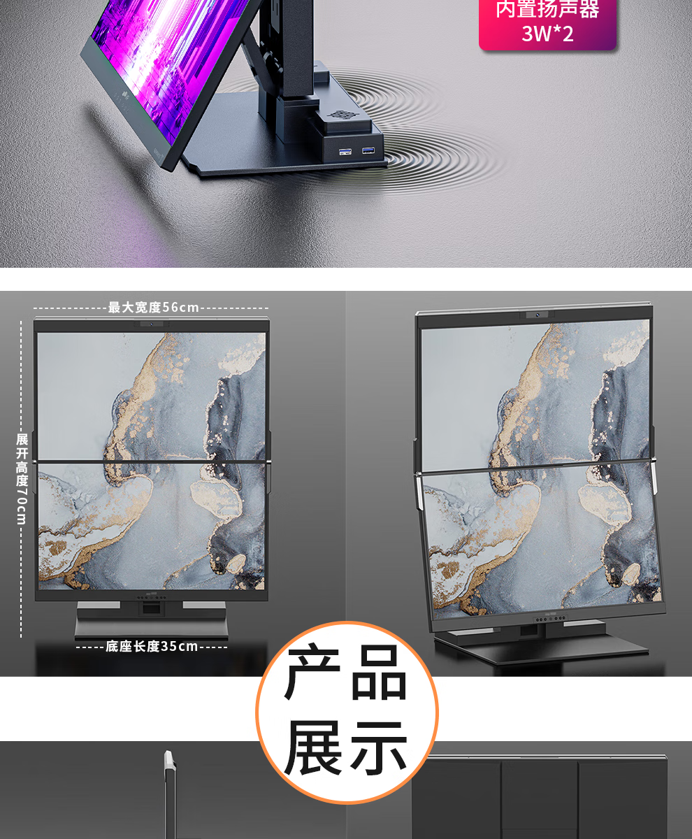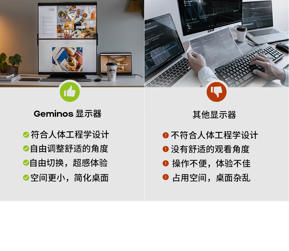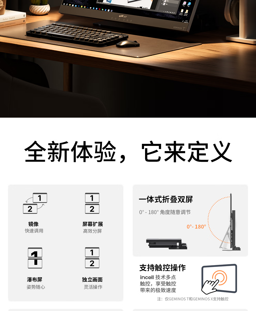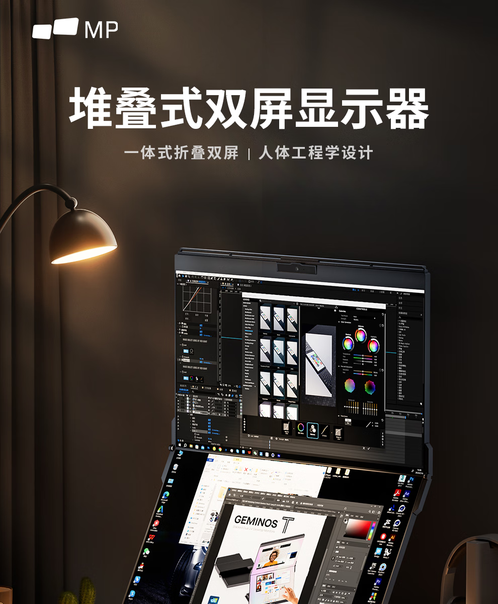 GEMINOS dual-screen display 2K portable screen touch screen external laptop expansion screen secondary screen design office game stock trading all-in-one folding desktop computer display dual 24-inch/1080P/60Hz/driver-free/non-touch