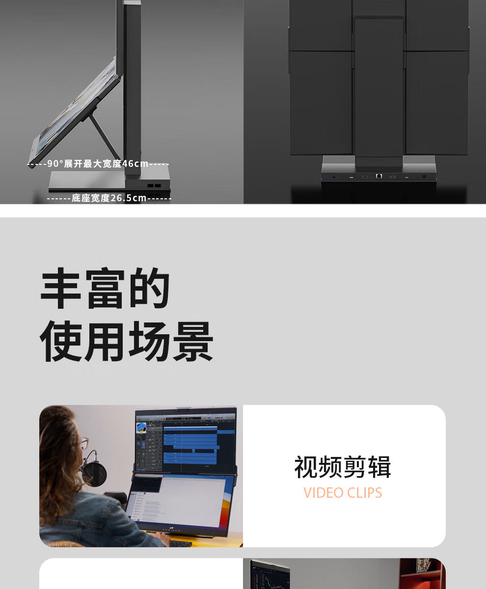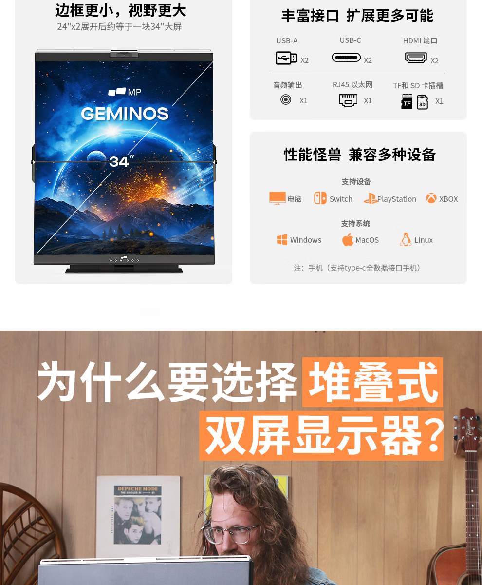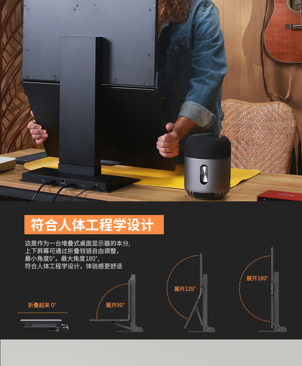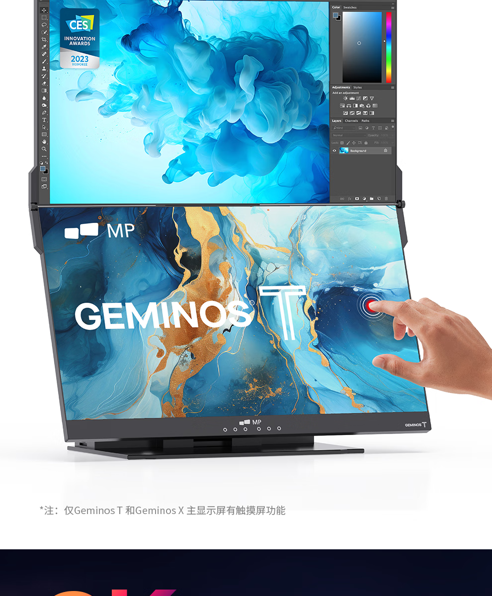 GEMINOS dual-screen display 2K portable screen touch screen external laptop expansion screen secondary screen design office game stock trading all-in-one folding desktop computer display dual 24-inch/1080P/60Hz/driver-free/non-touch