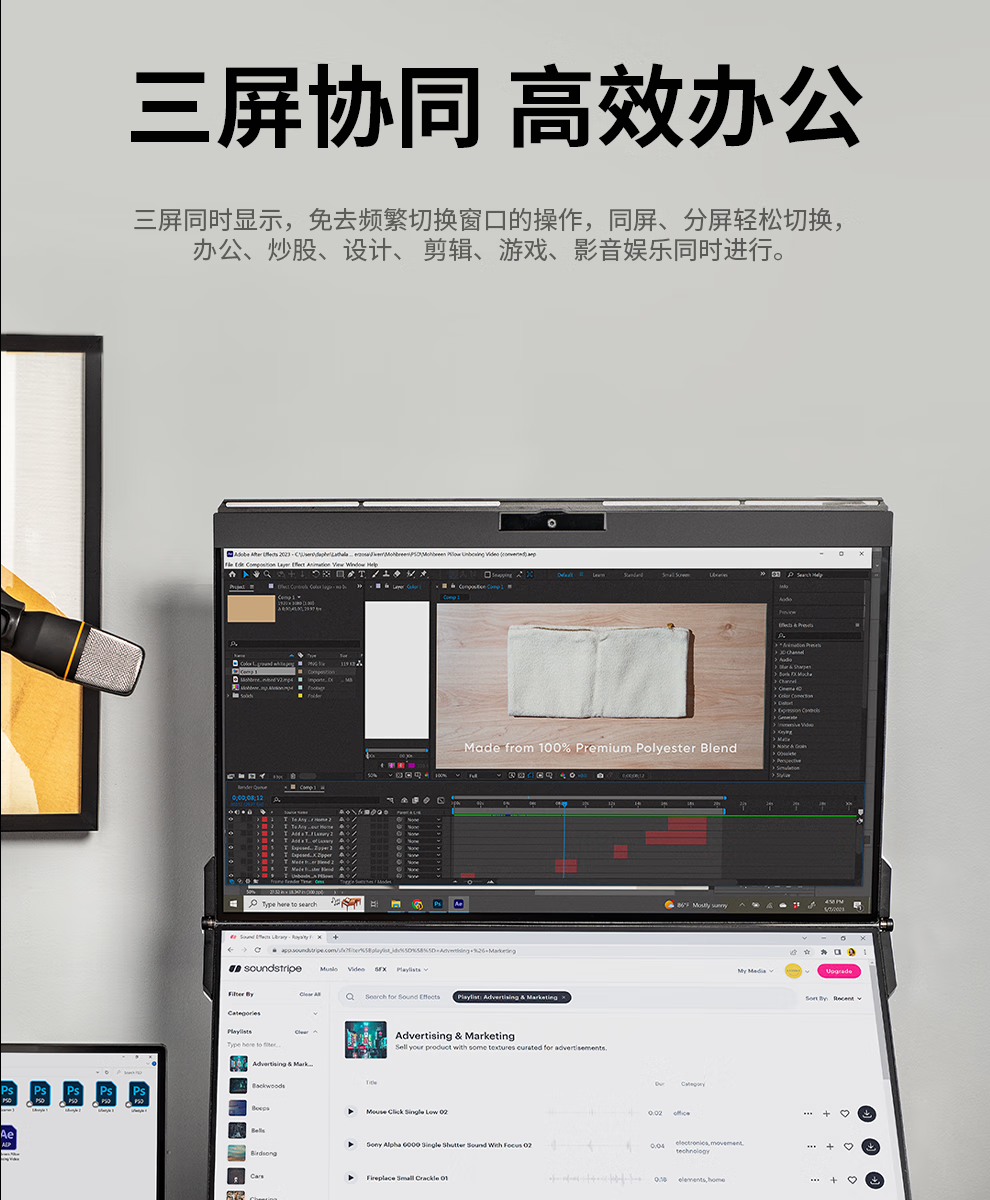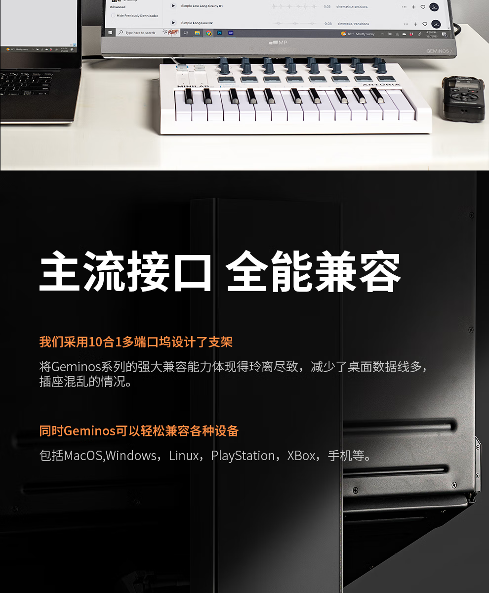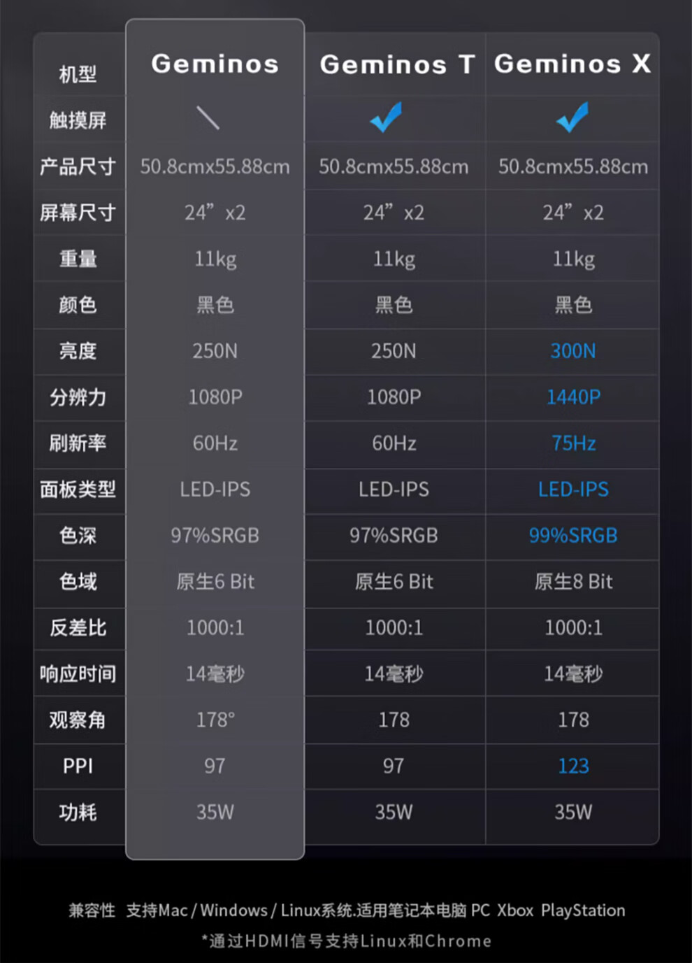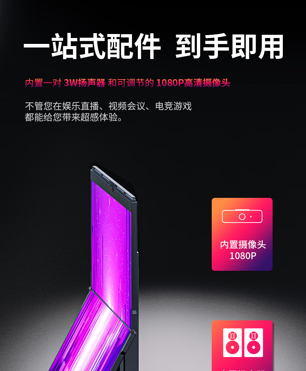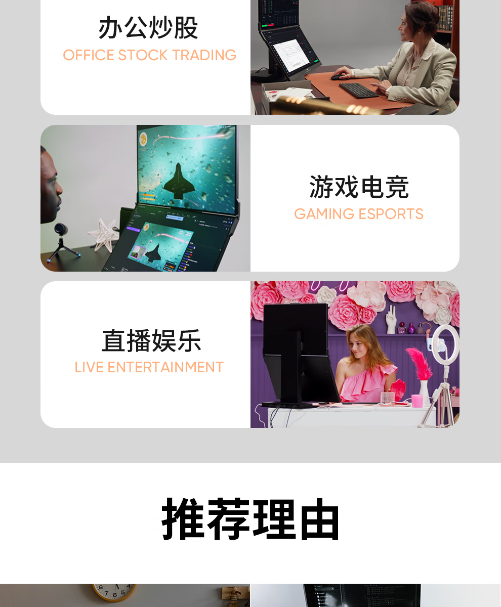 GEMINOS dual-screen display 2K portable screen touch screen external laptop expansion screen secondary screen design office game stock trading all-in-one folding desktop computer display dual 24-inch/1080P/60Hz/driver-free/non-touch