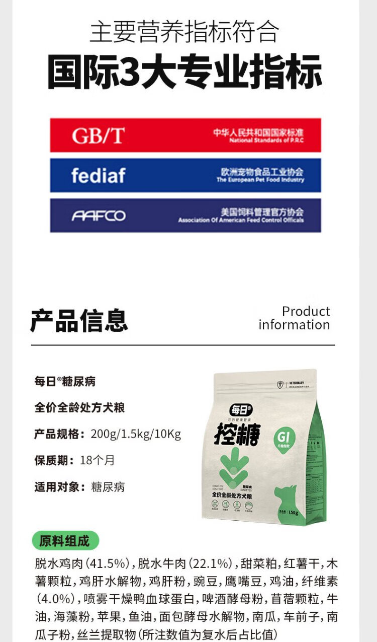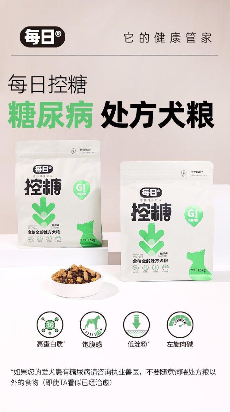 Daily dog food, special dog food for diabetes, low sugar, blood sugar control, full price puppy food, prescription food 1.5kg