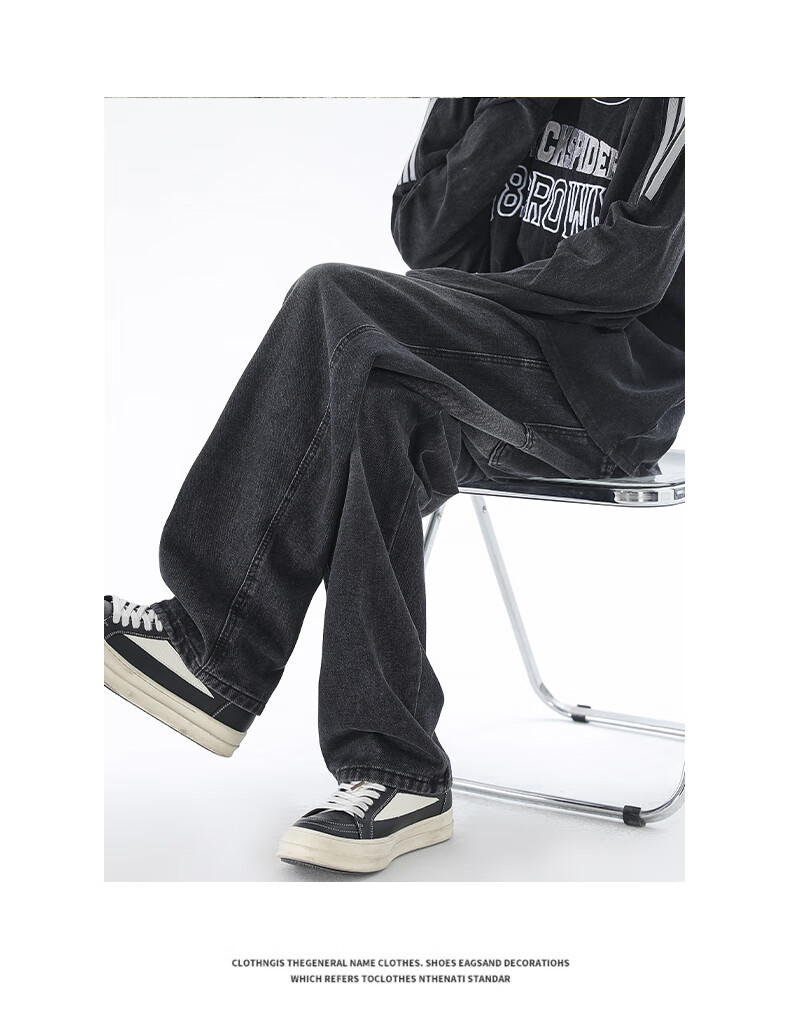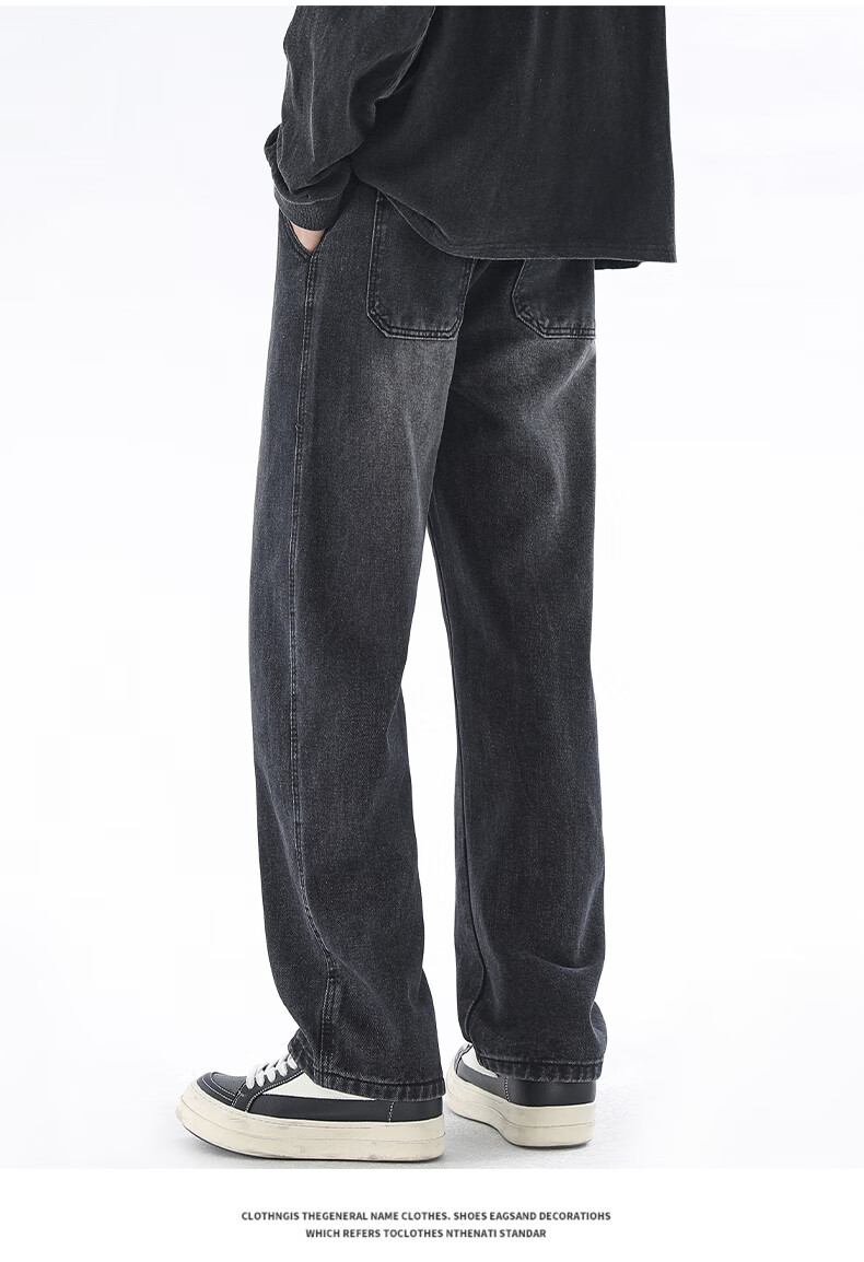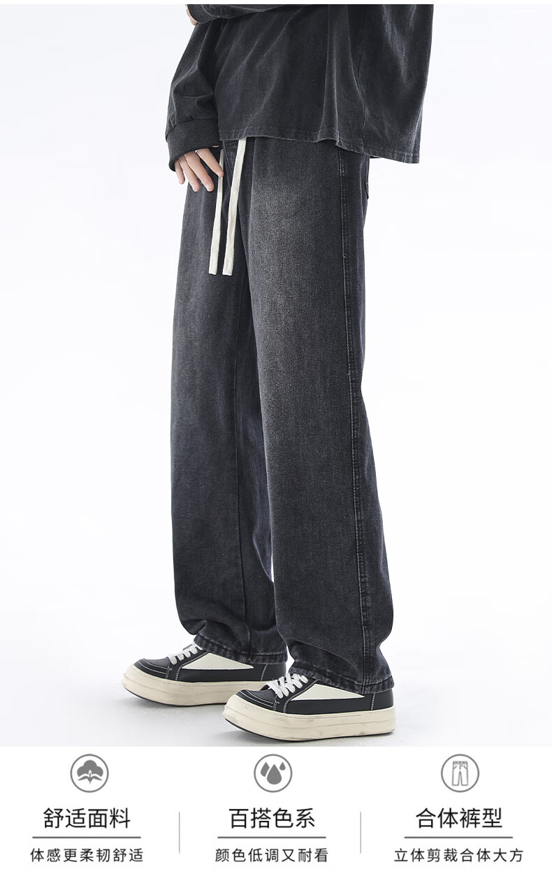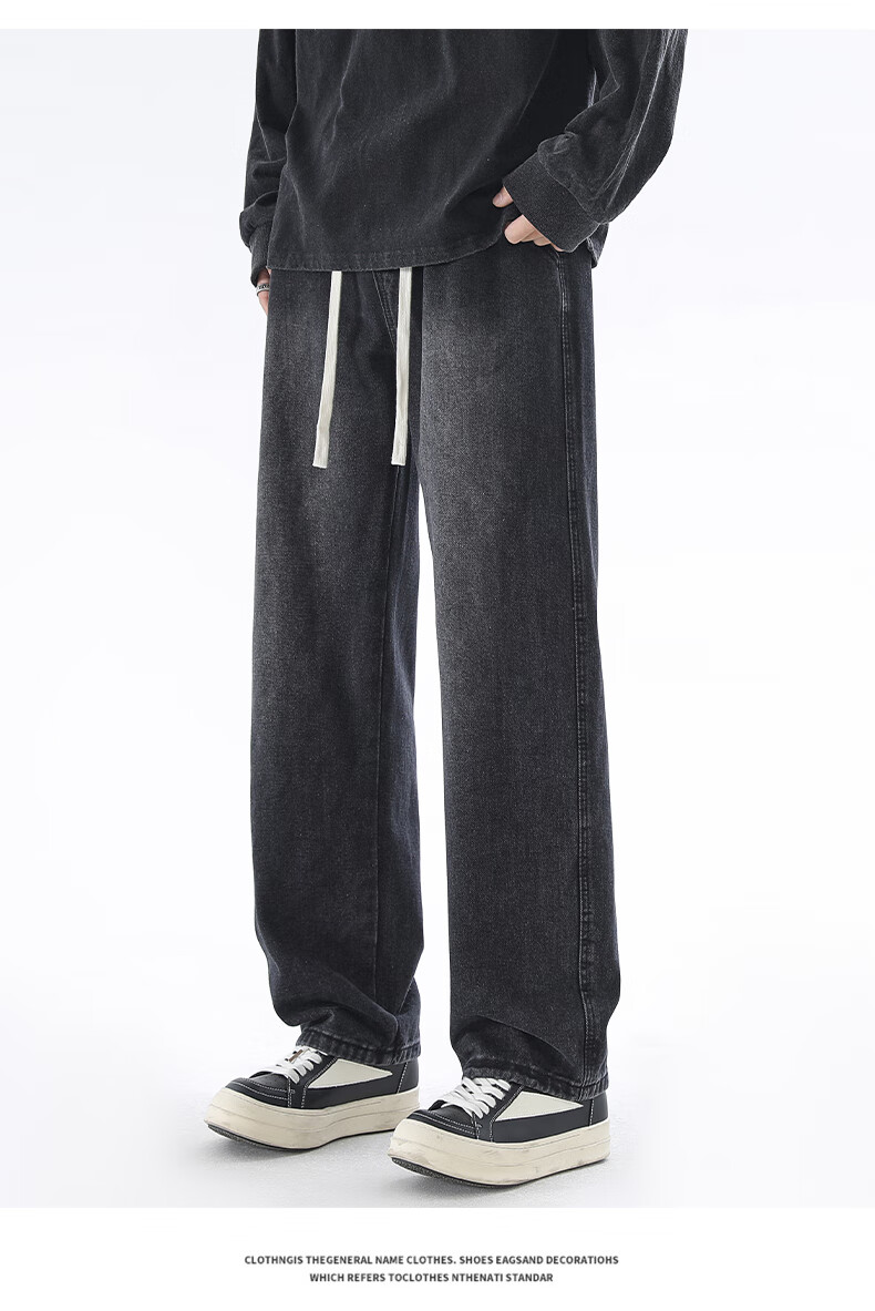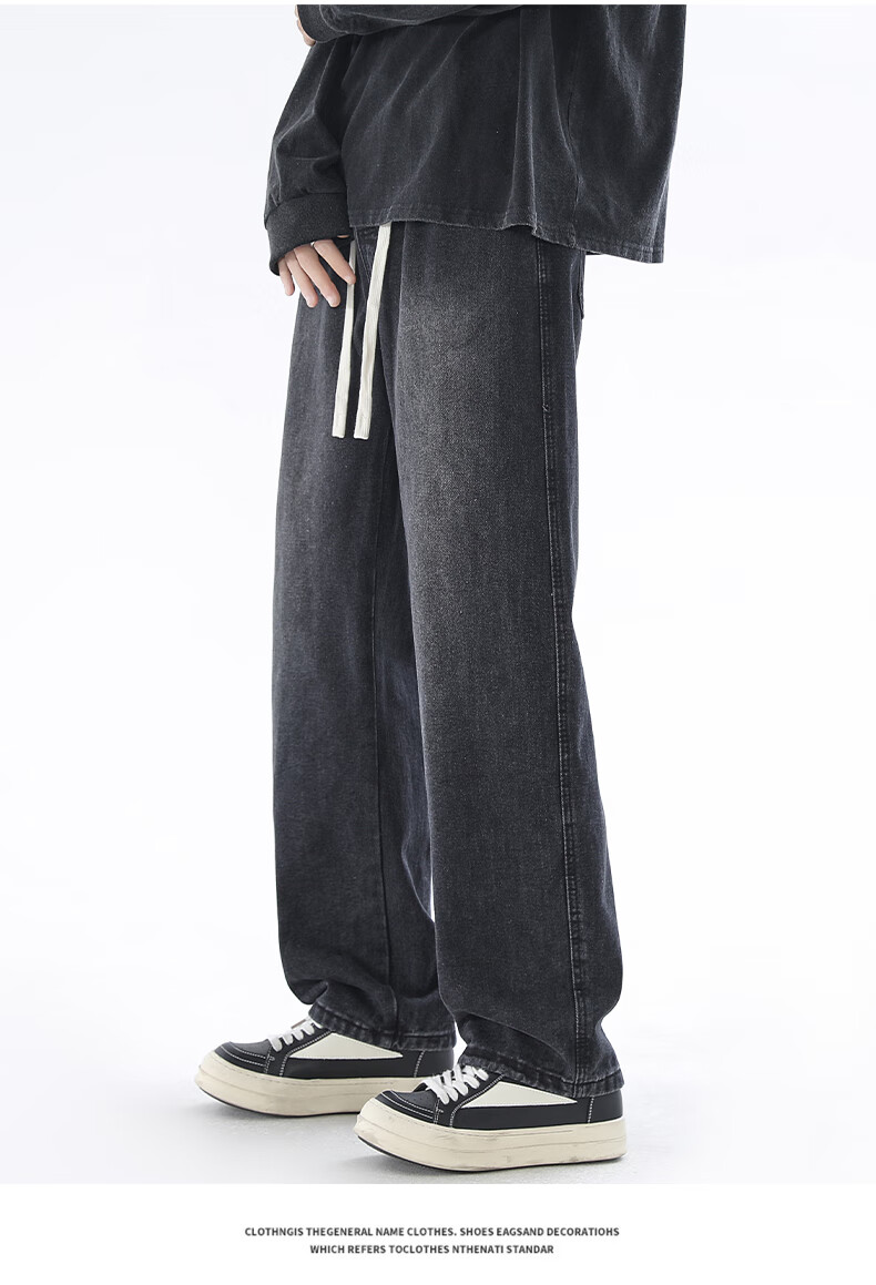 Viishow washed jeans men's simple retro casual loose versatile straight trend brand cleanfit wide leg work pants black 2XL