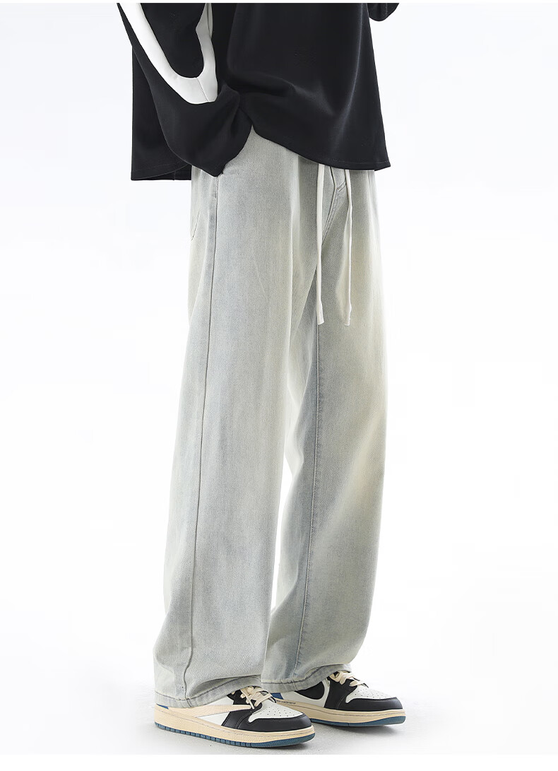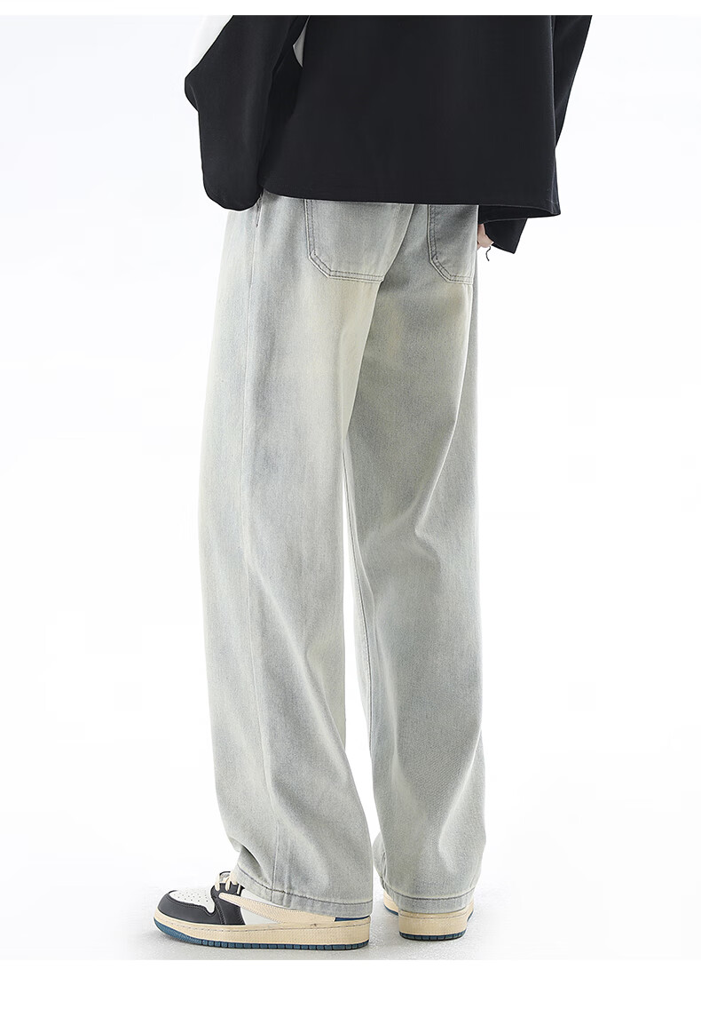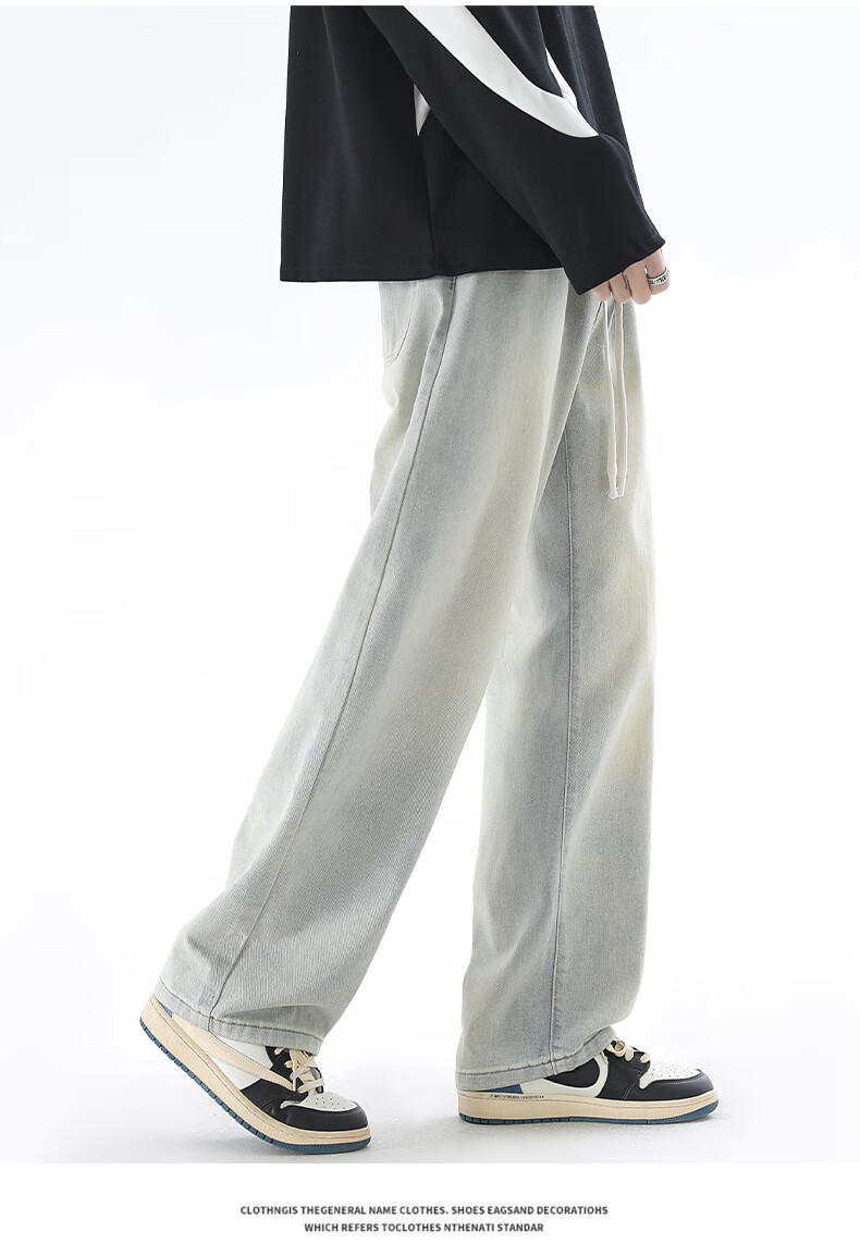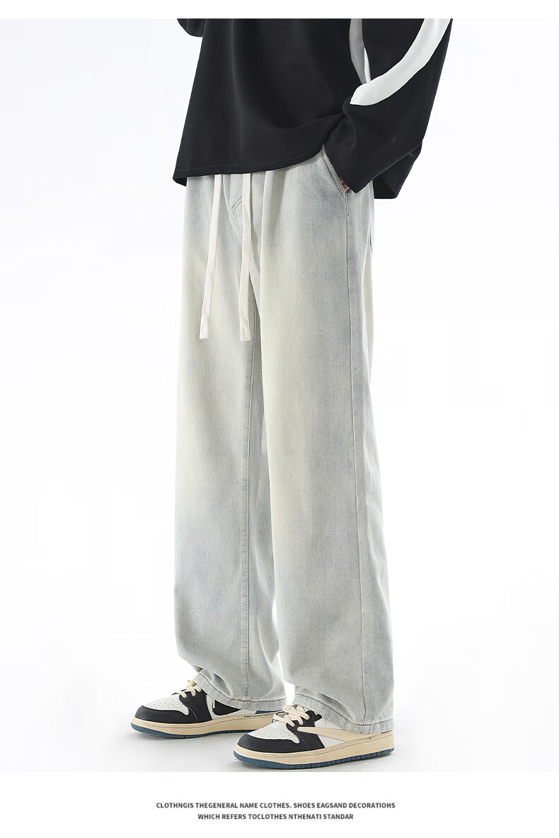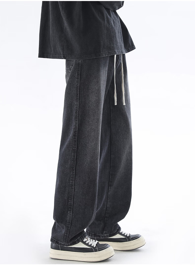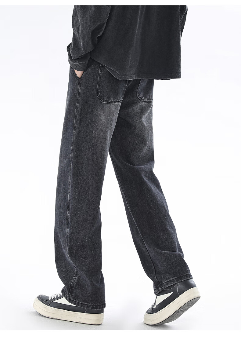 Viishow washed jeans men's simple retro casual loose versatile straight trend brand cleanfit wide leg work pants black 2XL