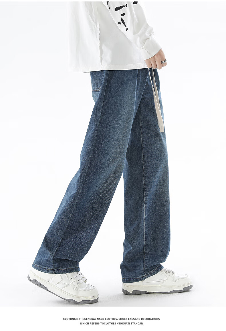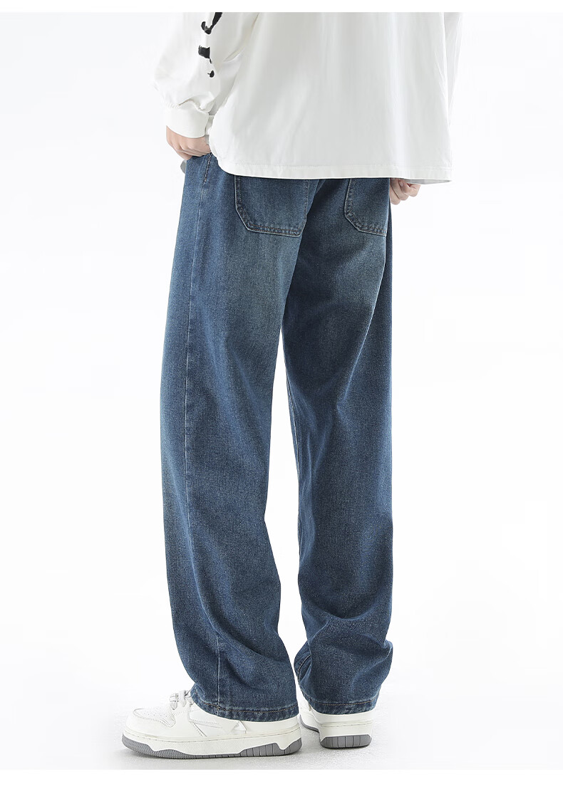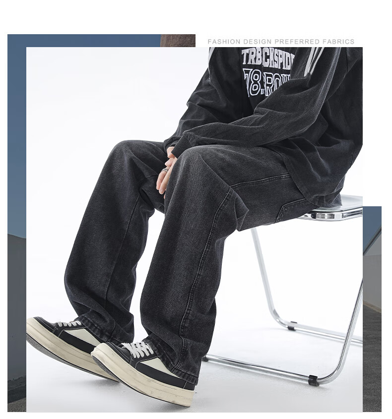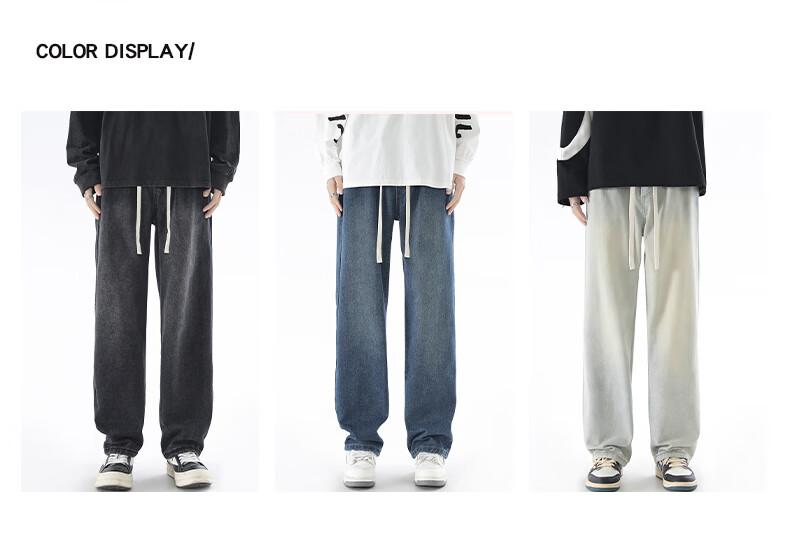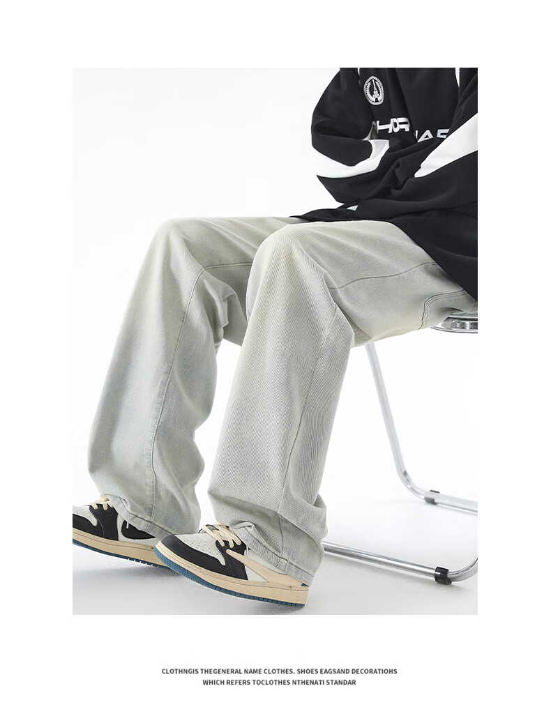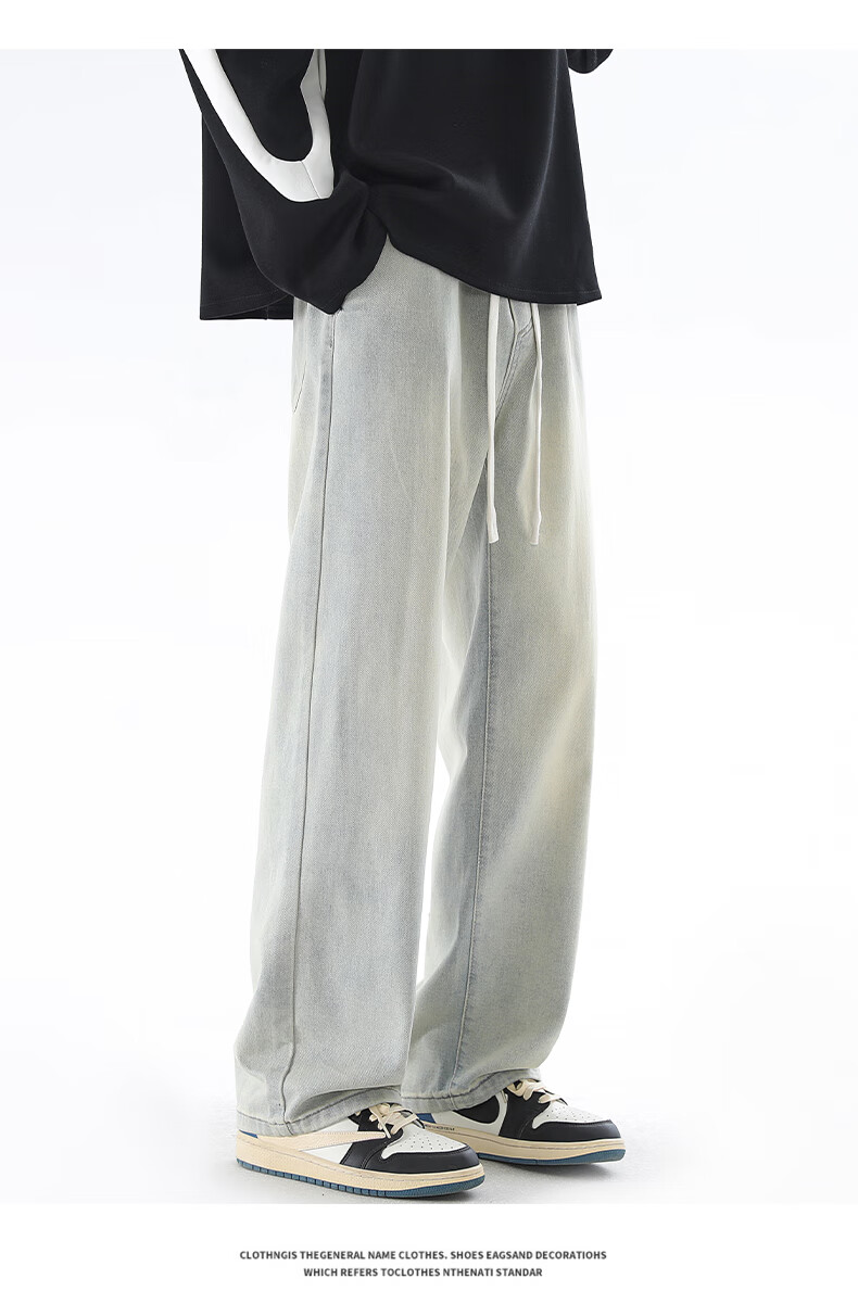 Viishow washed jeans men's simple retro casual loose versatile straight trend brand cleanfit wide leg work pants black 2XL
