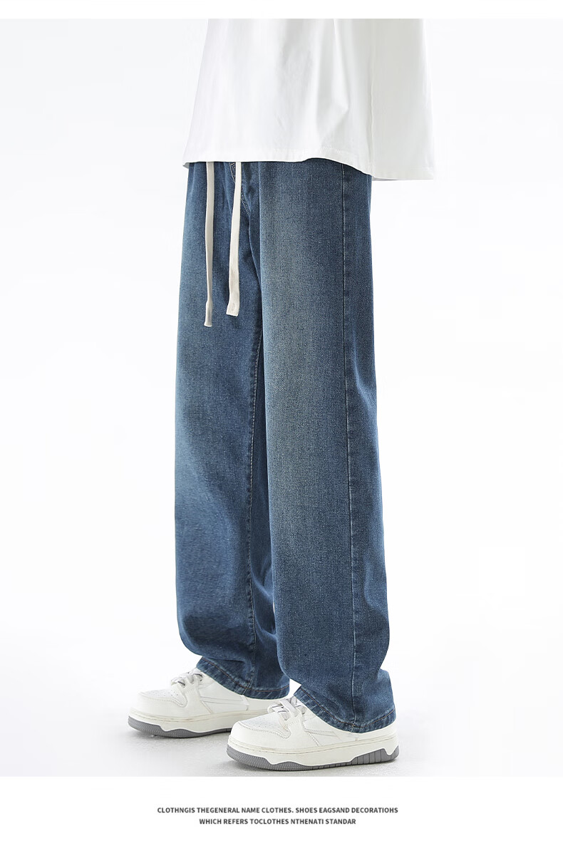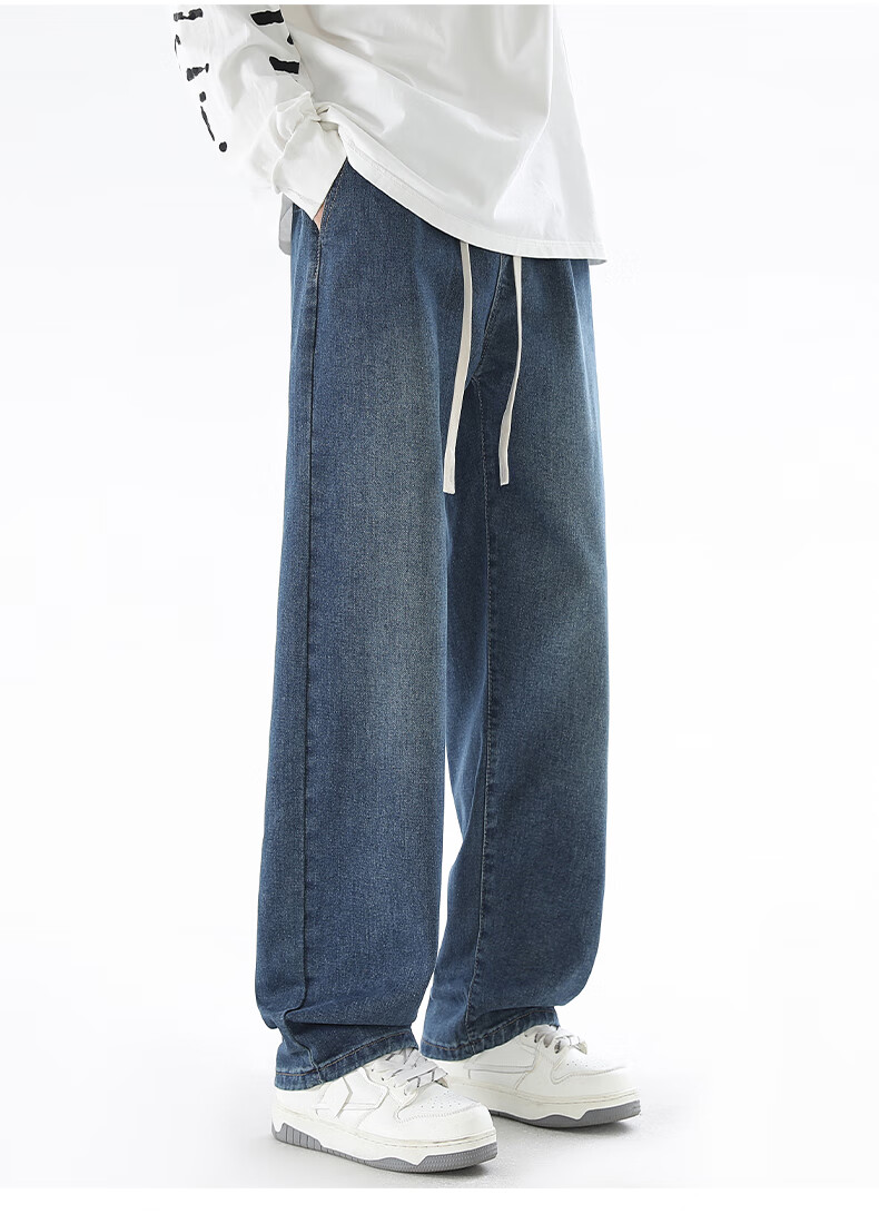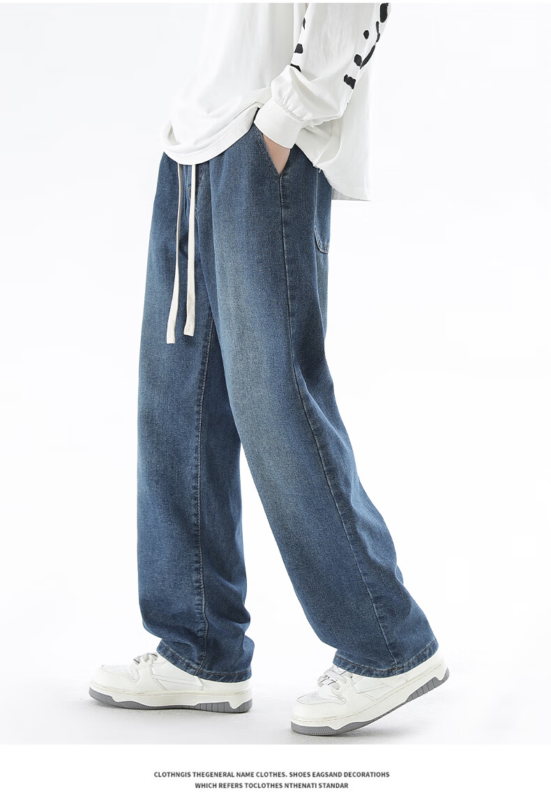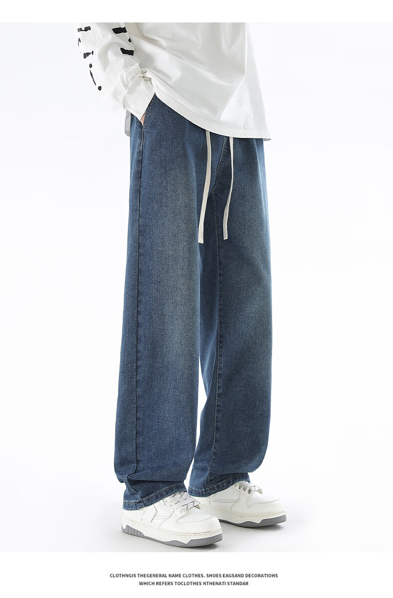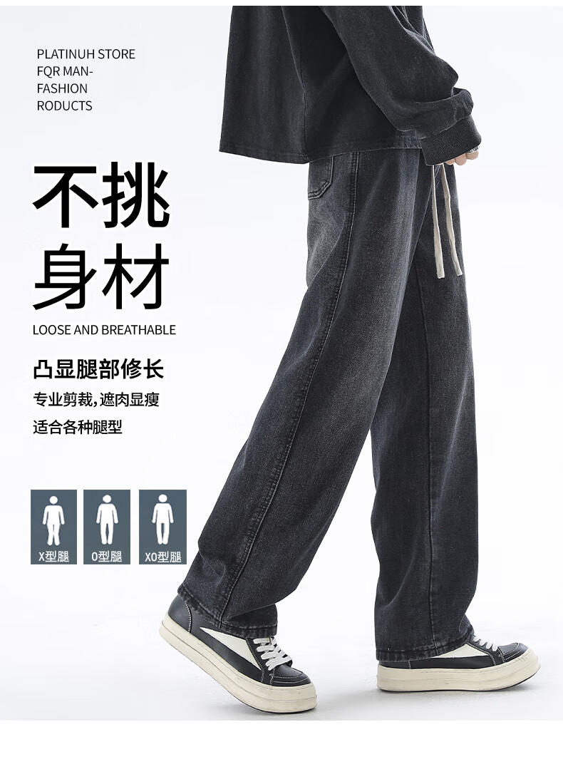 Viishow washed jeans men's simple retro casual loose versatile straight trend brand cleanfit wide leg work pants black 2XL