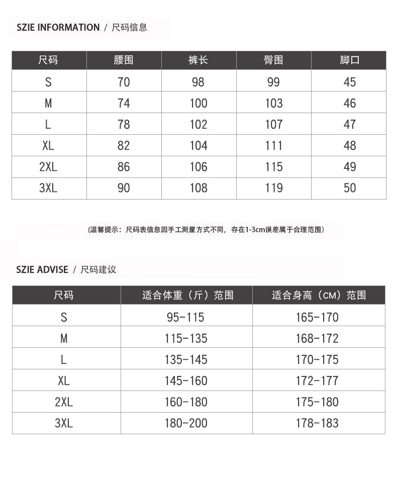 China (cm) 165 / 88-90 170 / 96-98 175 / 108-110 180 / 118-122 185 / 126-130