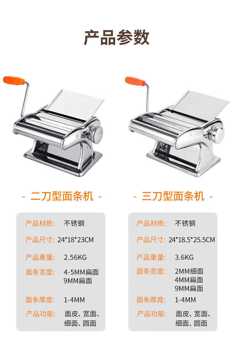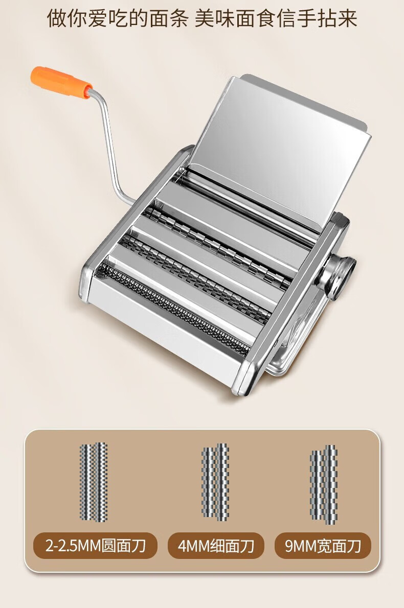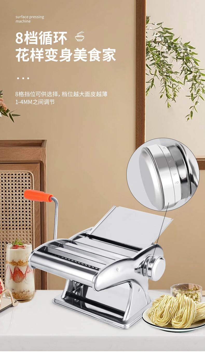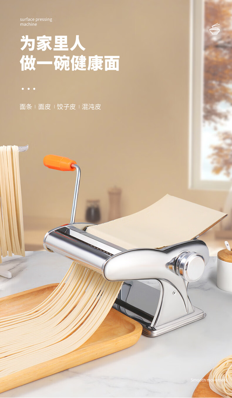 Baijie Manual Noodle Press Stainless Steel Noodle Machine Home Multifunctional Dough Machine Dumpling Wrap Hand Pressed Noodle Machine Home Silver Enjoyable Model Two Knives Can Make Two Kinds of Noodles