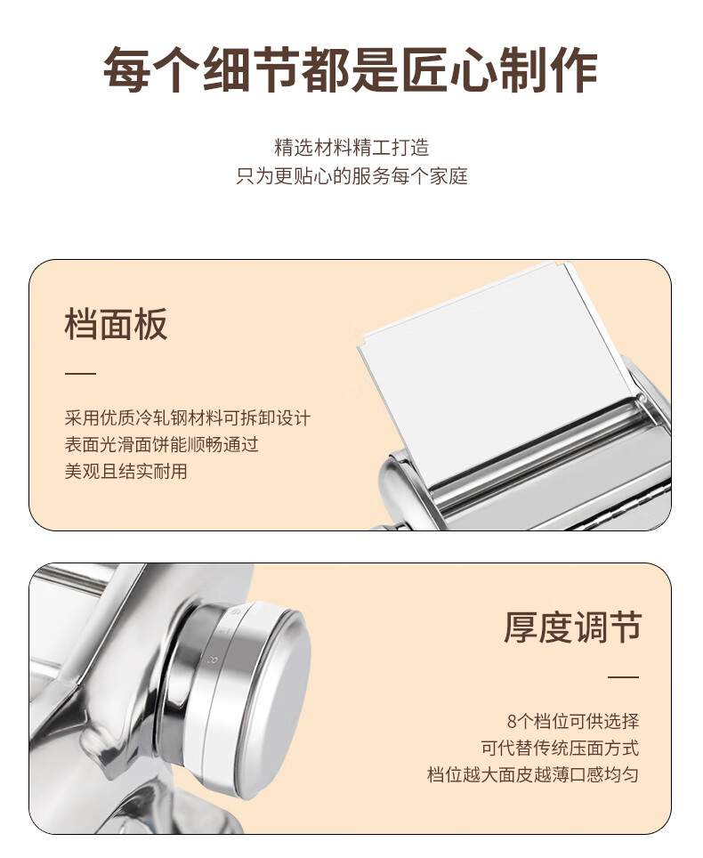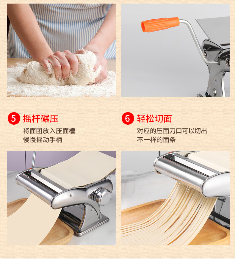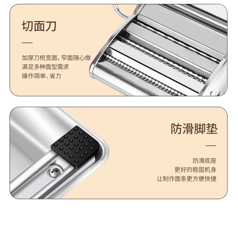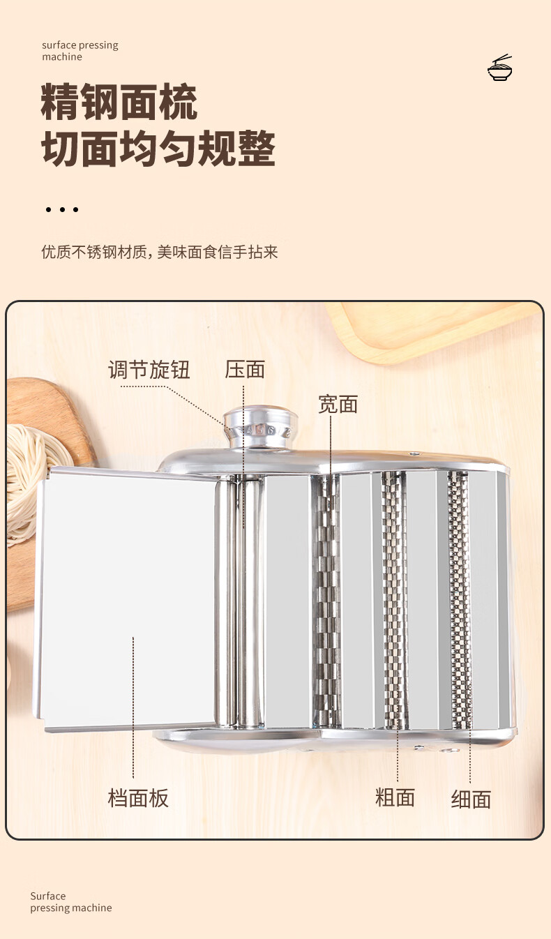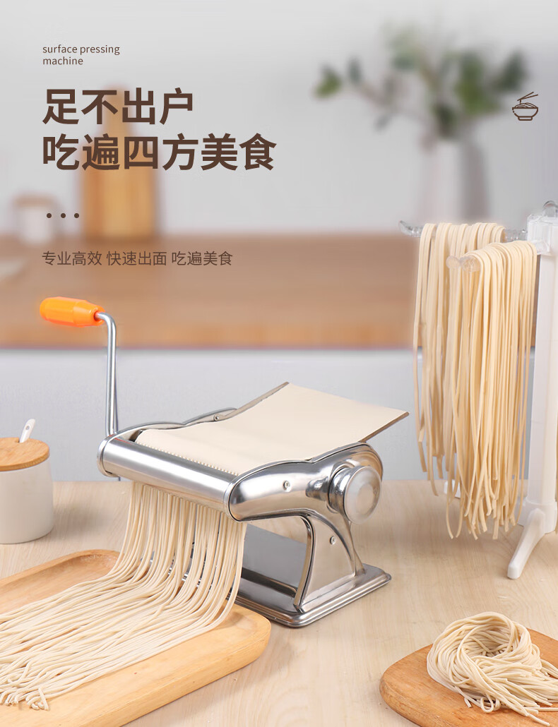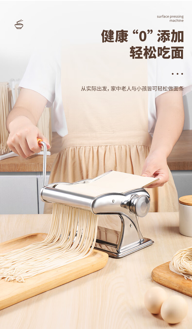 Baijie Manual Noodle Press Stainless Steel Noodle Machine Home Multifunctional Dough Machine Dumpling Wrap Hand Pressed Noodle Machine Home Silver Enjoyable Model Two Knives Can Make Two Kinds of Noodles