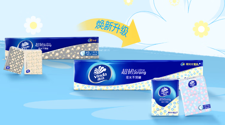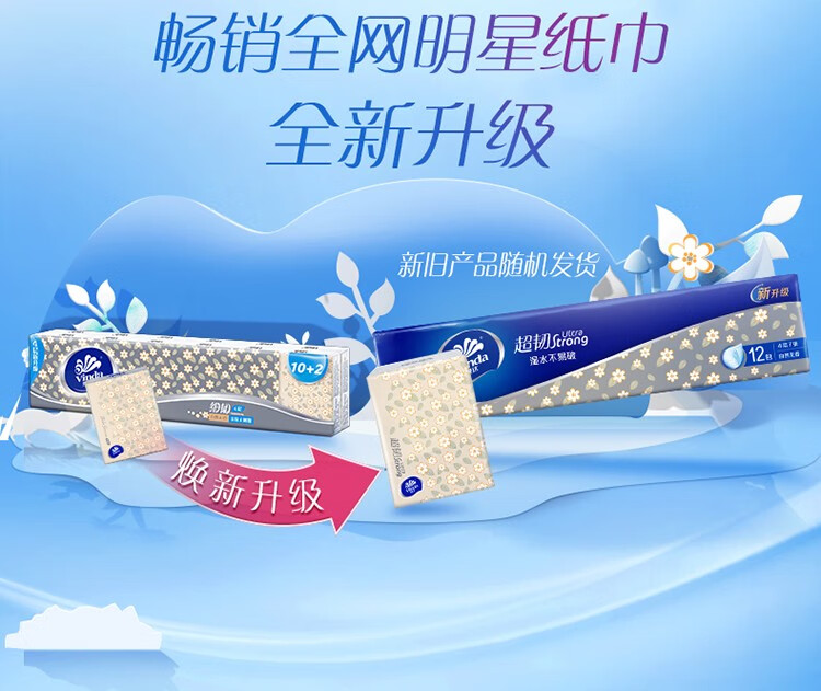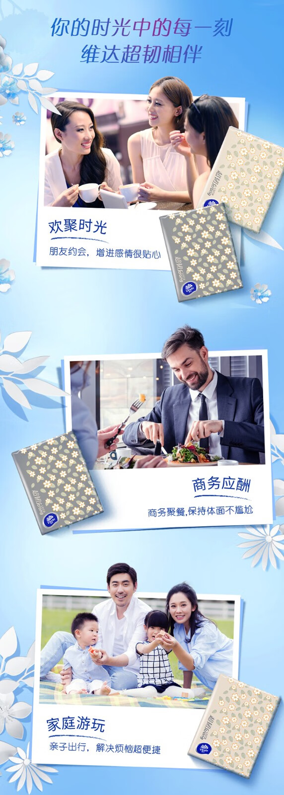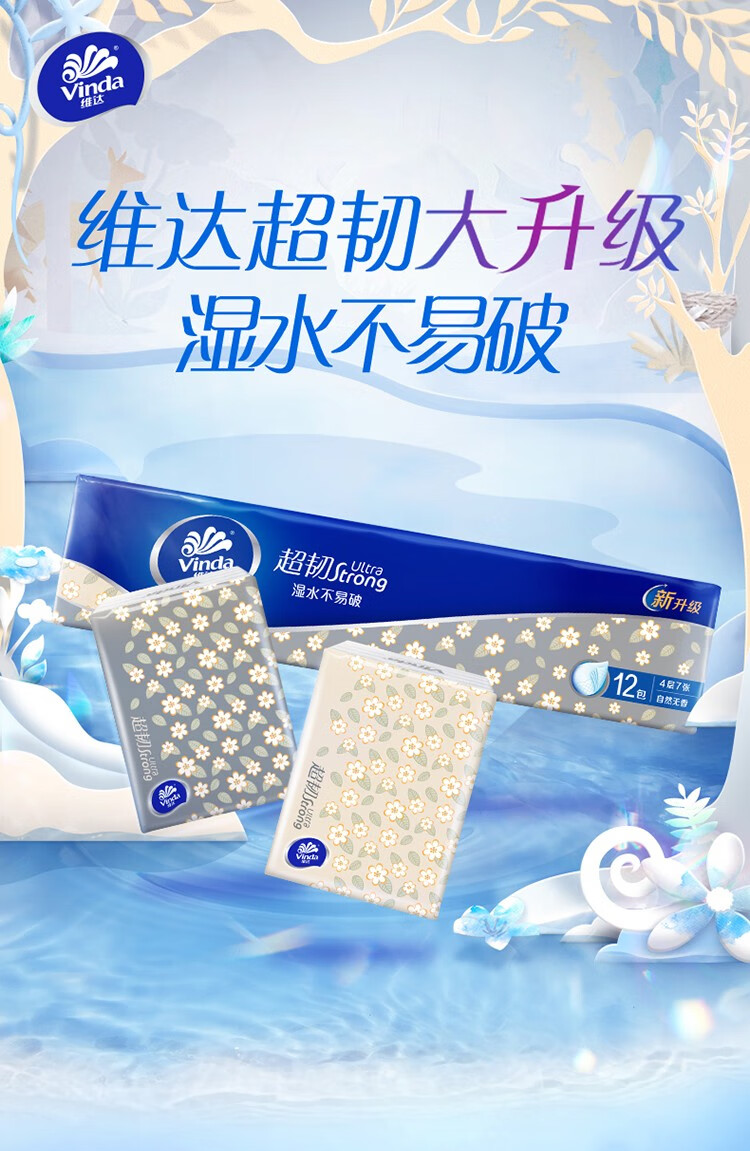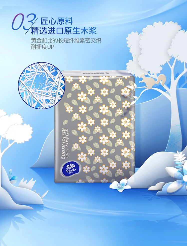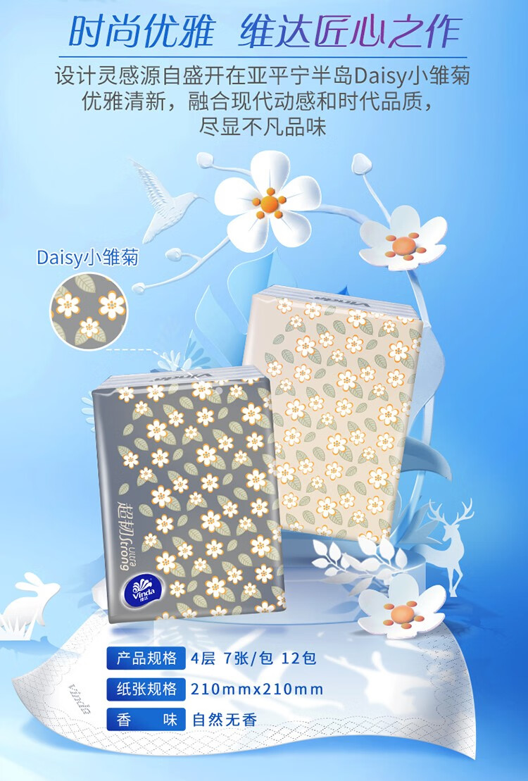 Vinda handkerchief paper set, thin and tough 4 layers, 12 packs, paper handkerchief small bag, portable facial tissue napkins, natural and unscented, 4 layers*7 sheets*12 packs