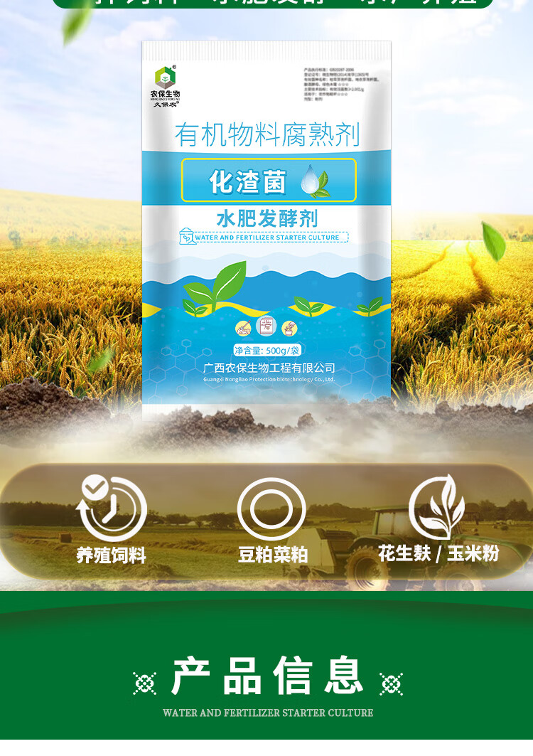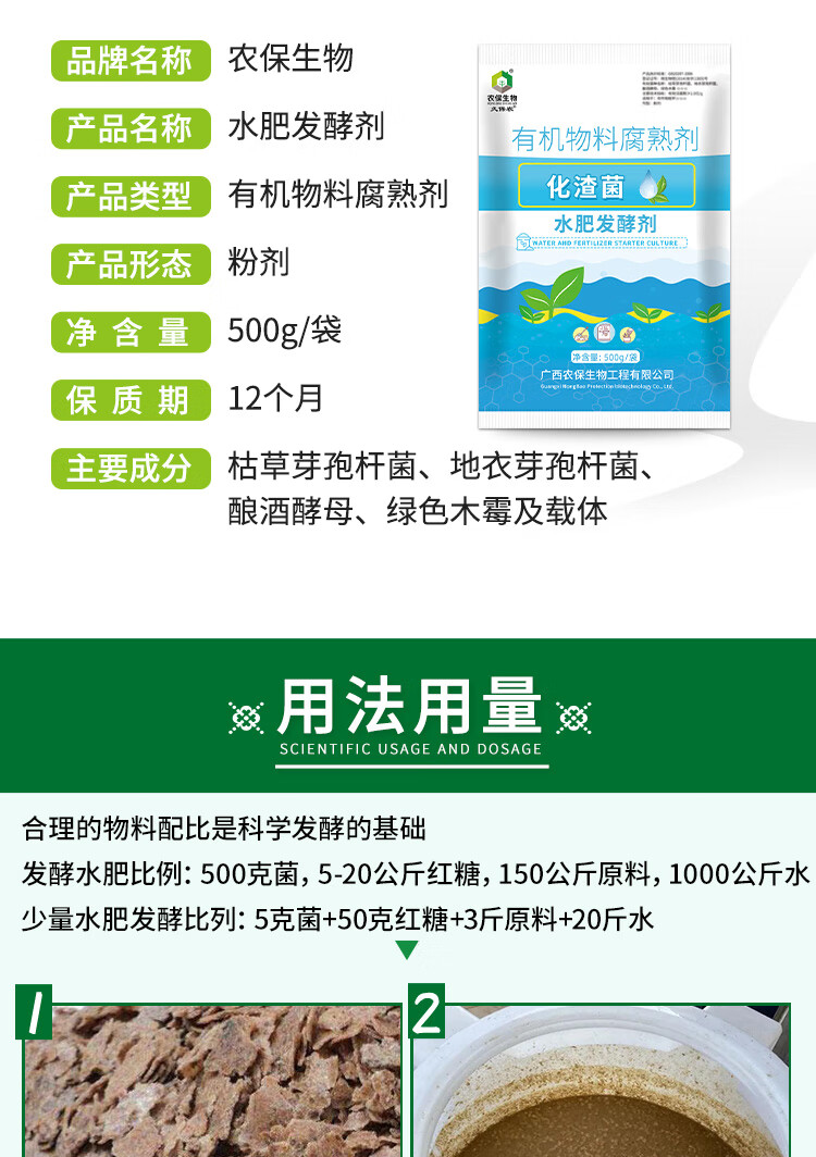 Kubo Agrochemical Residue Bacteria Water and Fertilizer Starter Fermentation Farmyard Manure Bean Dregs Distillers Grains Animal Manure Peanut Bran, etc. 500g/pack