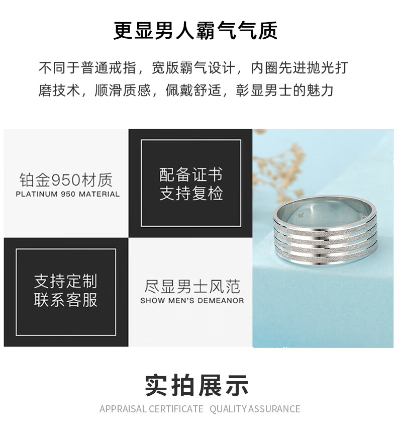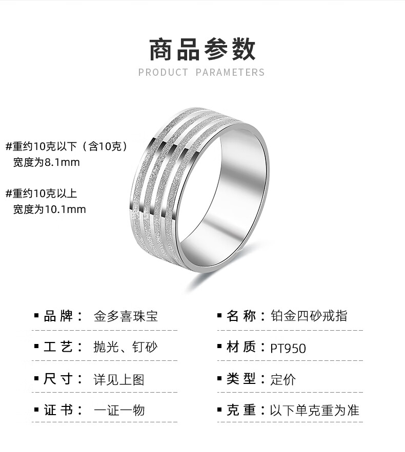 Jin Duoxi pt950 platinum ring men's solid domineering wide version ring light ring ring platinum men's ring couple ring size 16 weight about 9.7-9.8 grams, width about 8mm