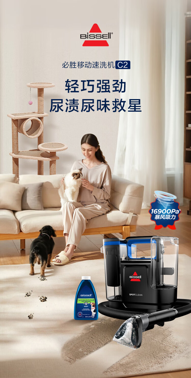 BISSELL cloth cleaning machine C2 spray-suction integrated household multi-functional 3861Z mite removal and sterilization vacuum sofa carpet mattress curtain cleaning artifact SpotClean C2 3861Z