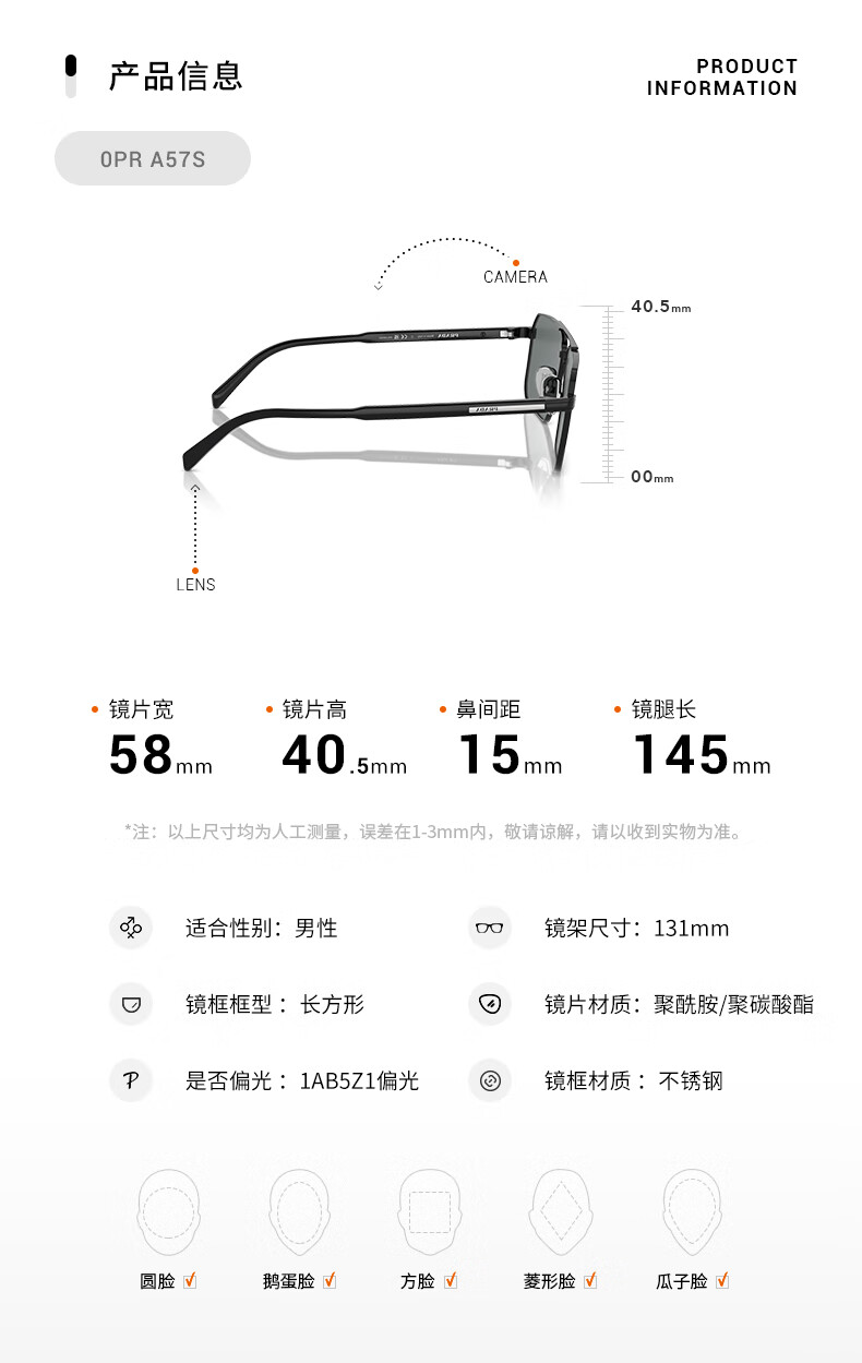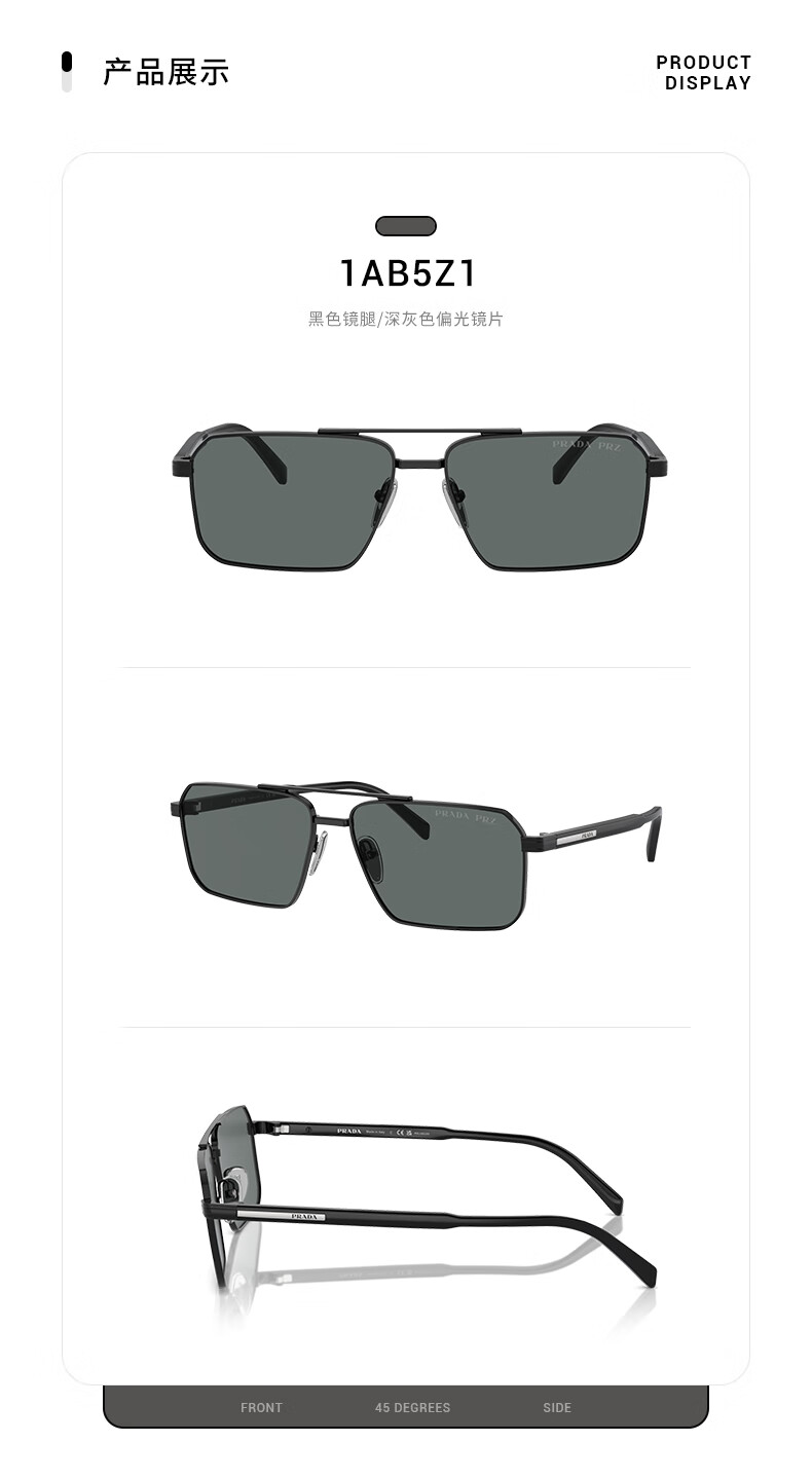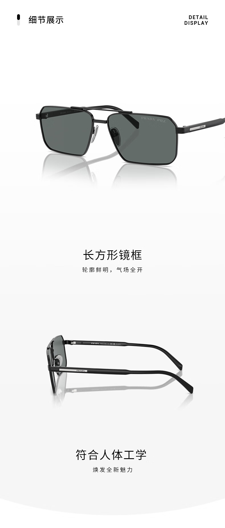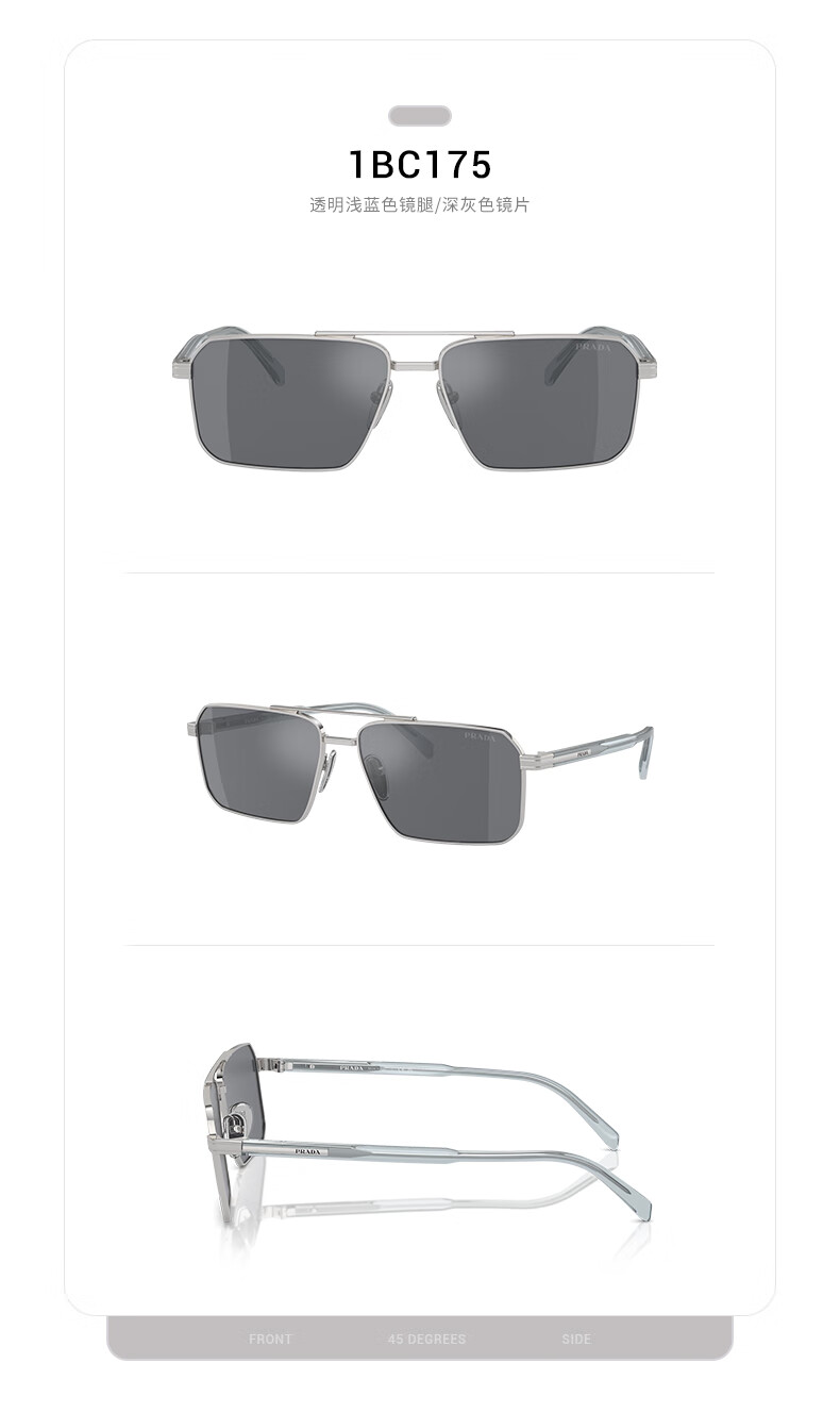 PRADA/Prada sunglasses for men polarized driving sunglasses square glasses 0PR A57S silver frame/dark gray lens 1BC175