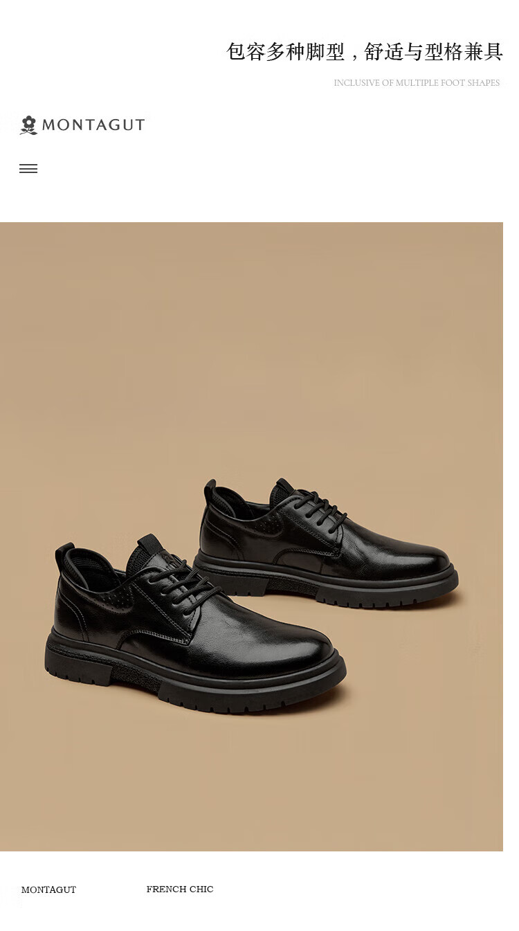 MONTAGUT leather shoes for men 2025 new top layer cowhide soft sole comfortable business casual shoes British versatile work shoes for men brown standard leather shoe size 41