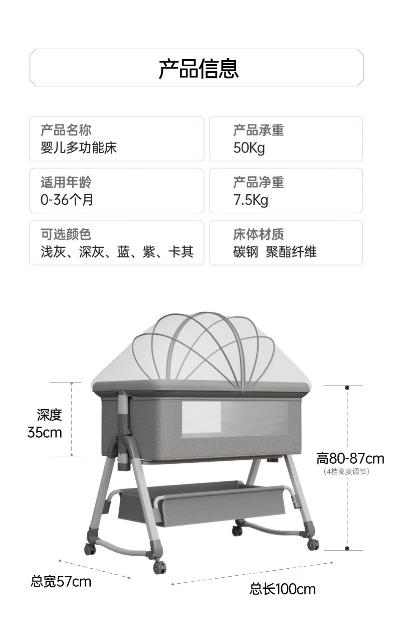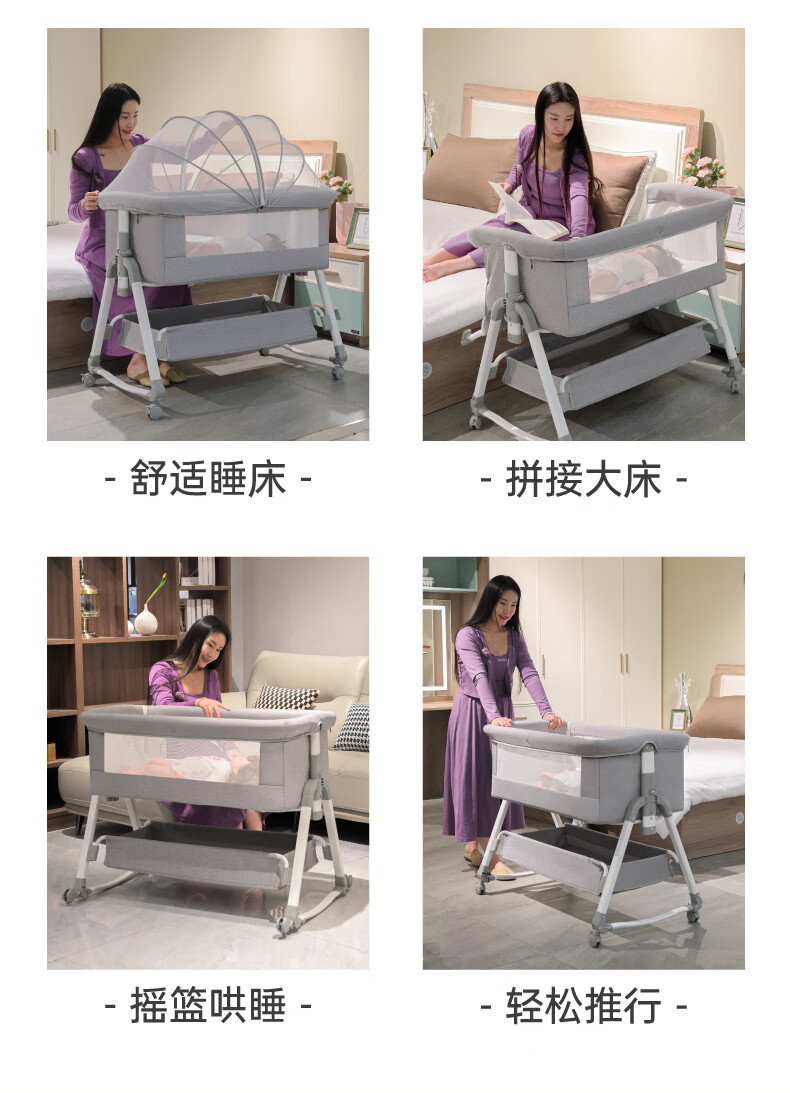 Tutuxiong multifunctional portable crib European style baby bed removable foldable newborn cradle 618-plus music bed bell plus bed surround (color other x frame structure x complete