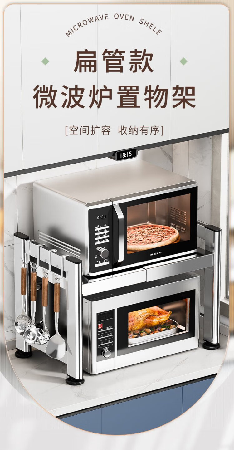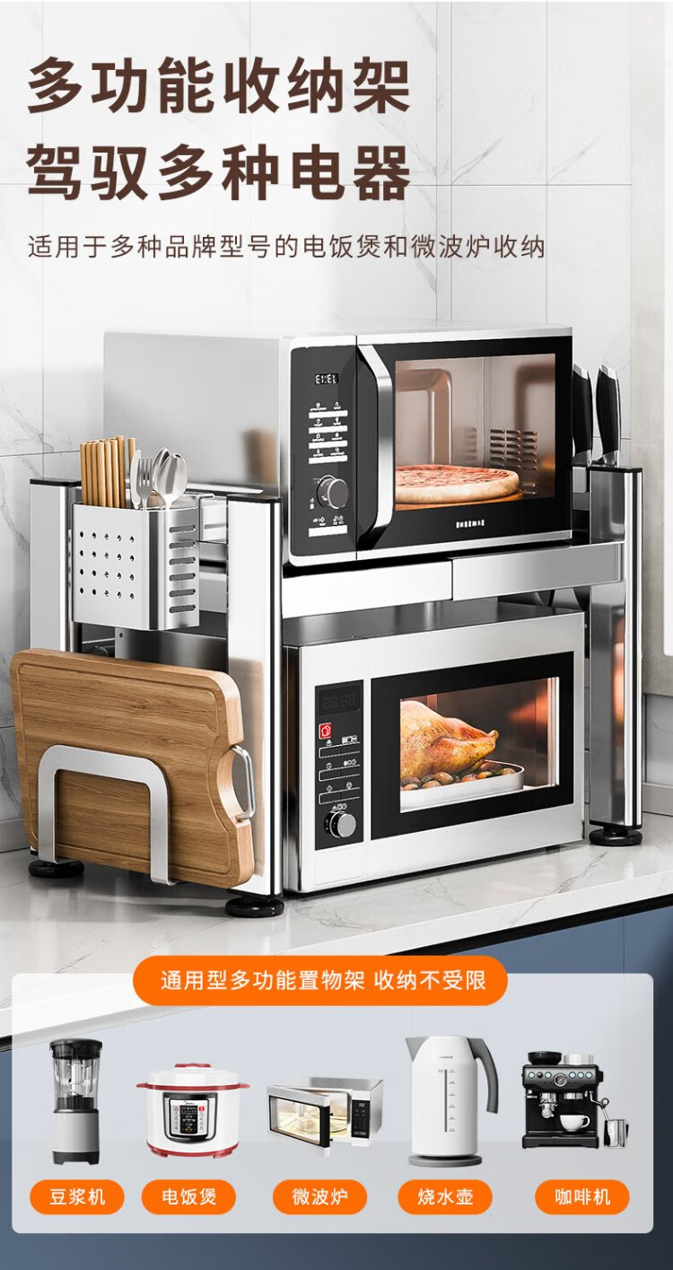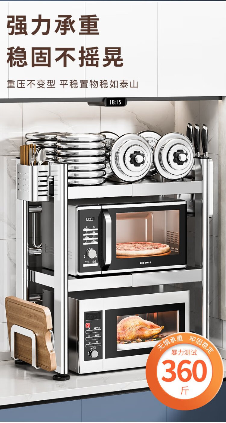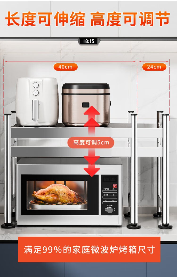 Benwang (BW) stainless steel kitchen microwave storage shelf countertop multi-layer oven rice cooker multi-function storage bracket three-layer telescopic 40-64cm-full accessories extra thick extra thick stainless steel