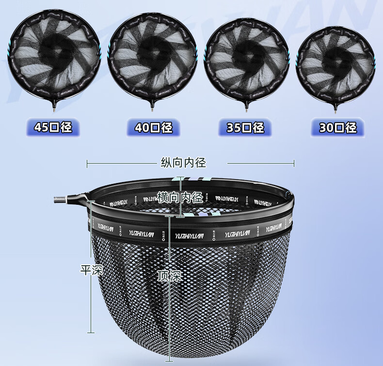 Fishing source quick-drying net head fishing net copy net net pocket net copy head anti-hanging copy net head accessories net head fishing gear 30cm light green aluminum alloy net head