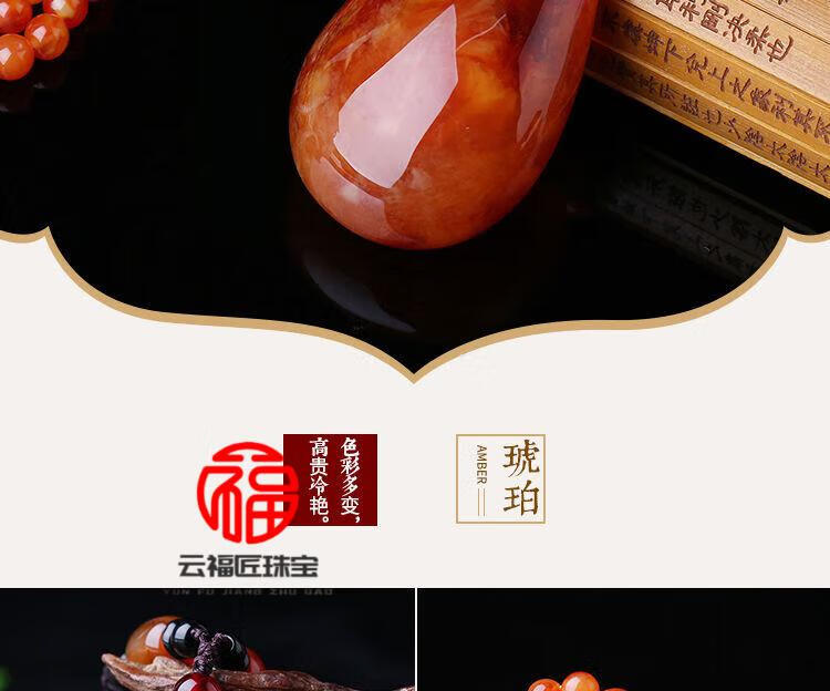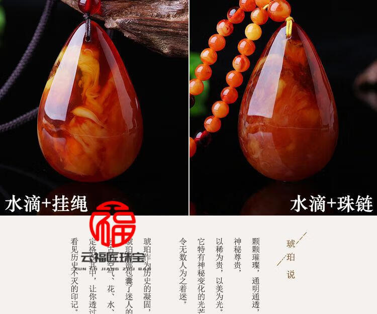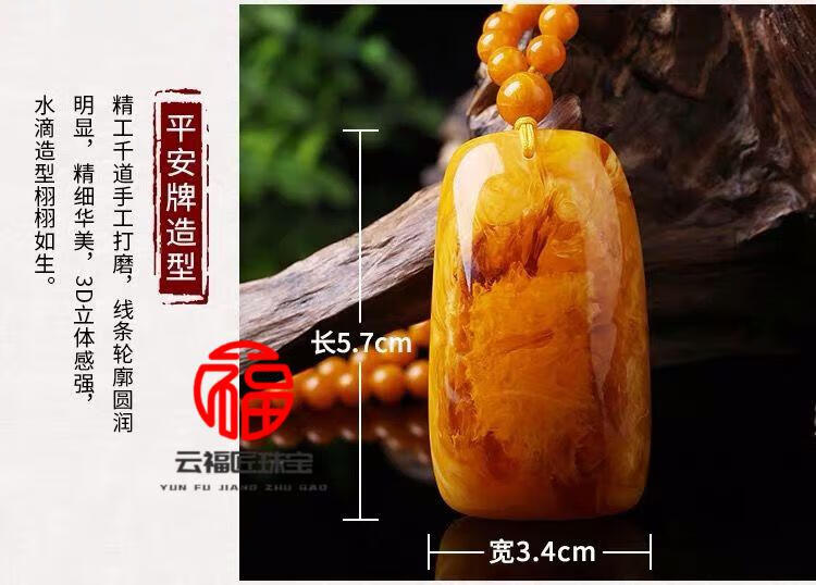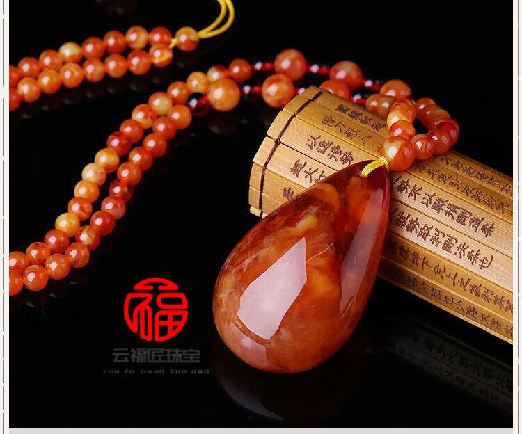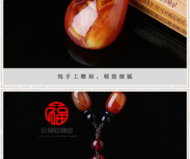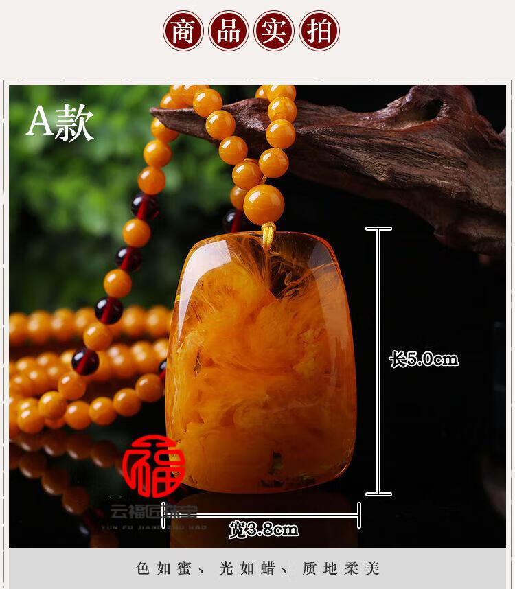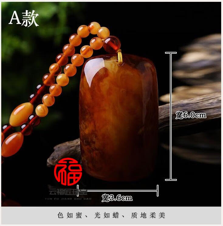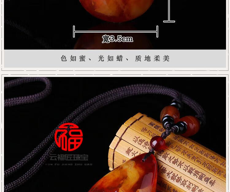 Fat Donglai same style beeswax Wushi brand amber old beeswax pendant women's sweater chain long autumn and winter water drop necklace old wax square card + lanyard