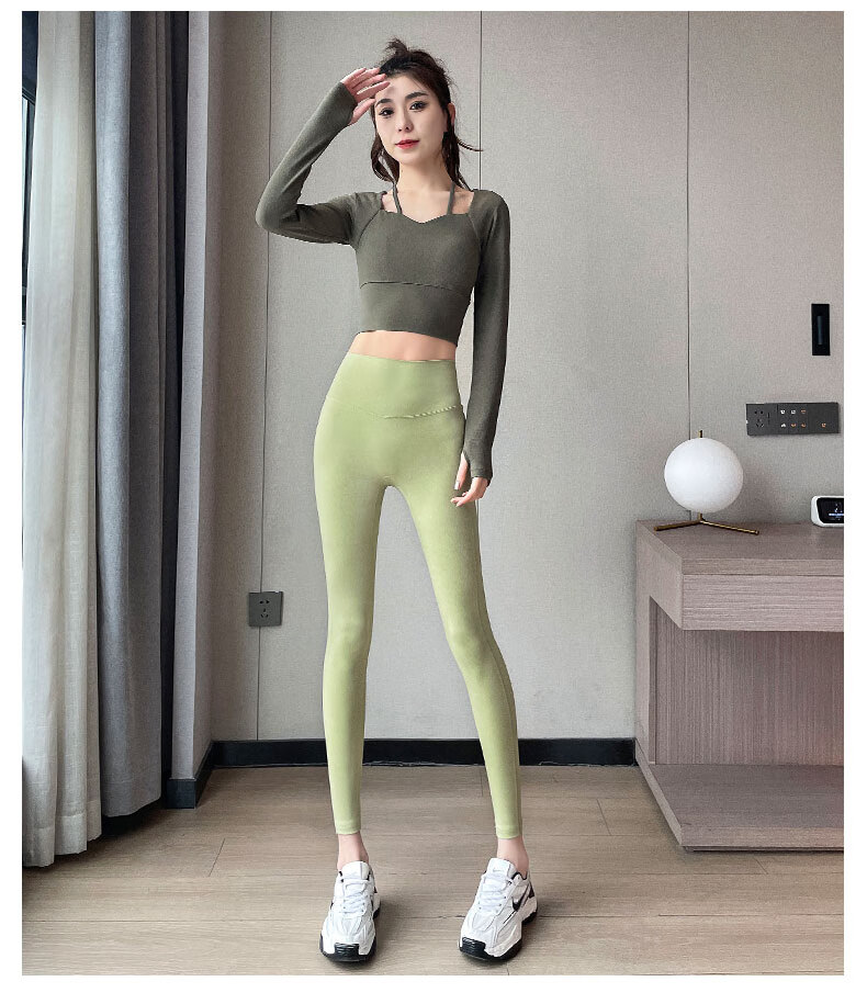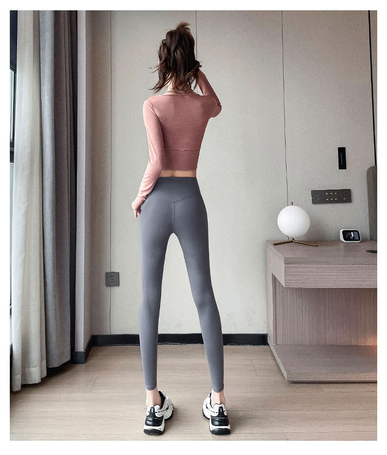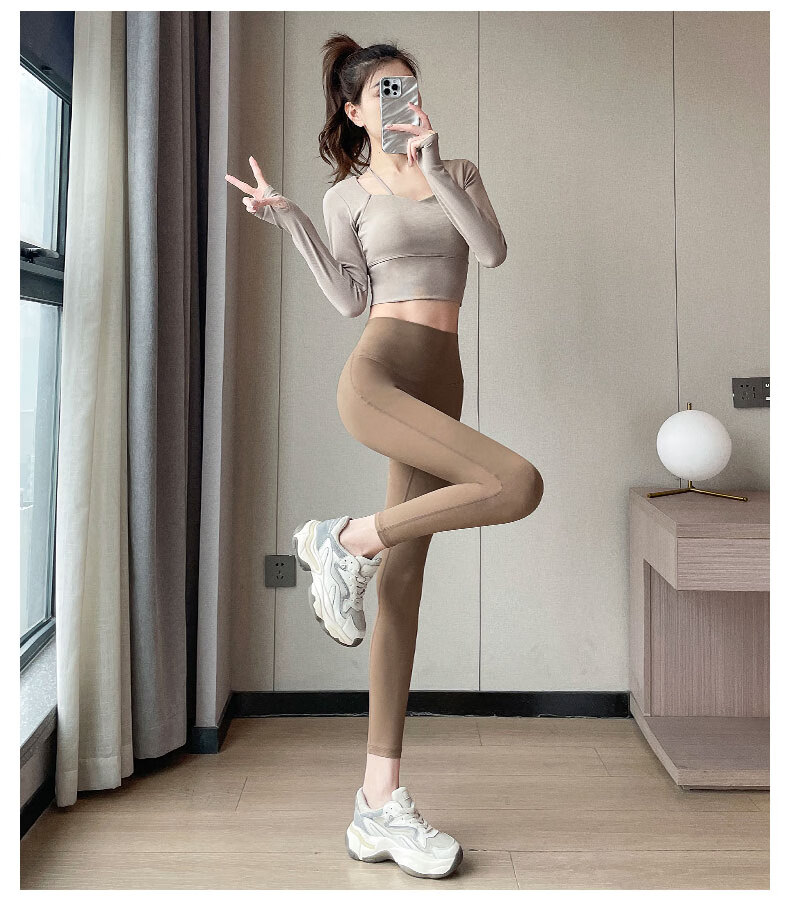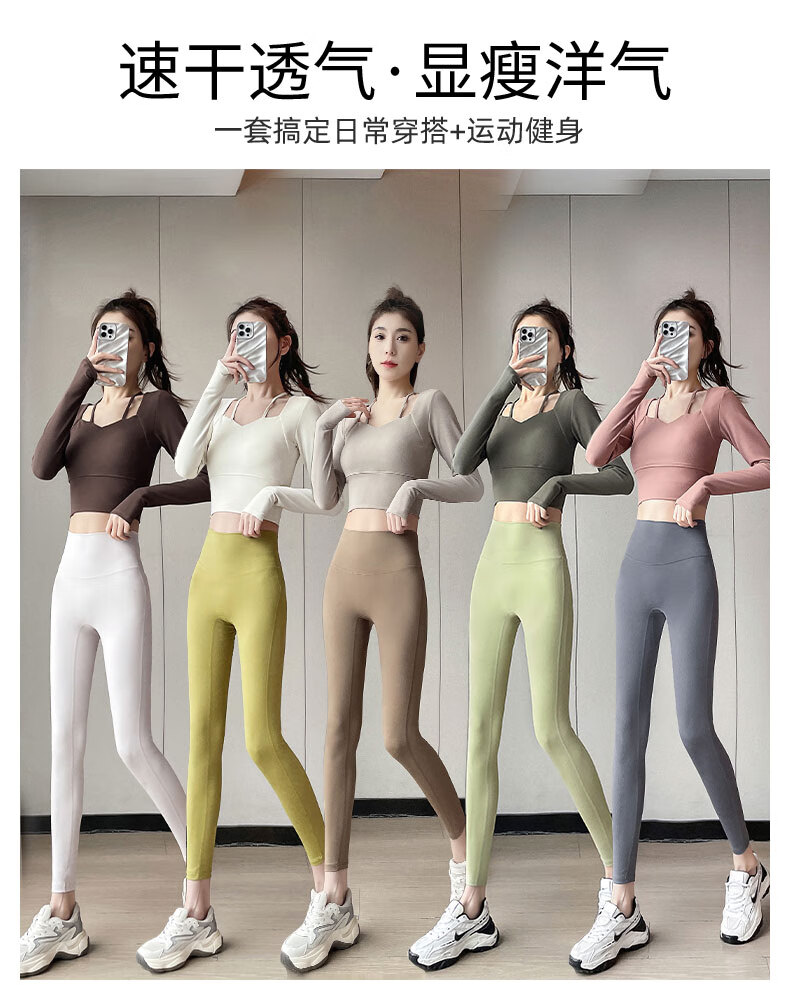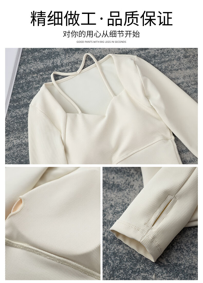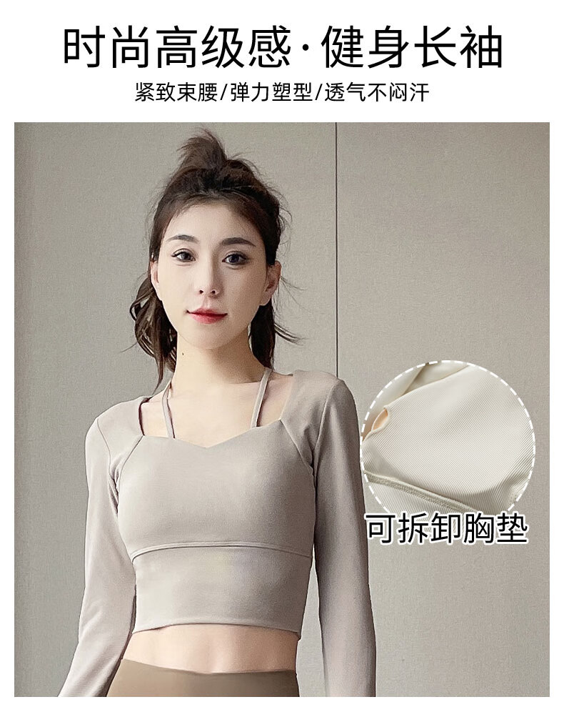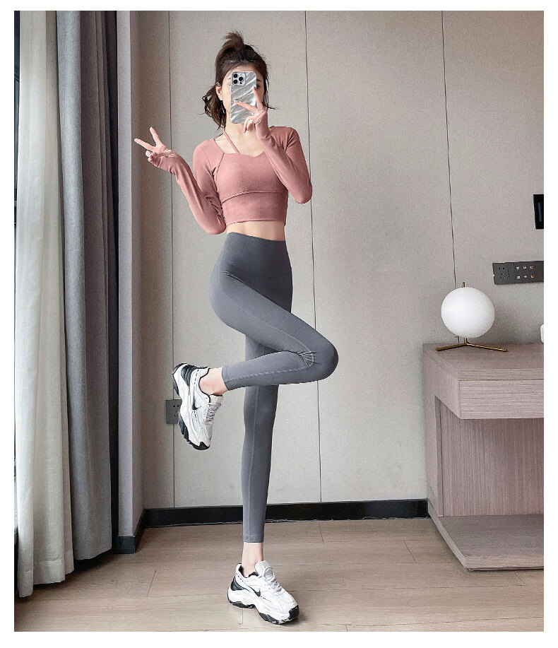 Aimengniao Yoga Suit Women's Pilates Training Suit High-end Fitness Running Suit Shark Pants with Breast Pad Long Sleeve Suit Pink + Medium Gray M