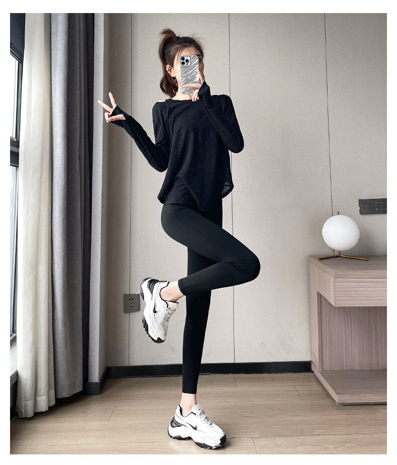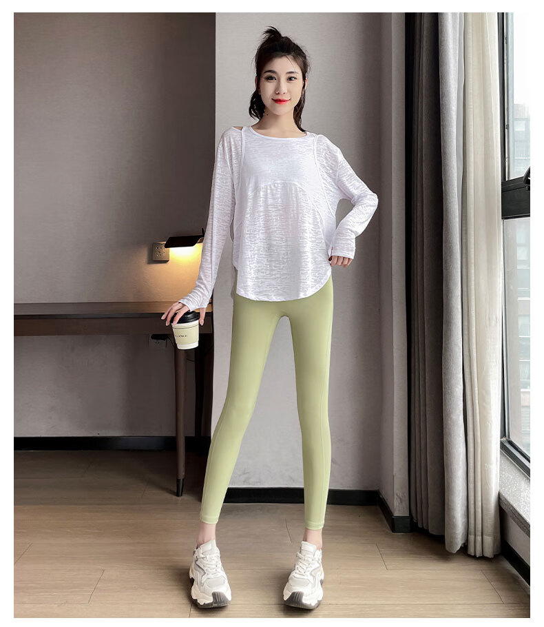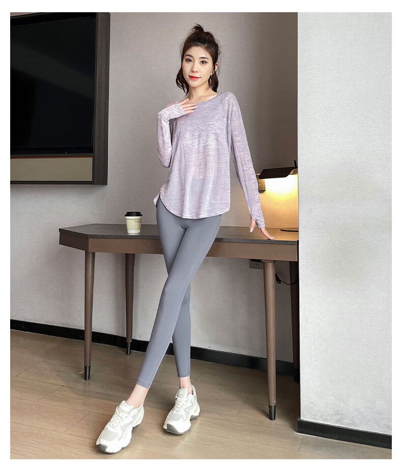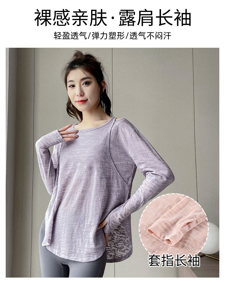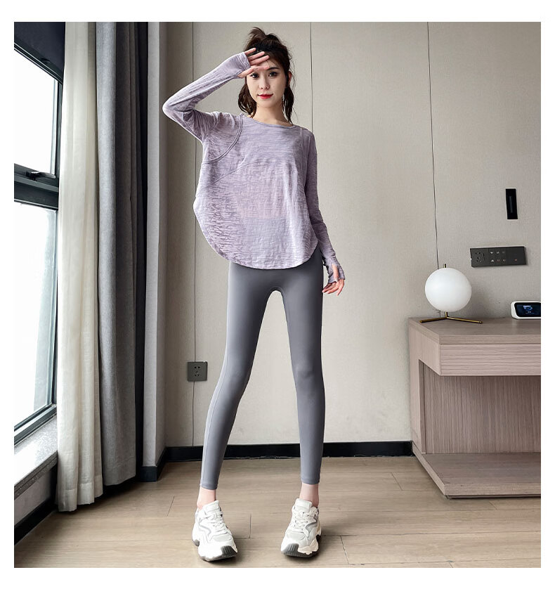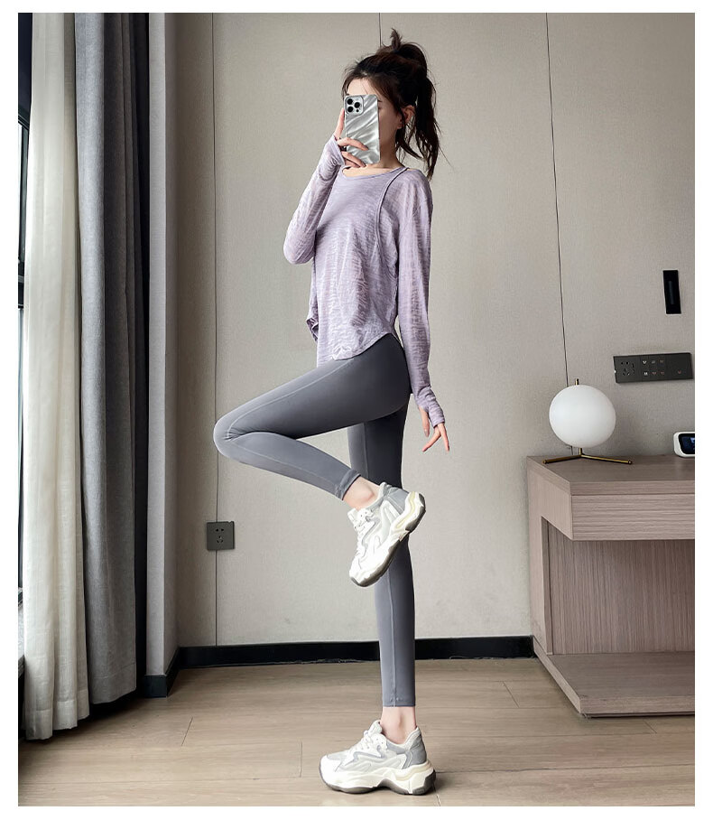 Aimengniao yoga clothing suit for women summer 2024 new high-end shark pants sports fitness clothing running quick-drying sun protection blouse suit light purple gray + medium gray XL (refer to bust and waist for size selection)