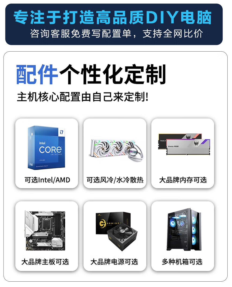 Colorful computer configuration self-selected DIY complete machine installation master entrance Host DIY self-selected configuration Online self-service installation High-end customized game console Special invoices can be issued Customized configuration 1 to 1 office host customization (1000)