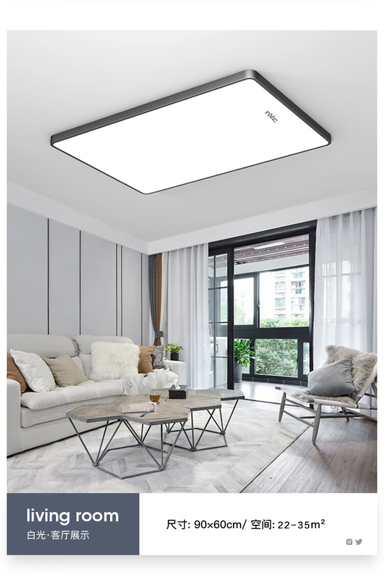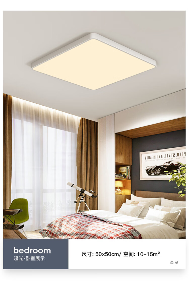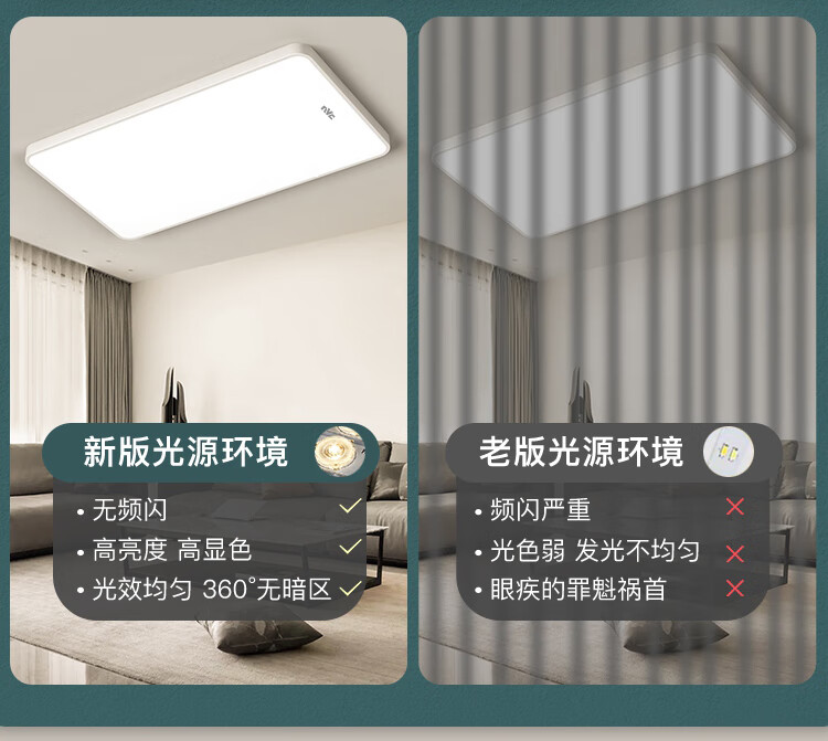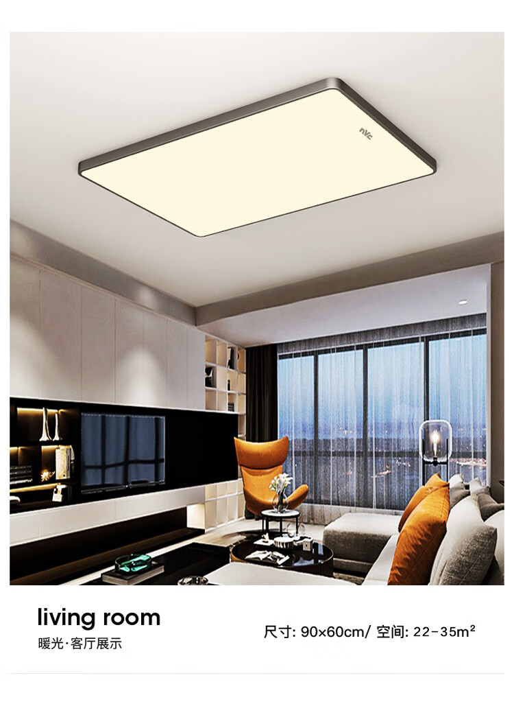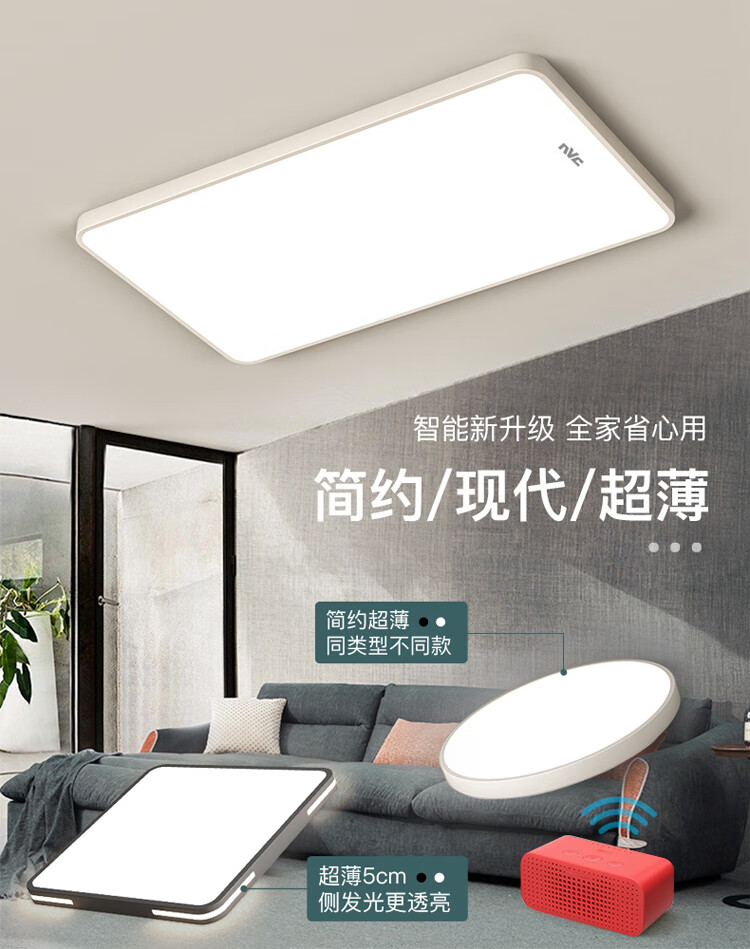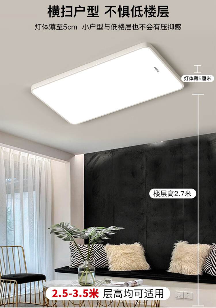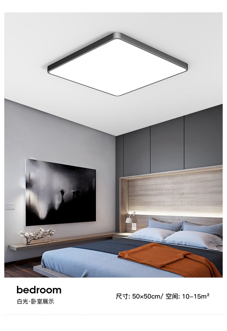 NVC Lighting 2024 New Full Spectrum Eye Protection LED Ceiling Lamp Living Room Lamp Rectangular Modern Simple Bedroom Local White 50*50 Full Spectrum Three Colors 45W