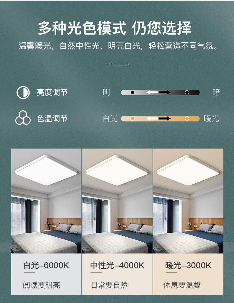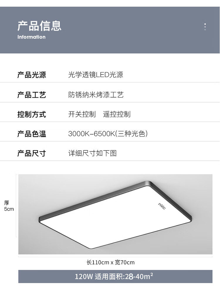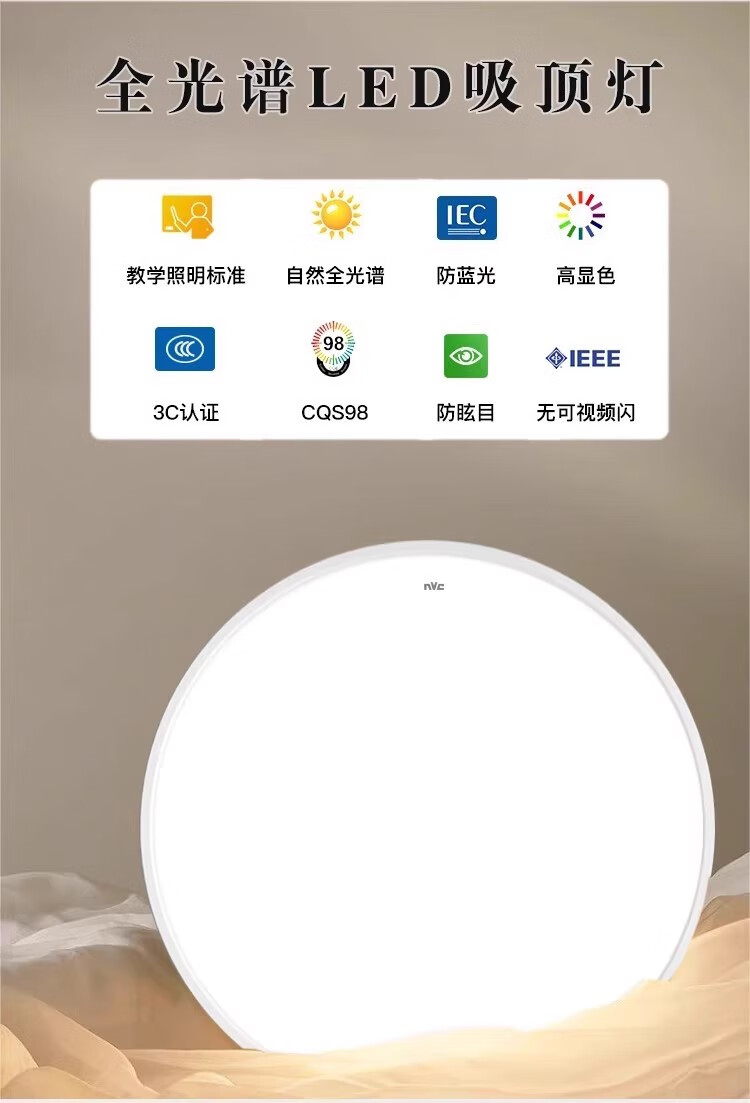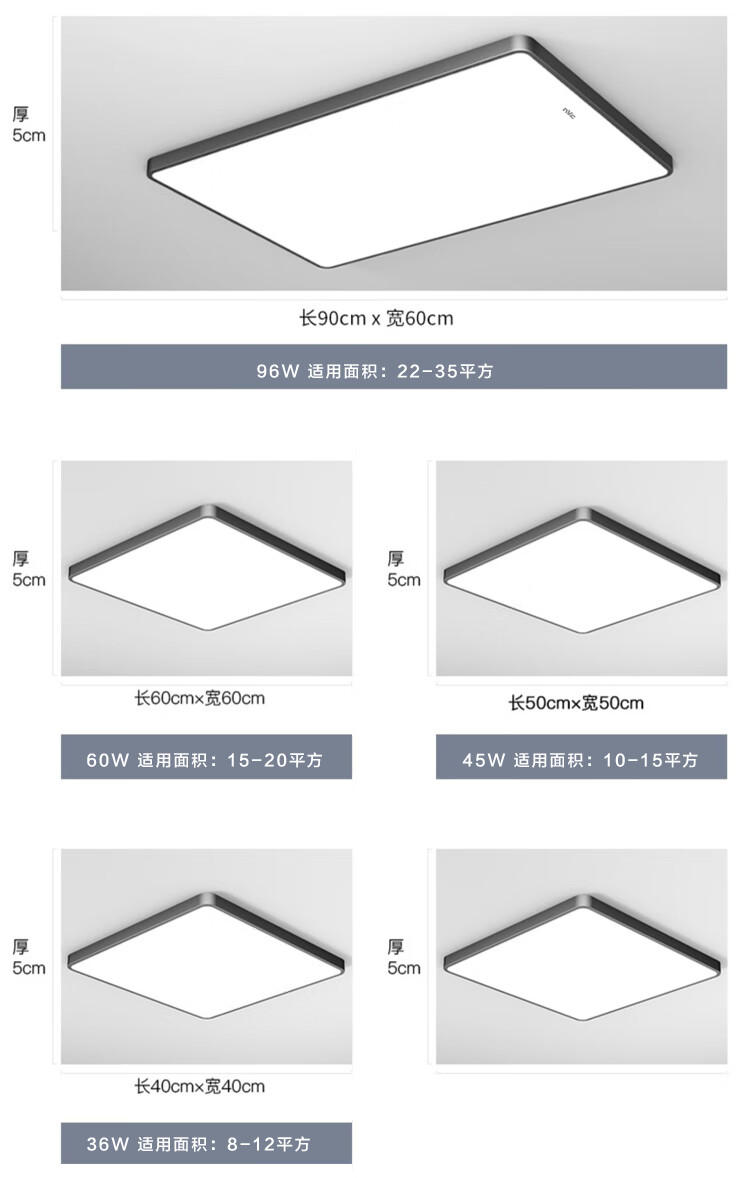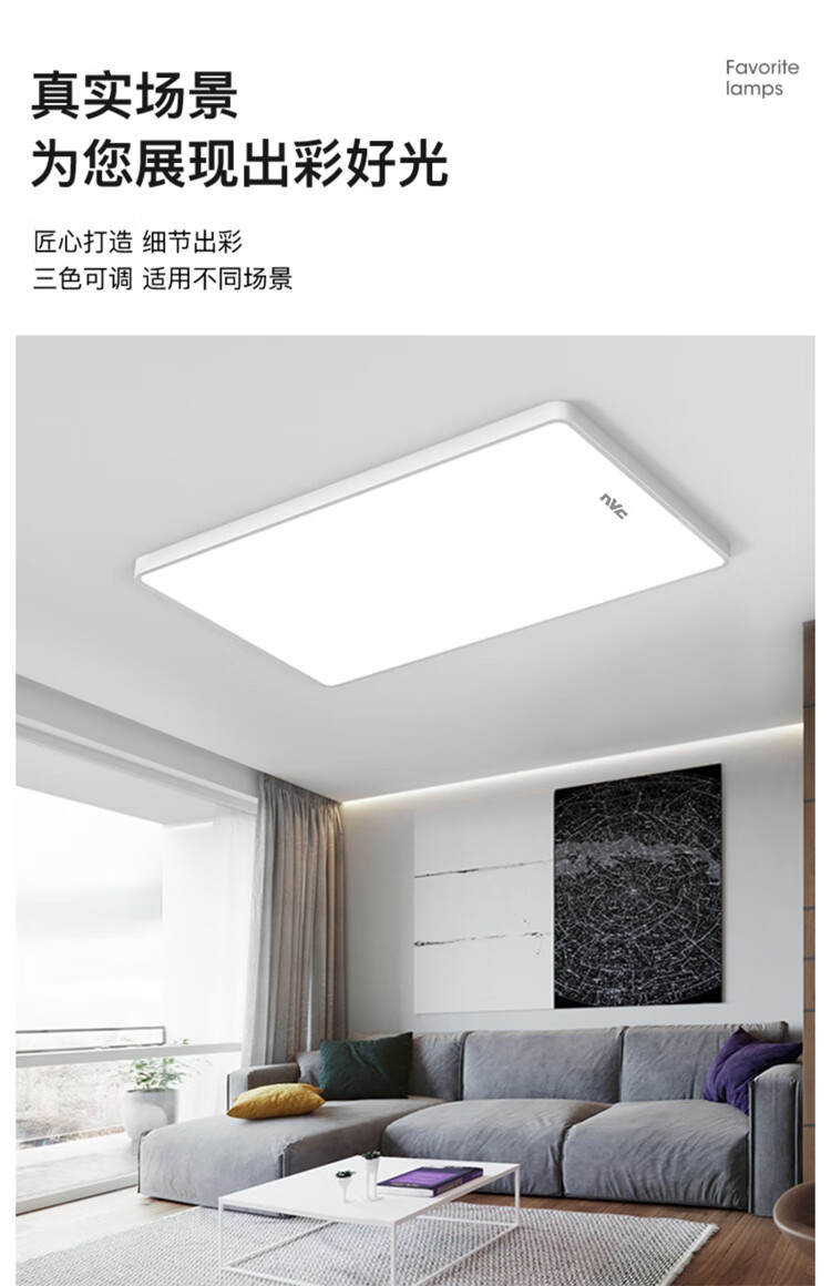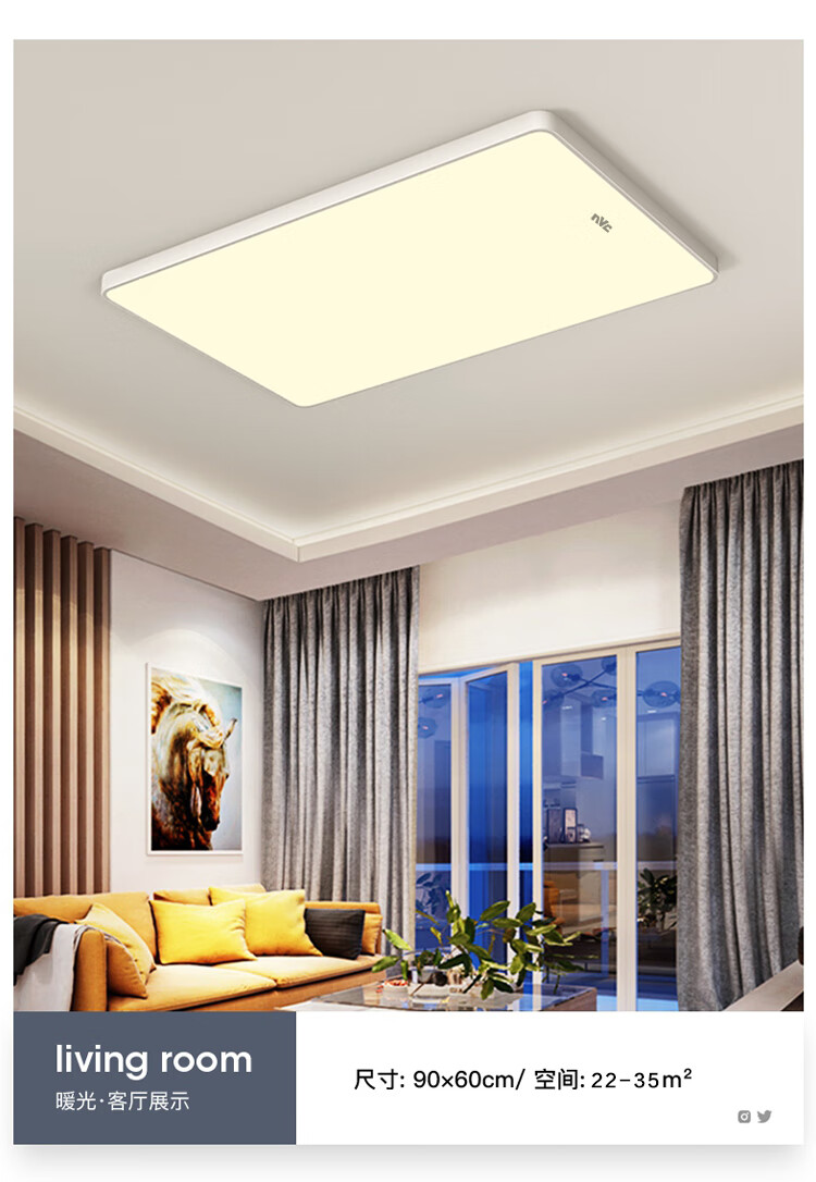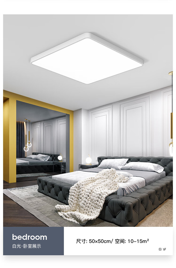 NVC Lighting 2024 New Full Spectrum Eye Protection LED Ceiling Lamp Living Room Lamp Rectangular Modern Simple Bedroom Local White 50*50 Full Spectrum Three Colors 45W