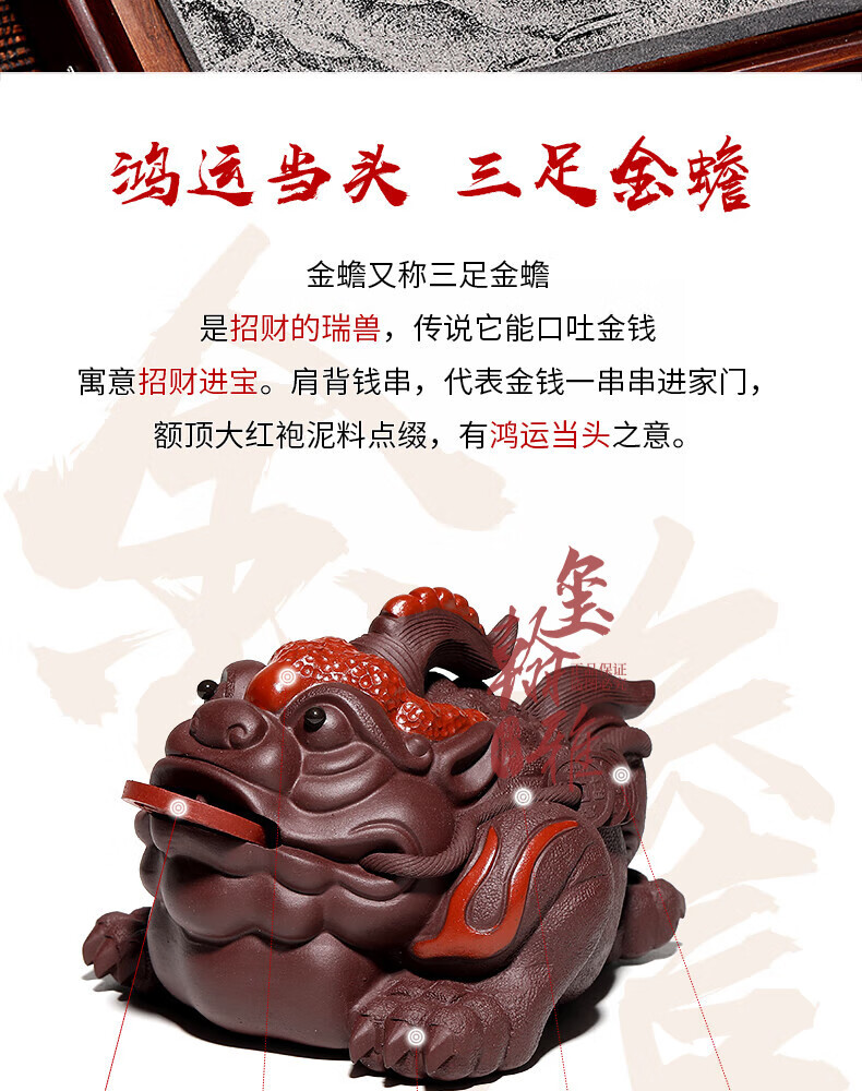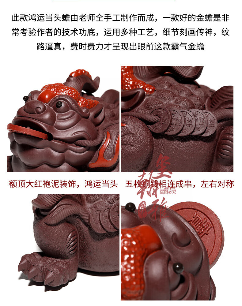 ROYHOYE Yixing Zisha Tea Pet Tea Toy Tea Set Ornaments Boutique Can Raise Toad Teapot Tea Ceremony Accessories Large Three-Legged Golden Toad Three-legged Golden Toad - Good Luck