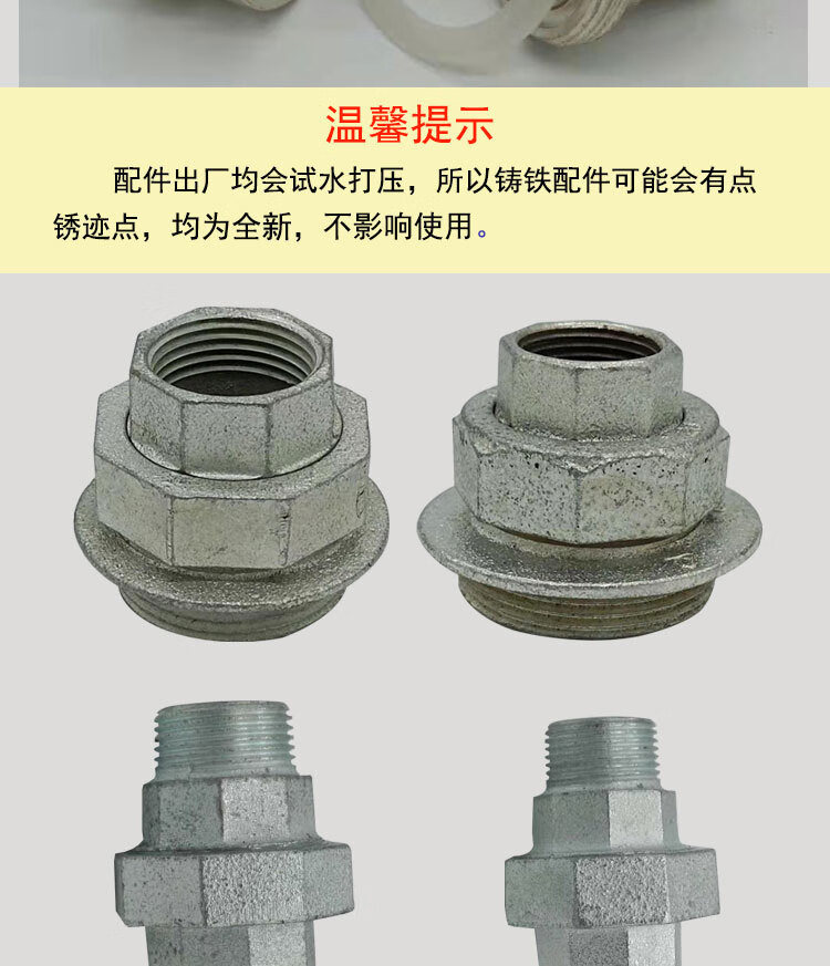 6-minute 1-inch double outer wire union floor heating manifold DN25 cast iron heating 1.5-inch butt joint Malleable steel pipe fittings anti-wire DN40 variable 1.2-inch Malleable steel fittings live joint delivery