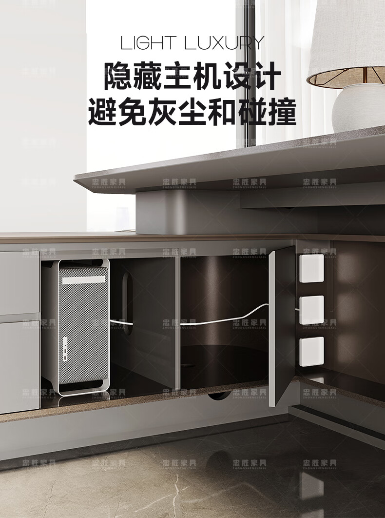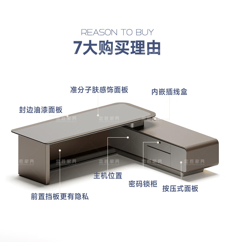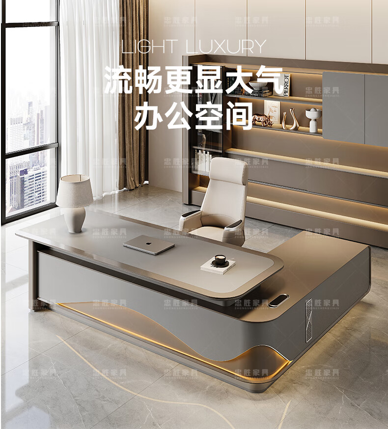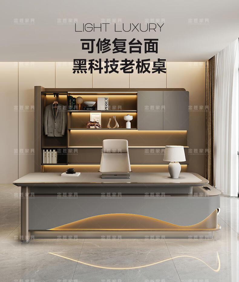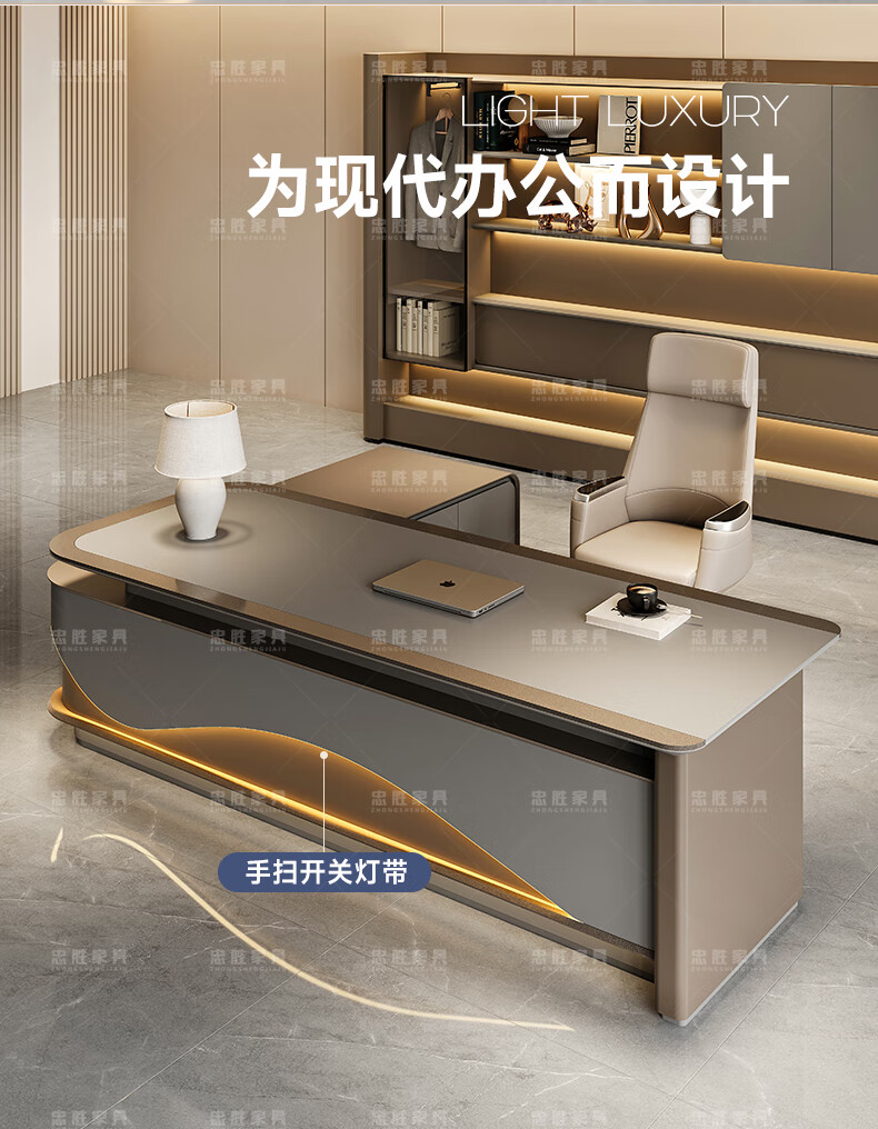 Zhongsheng Office Furniture High-end Office Desk Boss Desk Simple Modern Desk and Chair Combination Light Luxury Chairman Executive Desk Office Furniture 1.8 Meter Boss Desk Intelligent Sensor Lighting