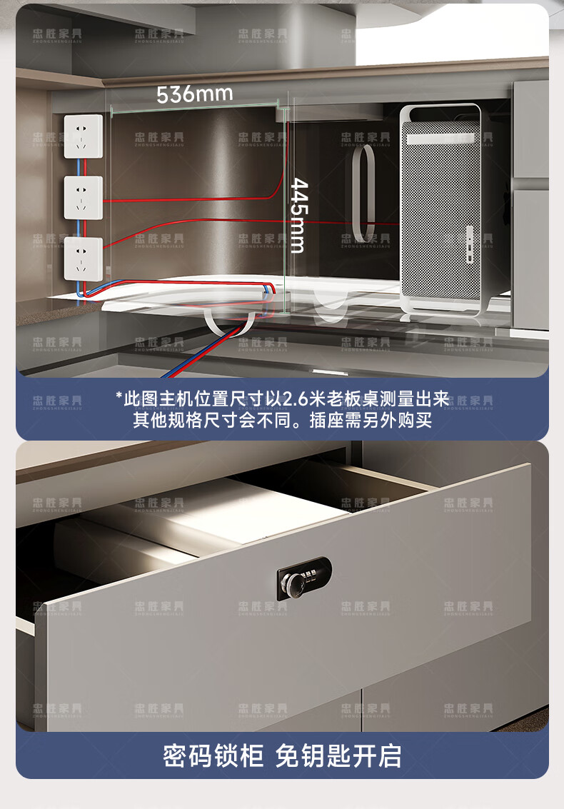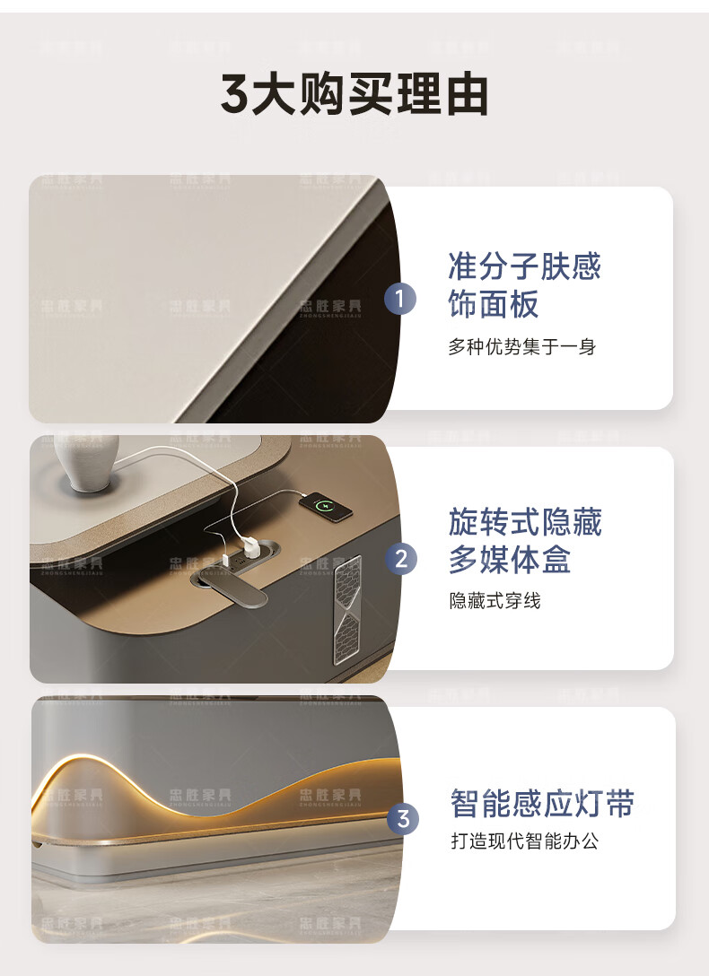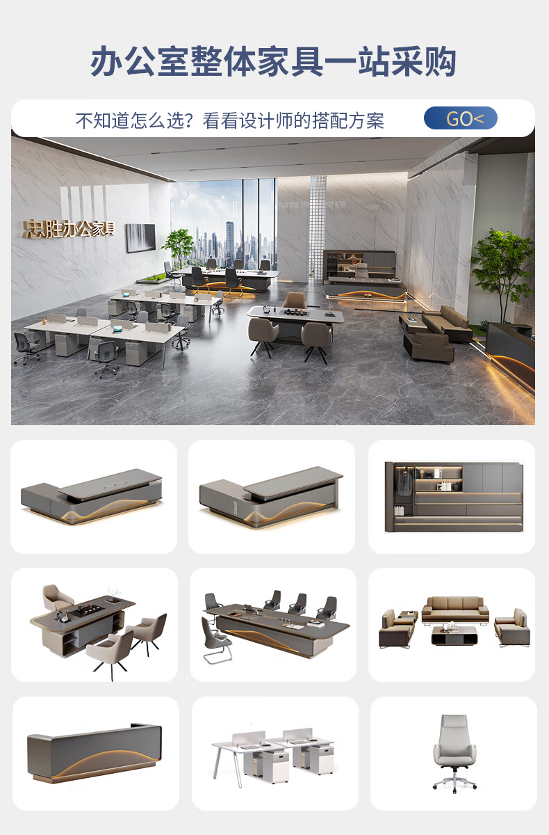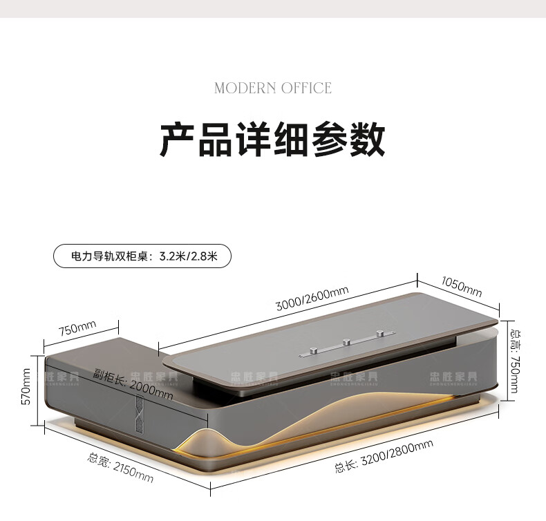 Zhongsheng Office Furniture High-end Office Desk Boss Desk Simple Modern Desk and Chair Combination Light Luxury Chairman Executive Desk Office Furniture 1.8 Meter Boss Desk Intelligent Sensor Lighting