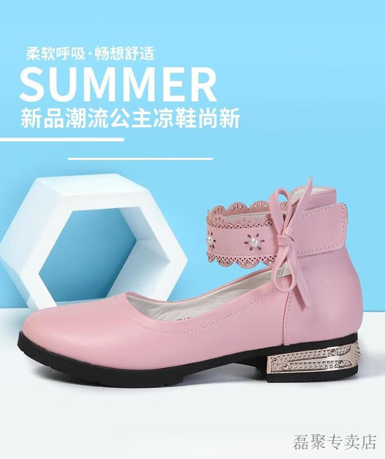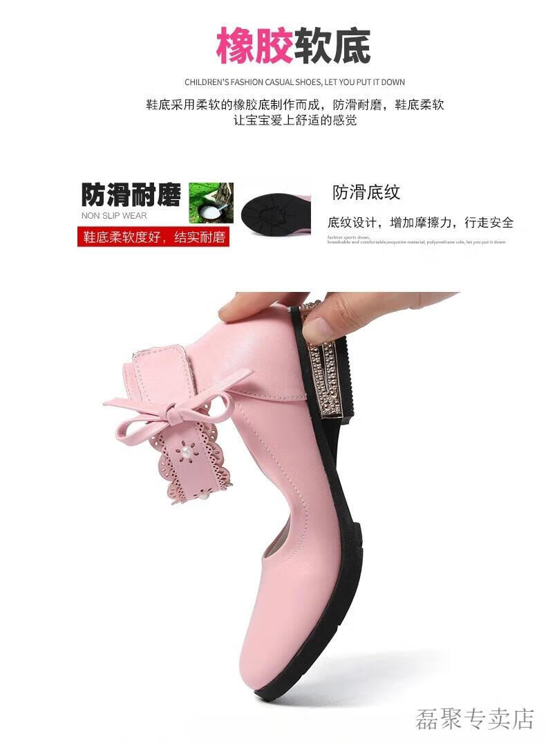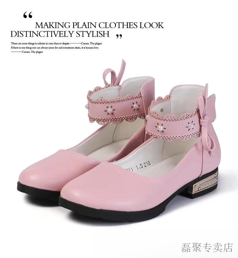 G.duck girls' leather shoes 2024 new spring and autumn college style Korean style versatile princess performance shoes student soft leather shoes non-slip pink 33 (shoe inner length 20.8cm)