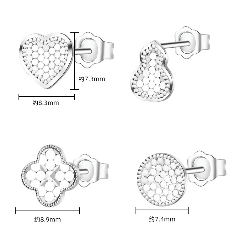 Jin Duoxi Pt950 platinum earrings for women, mirror platinum earrings, gourd four-leaf clover, Valentine's Day gift for girlfriend, platinum round earrings, about 2-2.2 grams