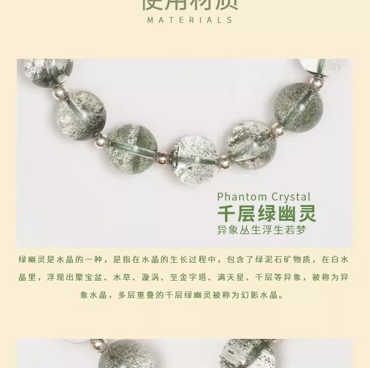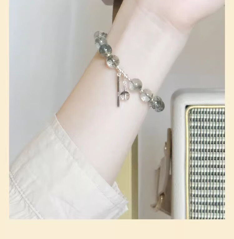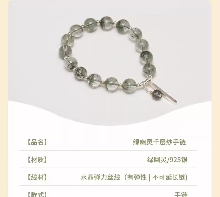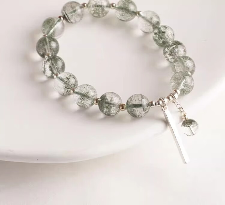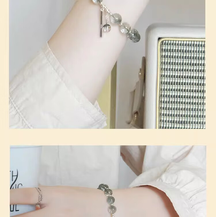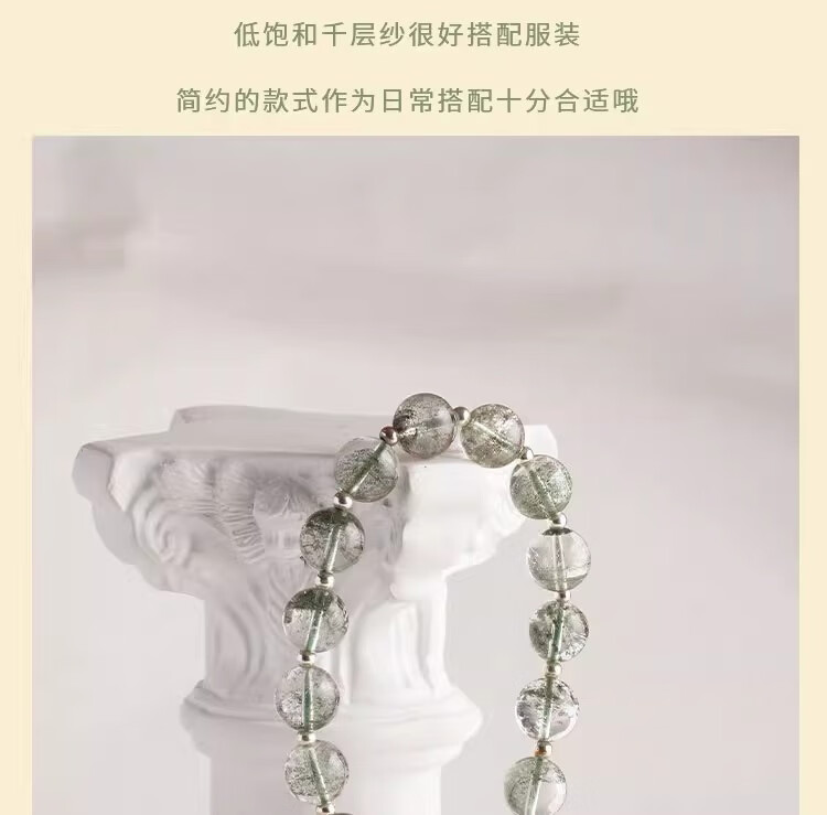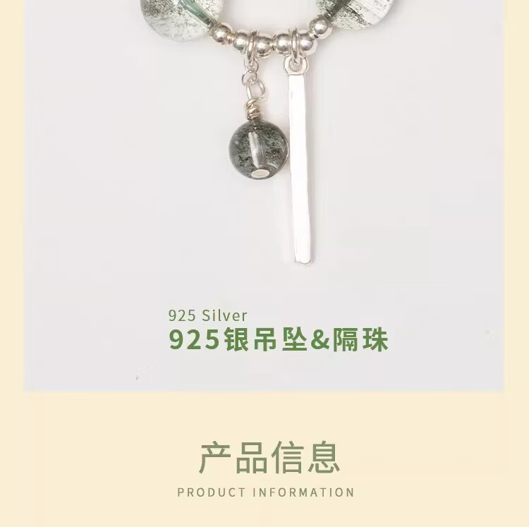 BOSFRU original design natural green ghost melaleuca crystal women's bracelet simple style sterling silver high-end gift for girlfriend, suitable for clean hands 15cm