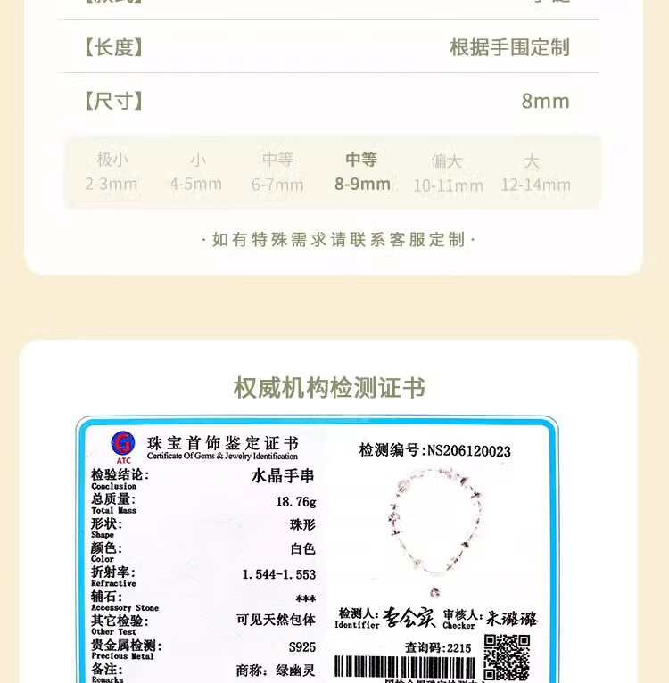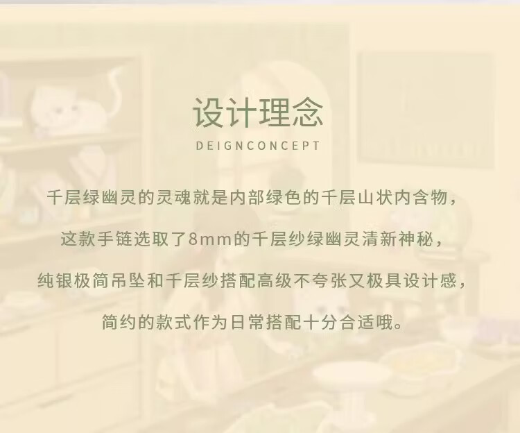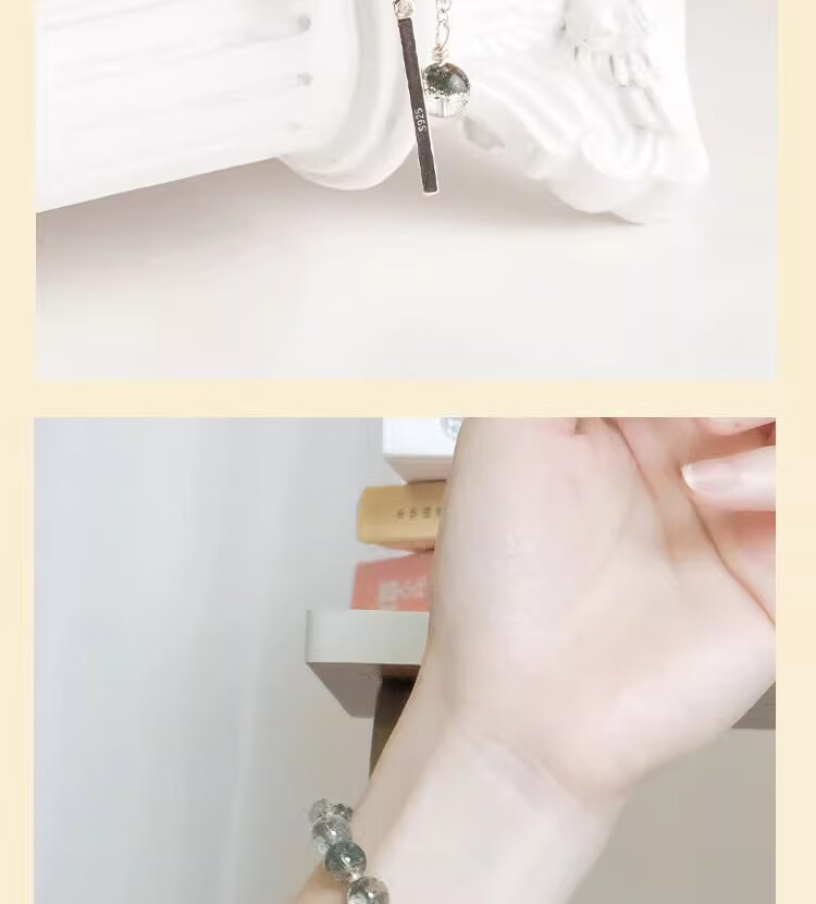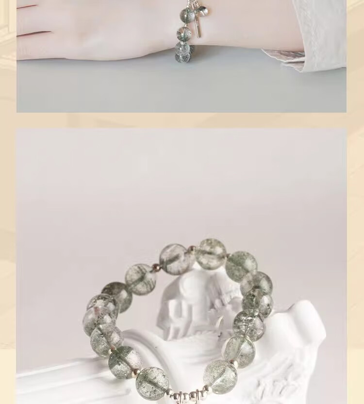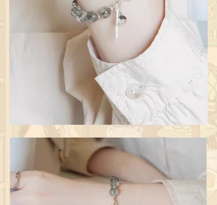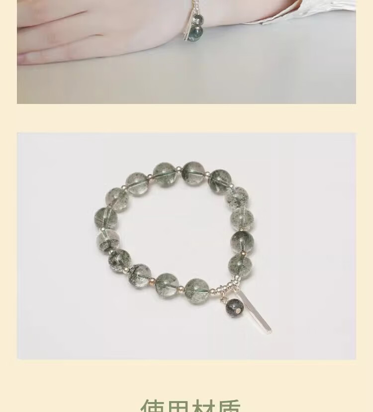 BOSFRU original design natural green ghost melaleuca crystal women's bracelet simple style sterling silver high-end gift for girlfriend, suitable for clean hands 15cm