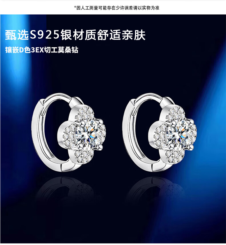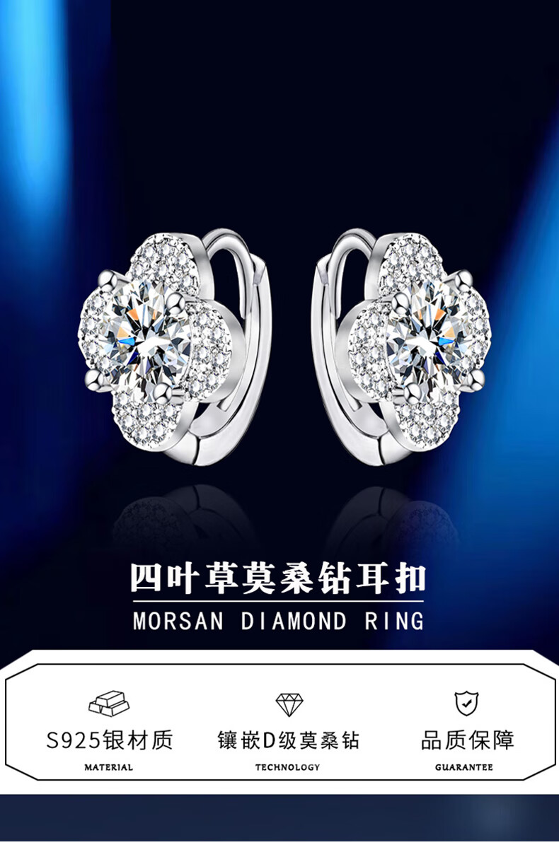 Fashionable four-leaf clover silver earrings for women, moissanite diamond earrings, Chinese Valentine's Day gifts for girls, girlfriends and wives EH025 four-leaf clover diamond earrings 1 carat pair