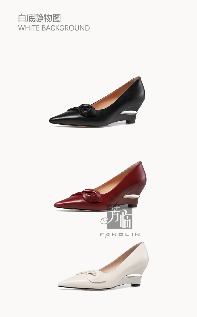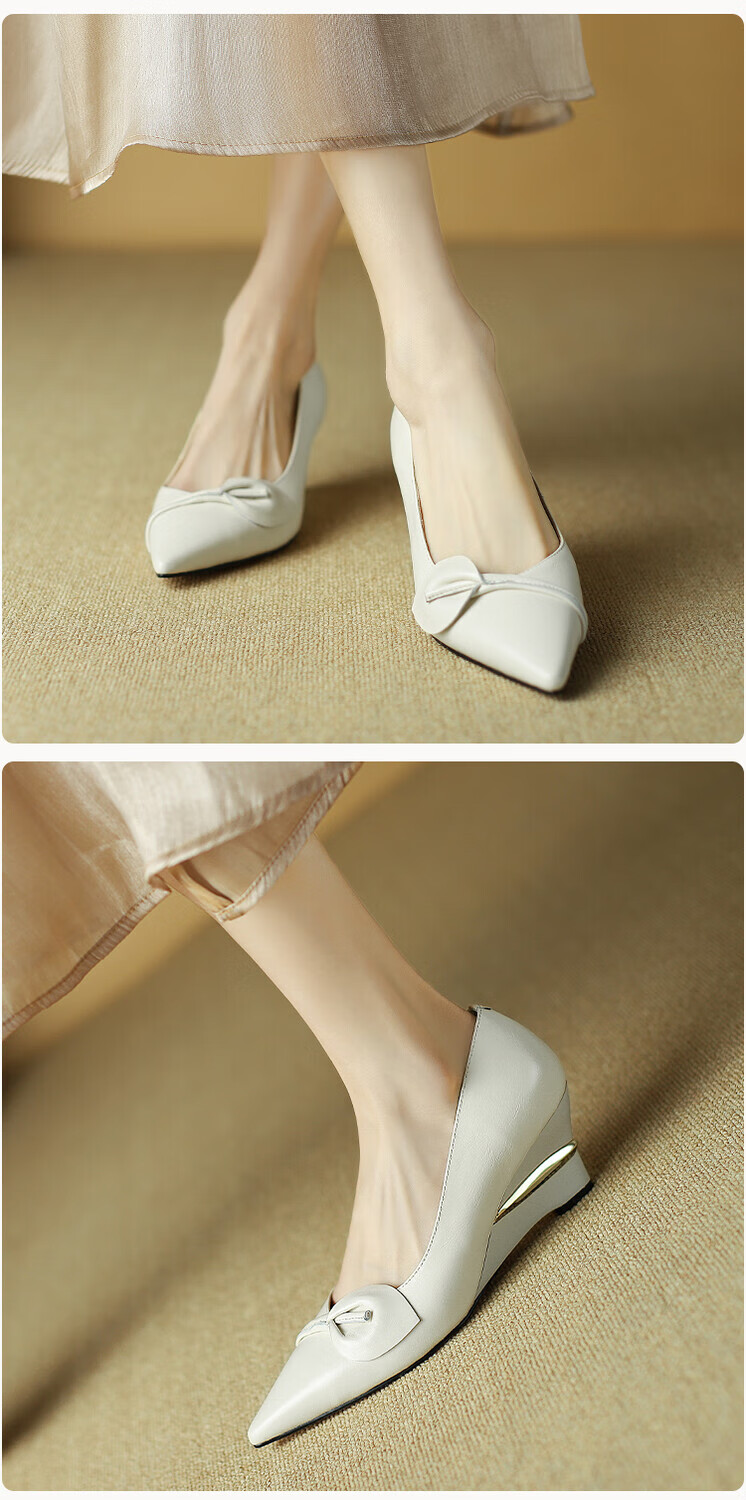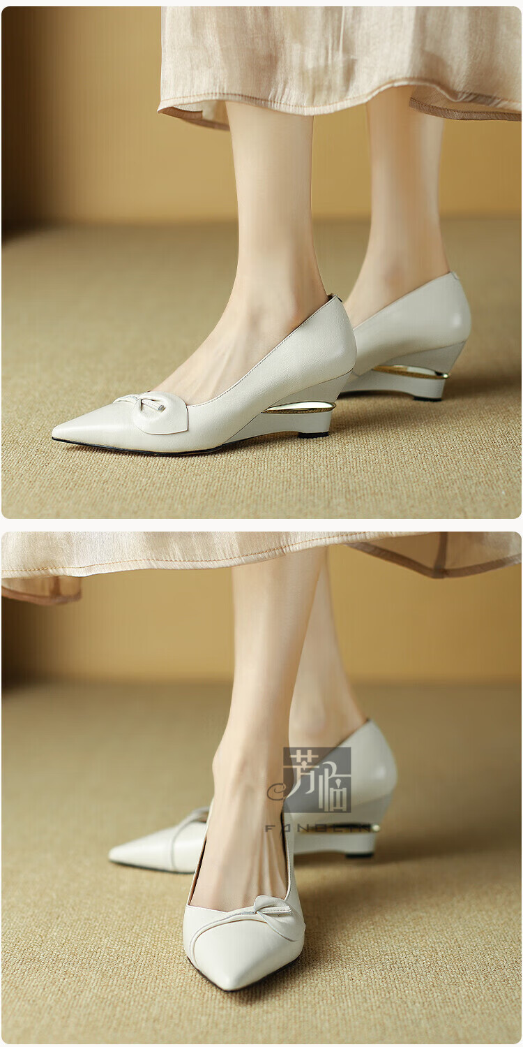 Fanglin Light Luxury Brand Genuine Leather Wedge Pump Shoes Women's 2025 Summer New Outerwear Pointed Toe Thick Heel High Heels White 38
