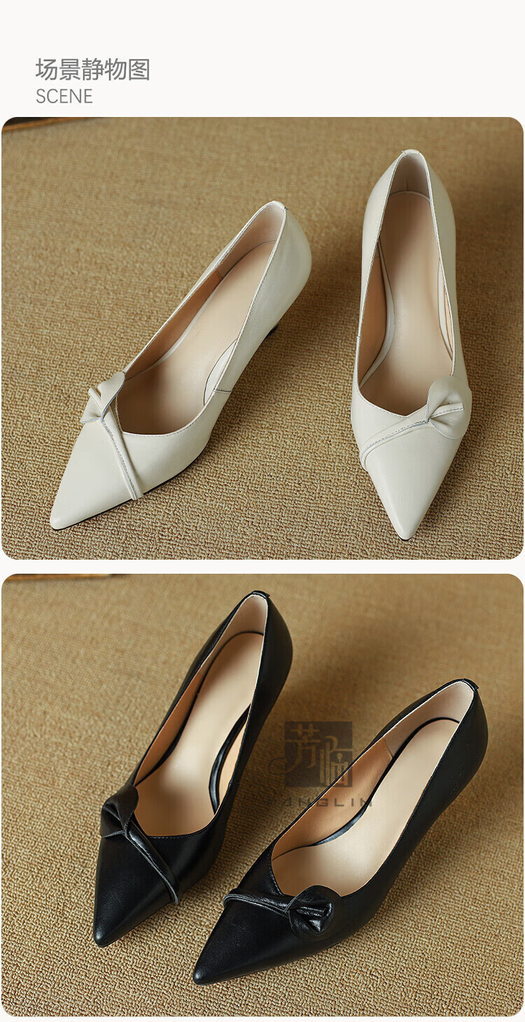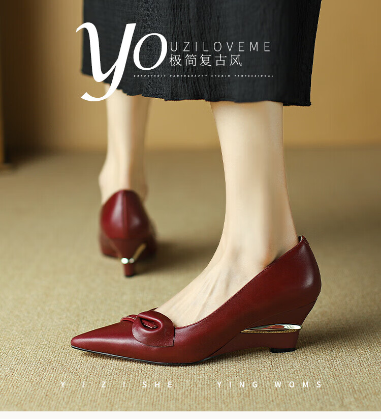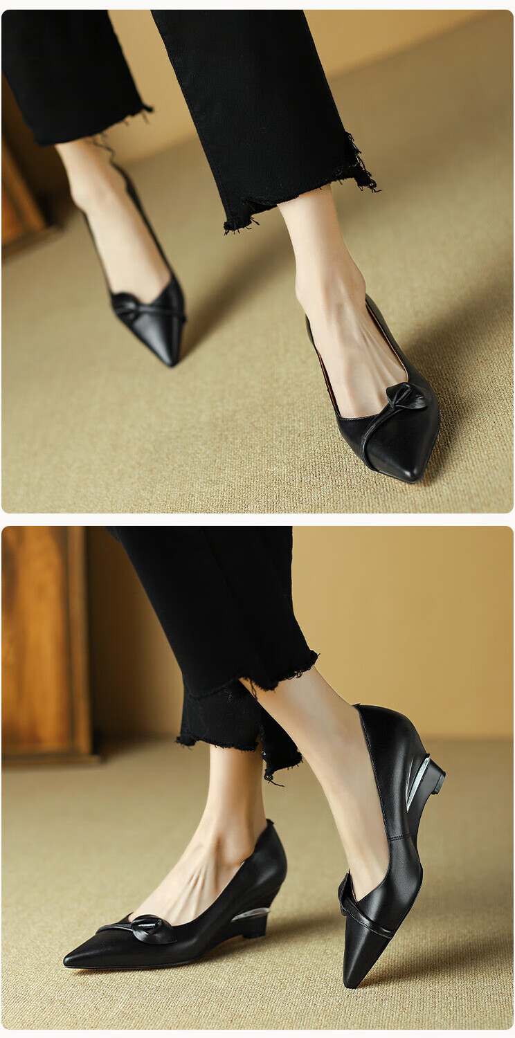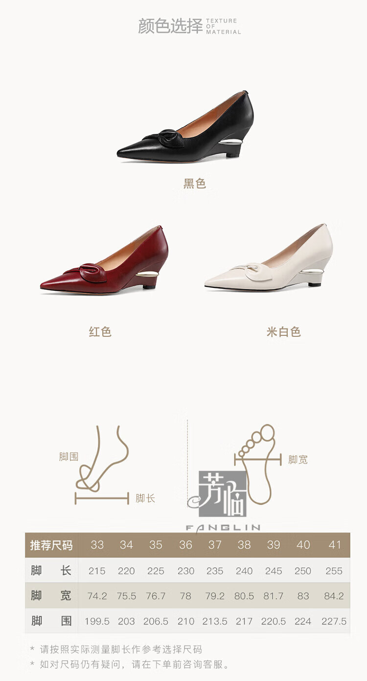 Fanglin Light Luxury Brand Genuine Leather Wedge Pump Shoes Women's 2025 Summer New Outerwear Pointed Toe Thick Heel High Heels White 38