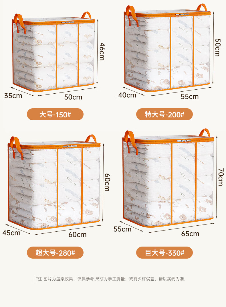 Youna quilt storage bag, large capacity, down quilt, quilt, down jacket, special artifact bag, luggage packing bag, moisture-proof, orange 330#, can hold about 8 quilts
