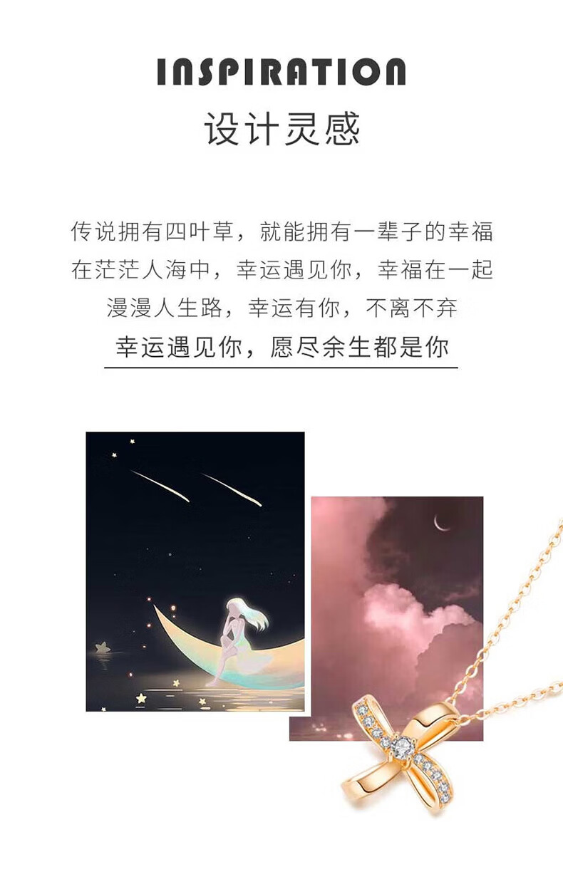 Farcoko 18K gold luxury necklace women's brand four-leaf clover gold pendant Valentine's Day gift for girlfriend and wife 520 Galaxy four-leaf clover necklace SF Express engraving greeting card gold color