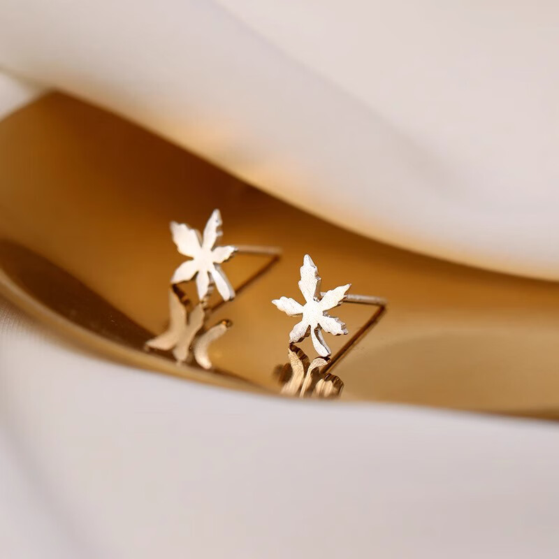 Yican S999 Silver Needle Maple Leaf Earrings Women's Niche Design Trendy Earrings 2025 New Hot Style Light Luxury High-end Earrings Earrings