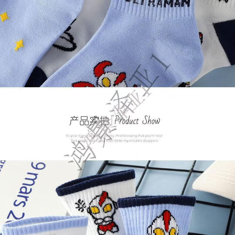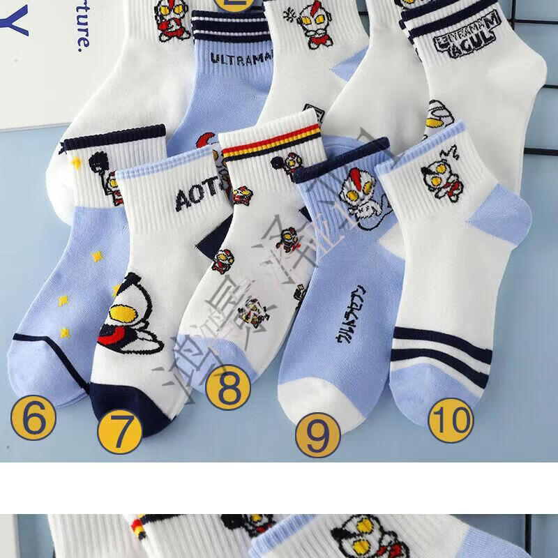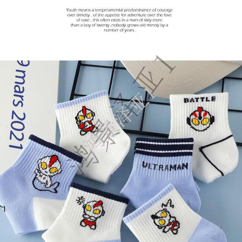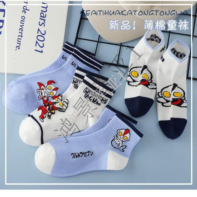 G.duck children's socks thin pure cotton short-tube cartoon Ultraman children's autumn and winter anti-odor student socks for large, medium and small children, 1 pair of each style, 10 pairs, 5-8 years old (recommended shoe size 26-32) M
