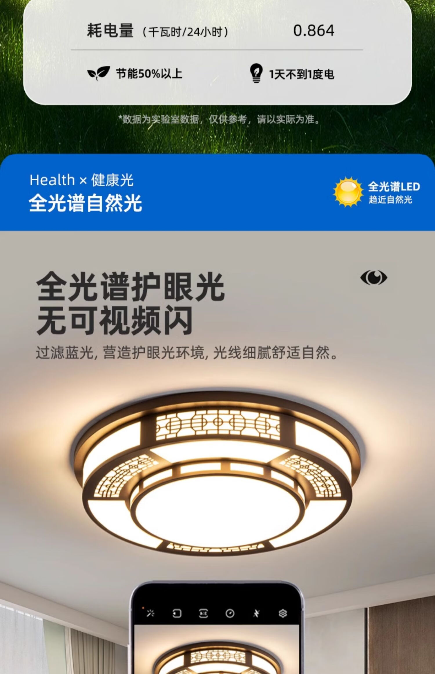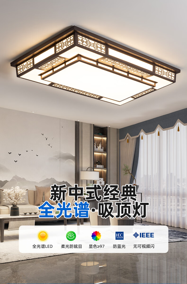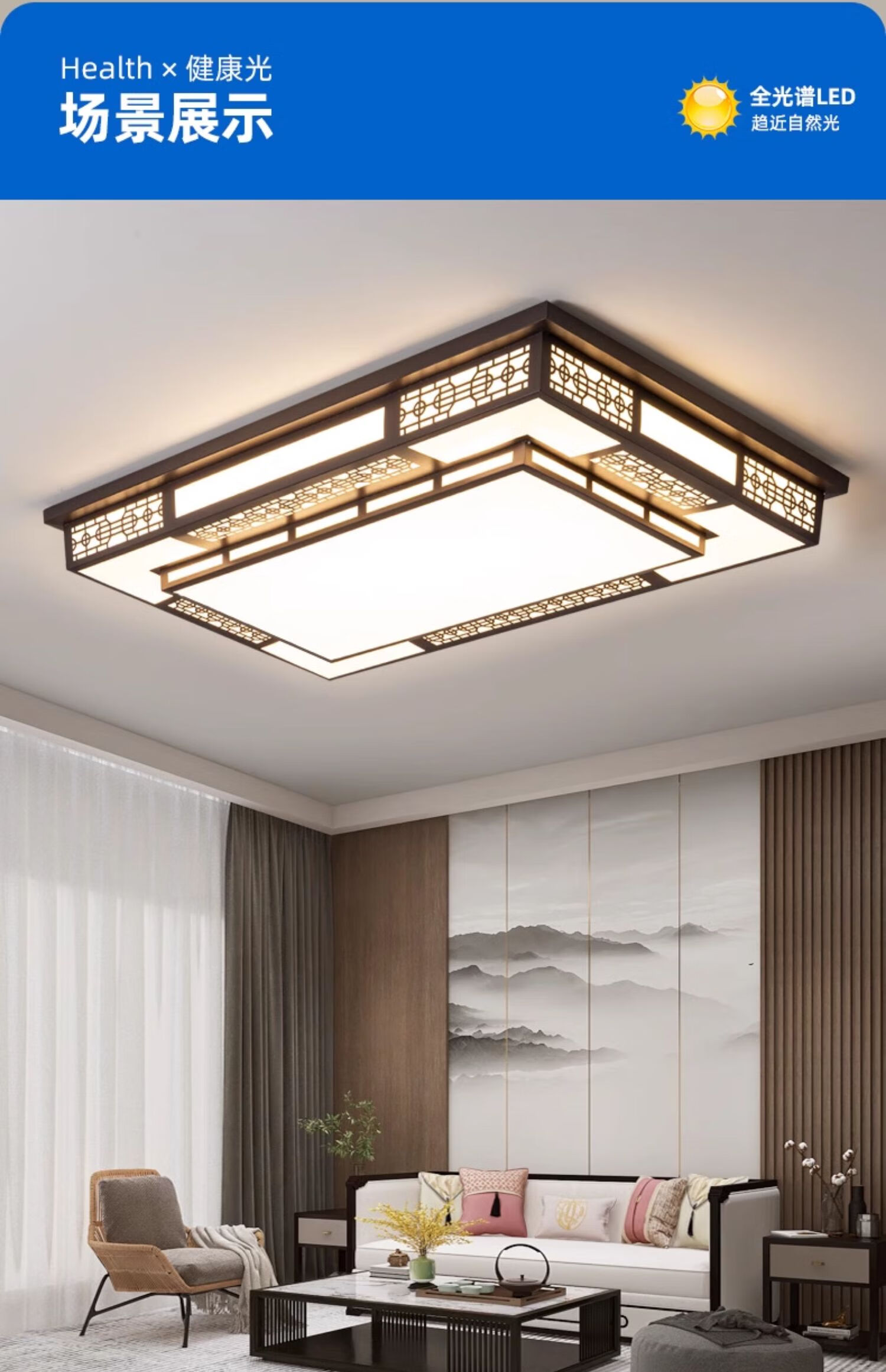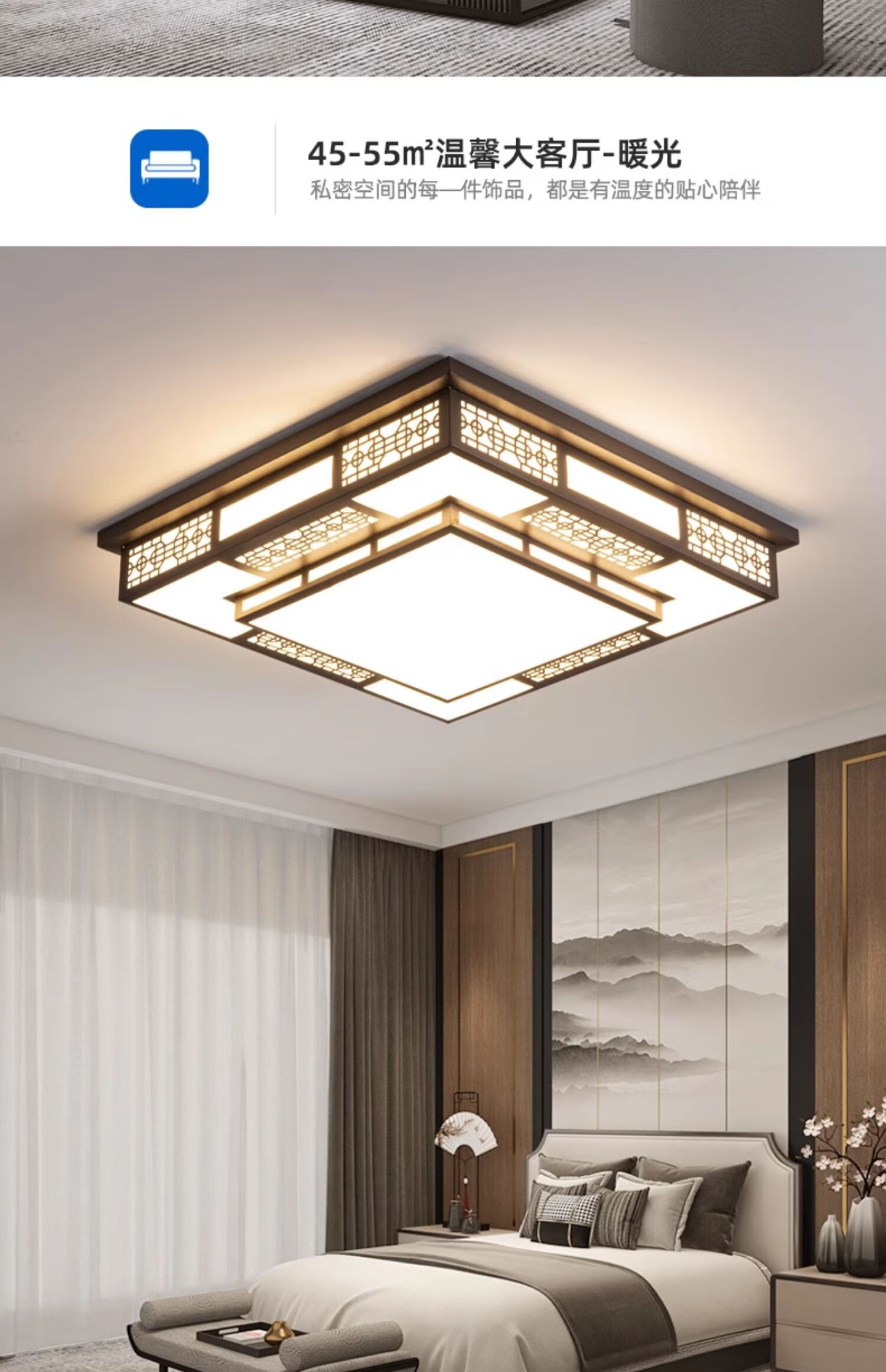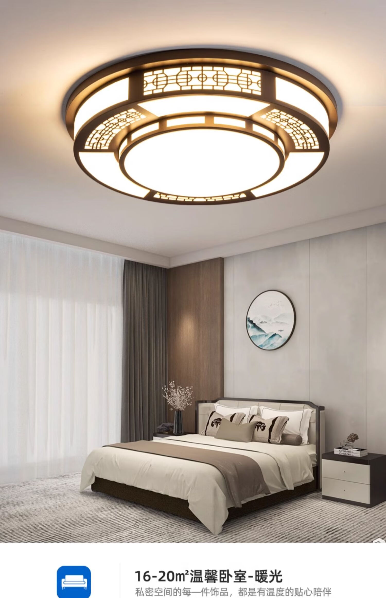Jihuo 2024 new style living room lamp, new Chinese style hall lamp, Chinese style bedroom lamp, high brightness creative led study ceiling lamp, coffee color - diameter 120*80CM, three-color dimming 168 watts