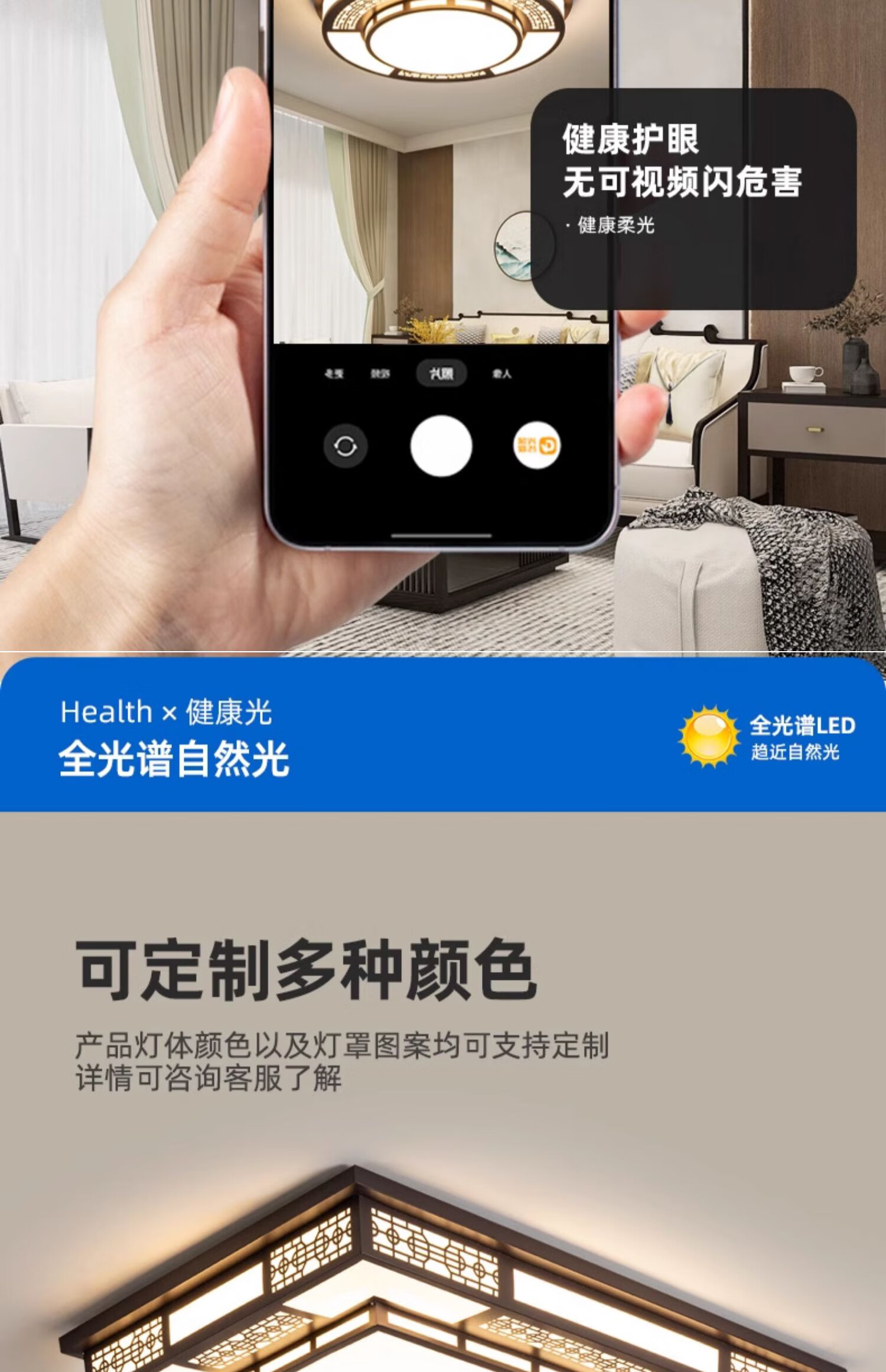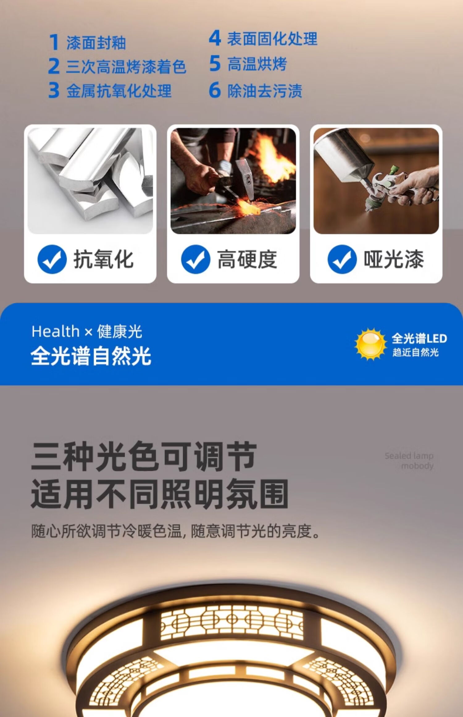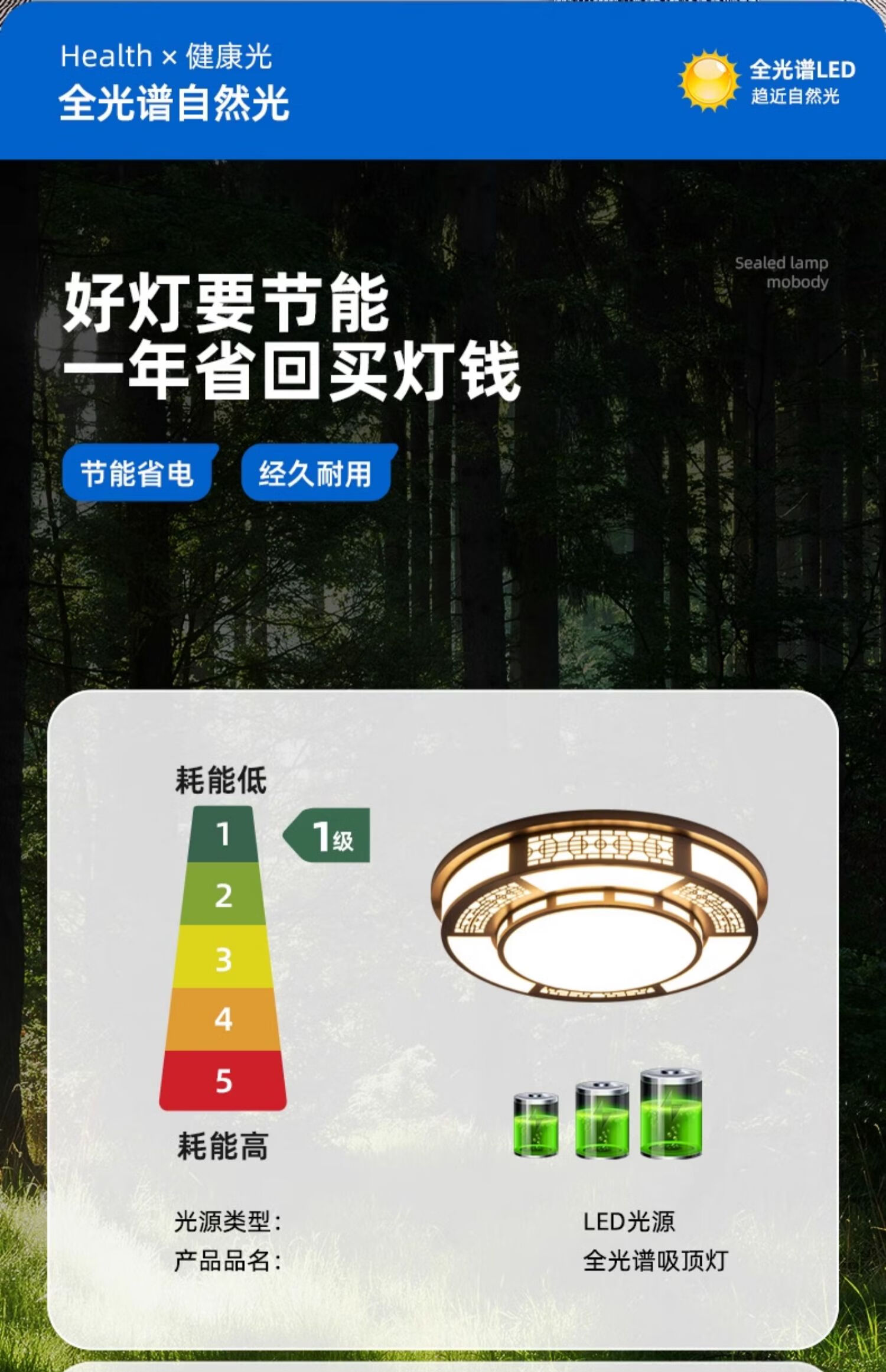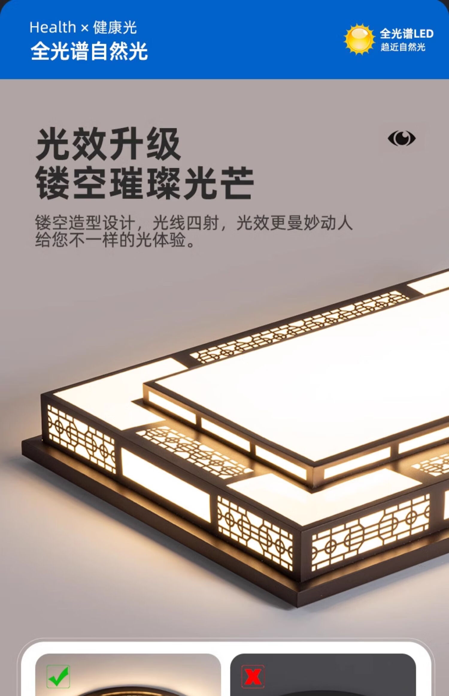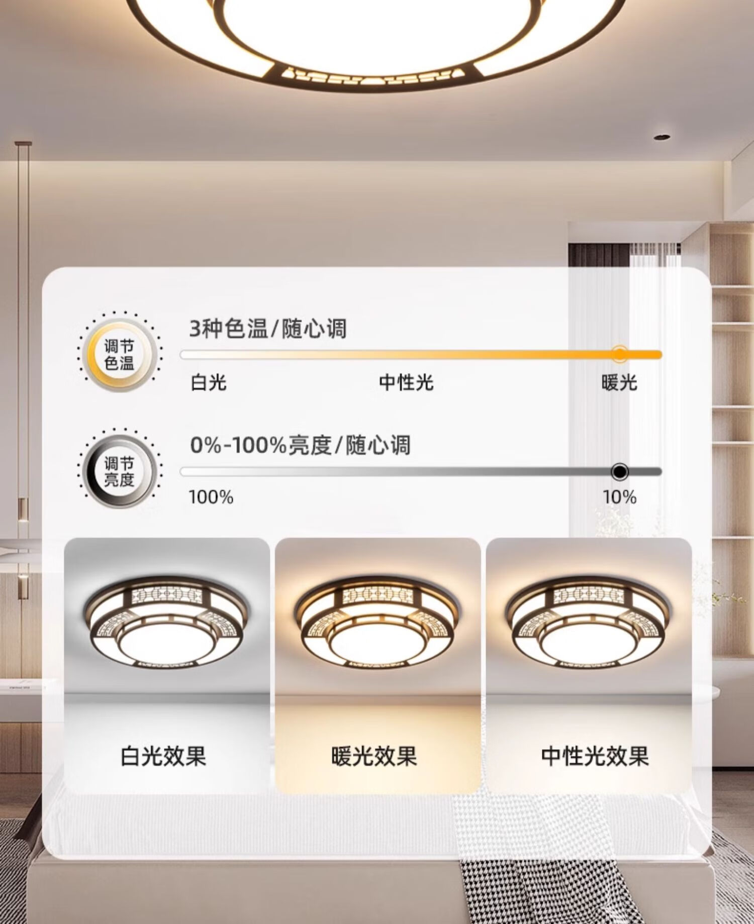 Jihuo 2024 new style living room lamp, new Chinese style hall lamp, Chinese style bedroom lamp, high brightness creative led study ceiling lamp, coffee color - diameter 120*80CM, three-color dimming 168 watts