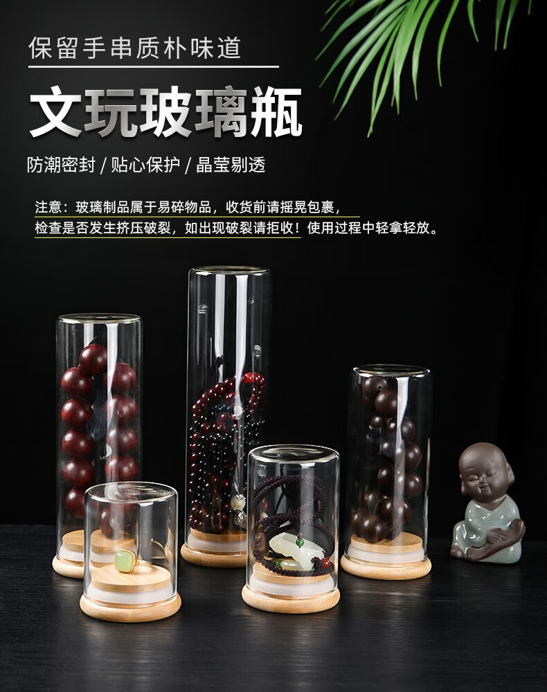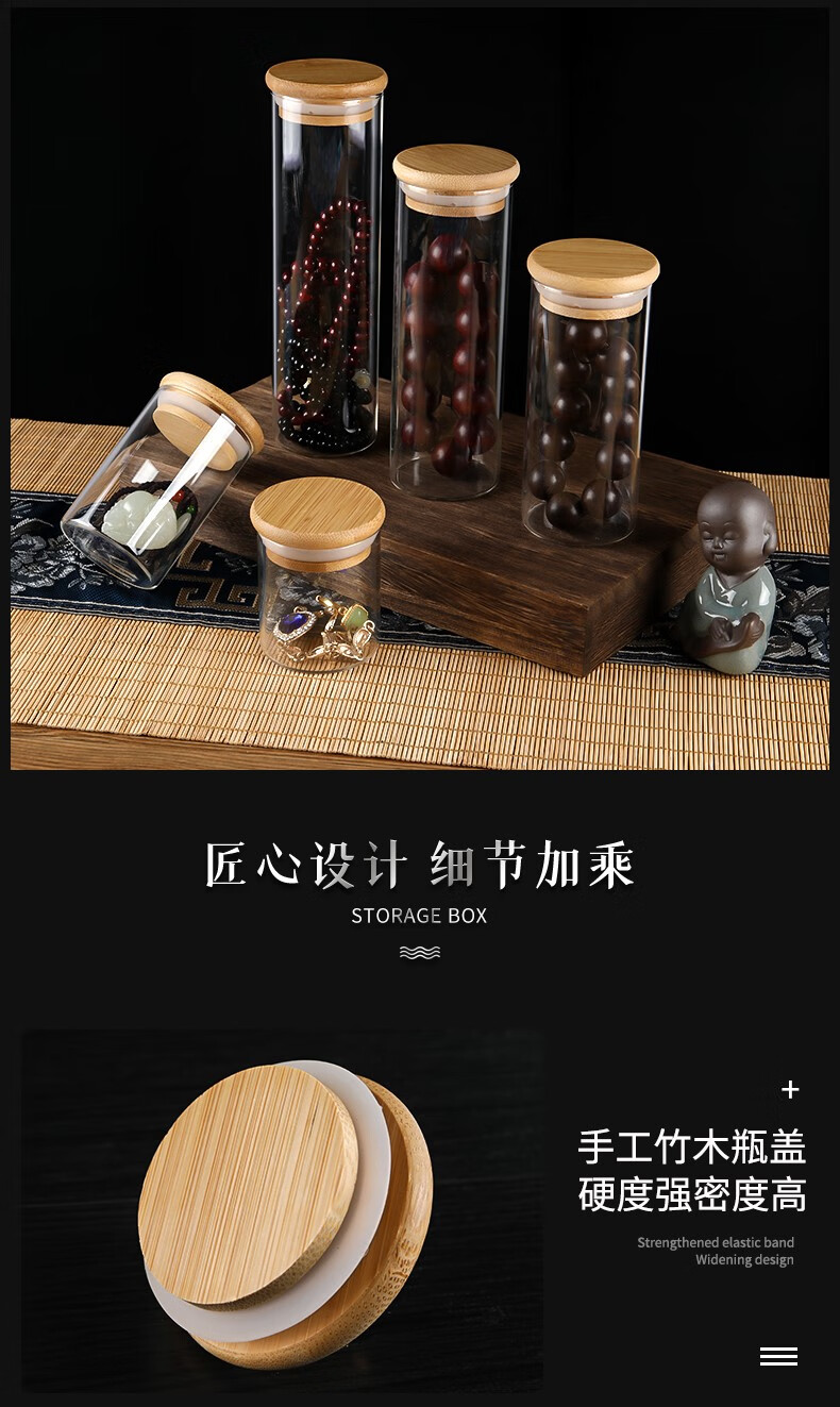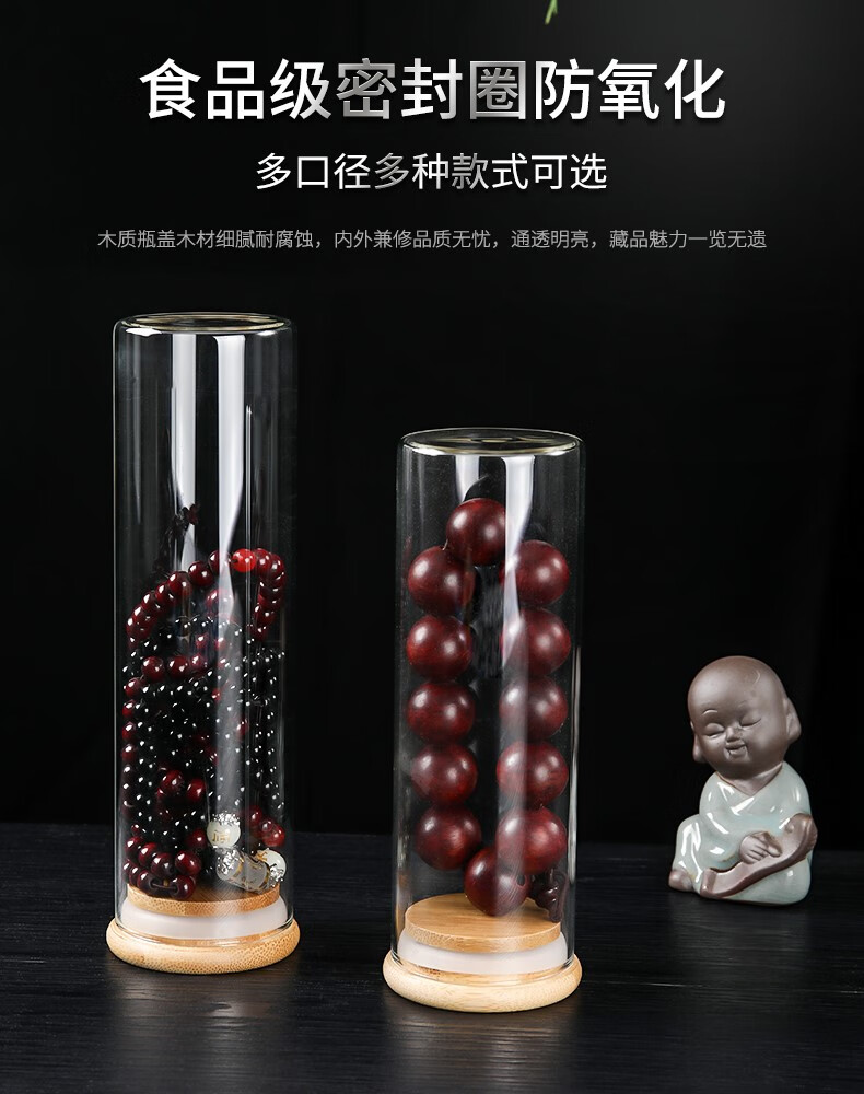 Yanci transparent play storage sealed jar glass bottle agarwood beads bracelet walnut display box cultured pearl jar small box 5.3x15 can hold 2.0 beads