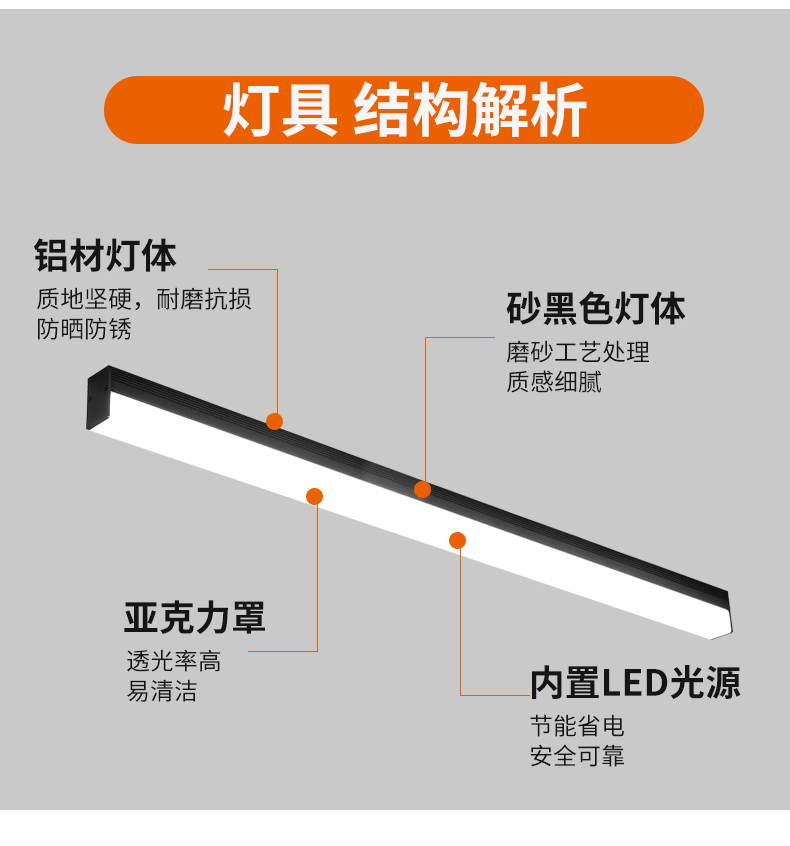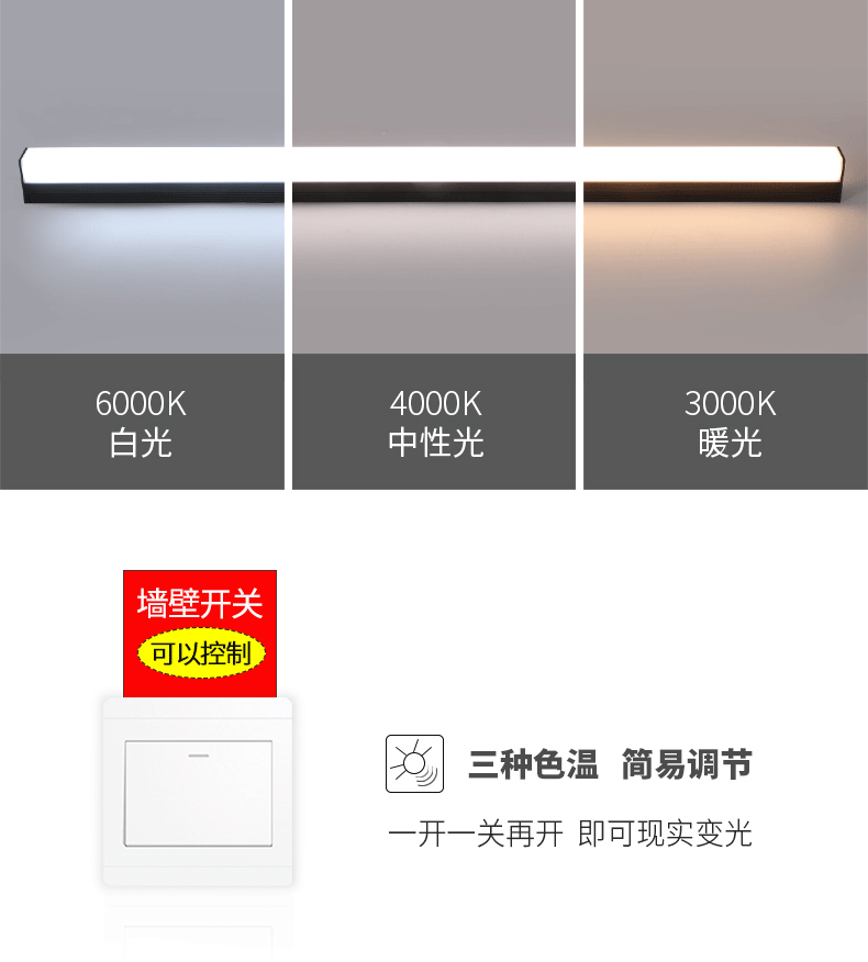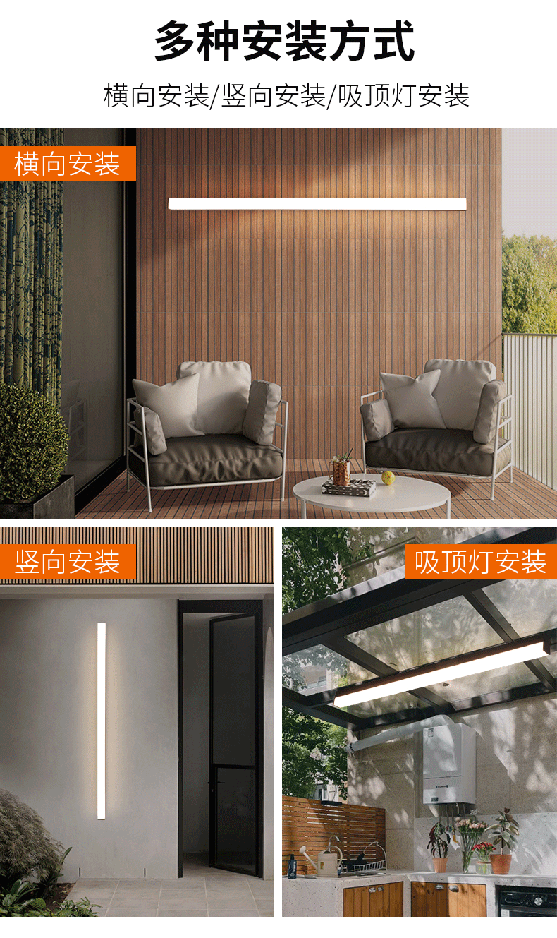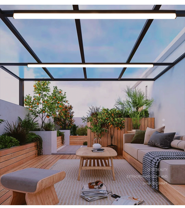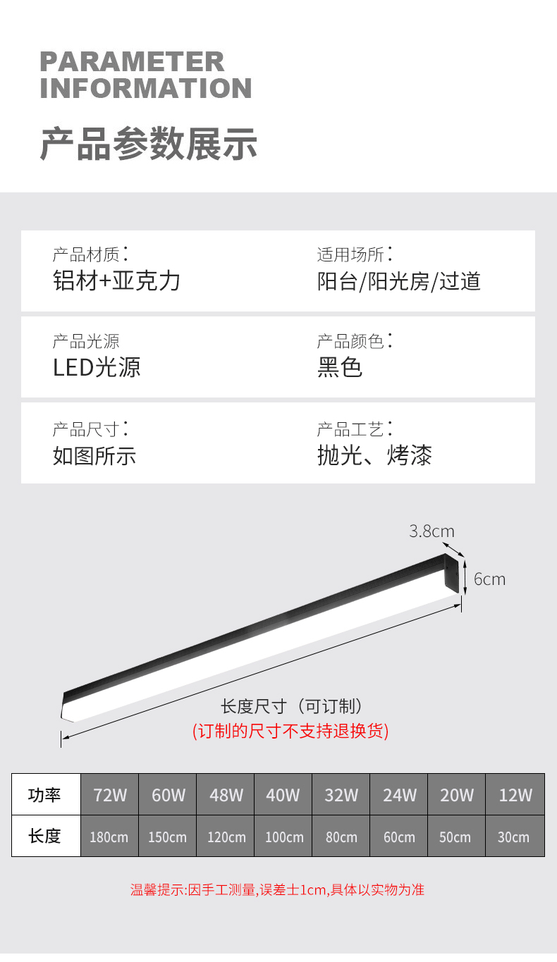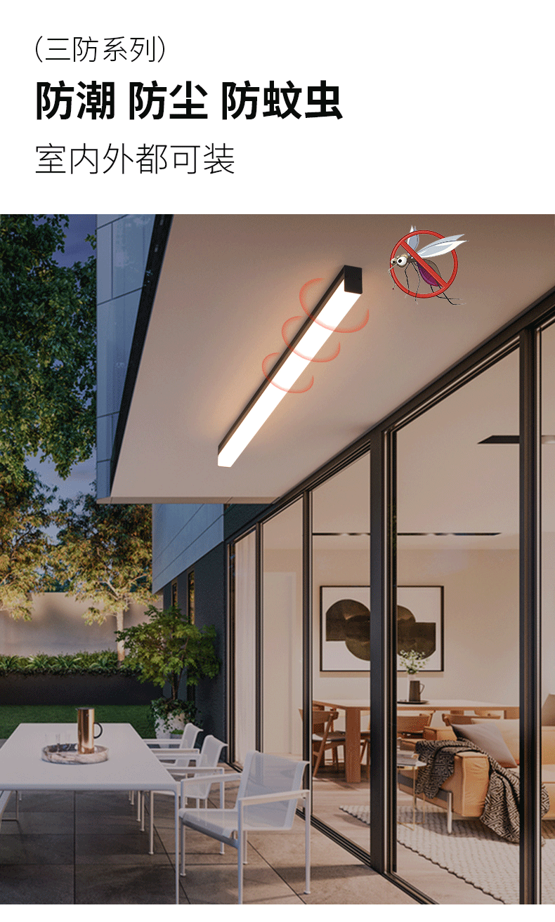 Yilin (yilin) glass sunroom special lamp long strip three-proof balcony lamp ceiling lamp canopy eaves super bright strip lamp length 30CM wide 3.8CM-12W three-color dimming three sides