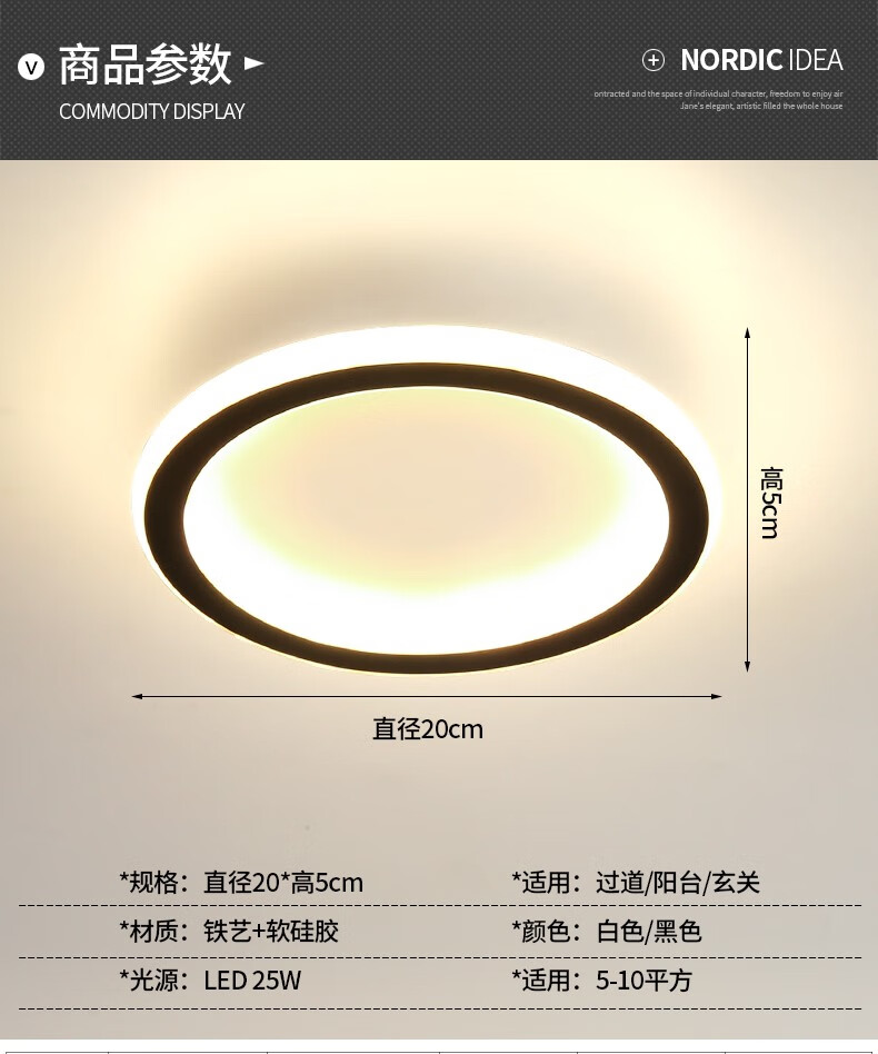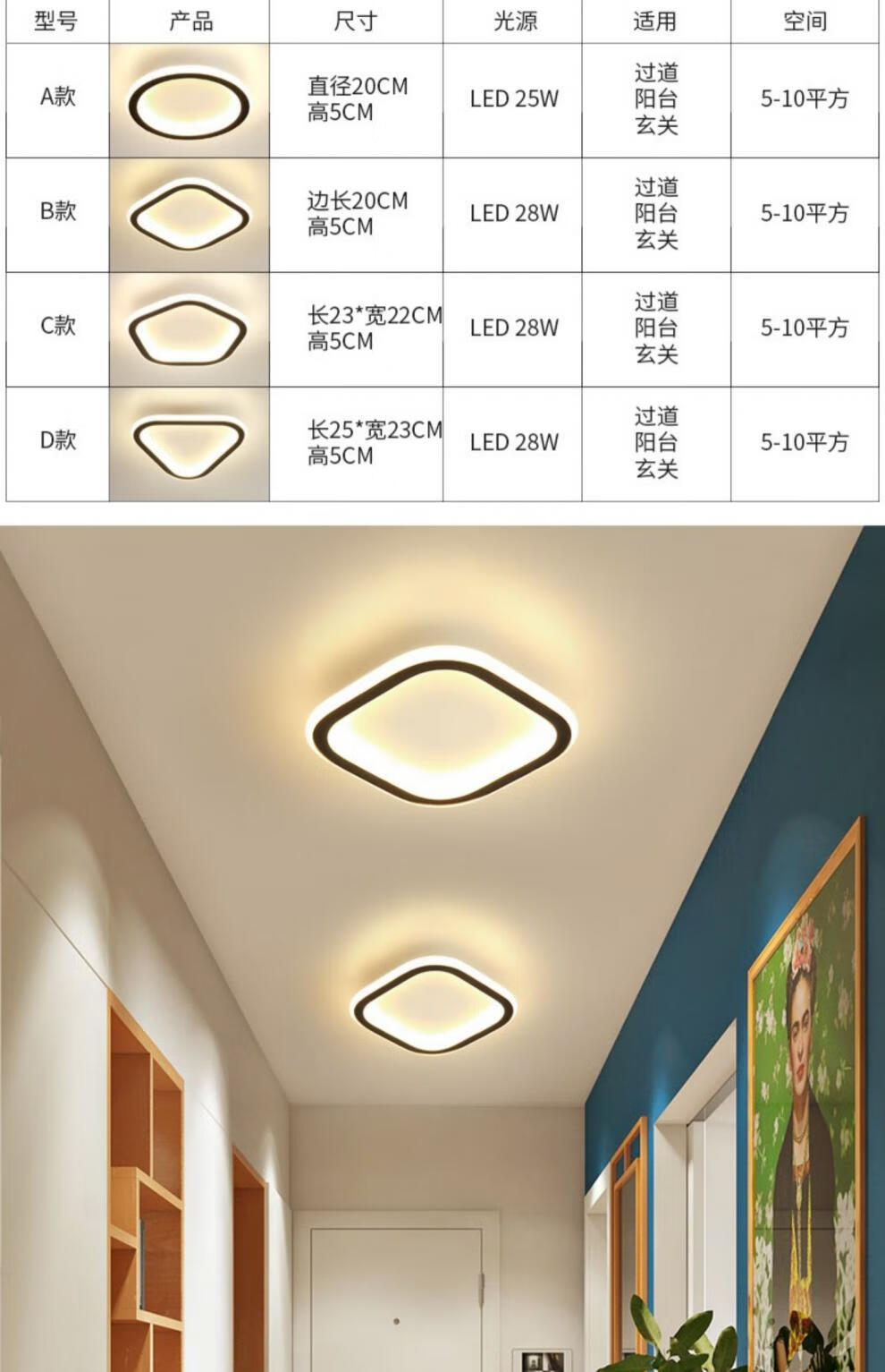 祎琳LED吸顶灯现代简约阳台过道走廊衣帽间入户玄关小灯长条灯具 五边20cm20w/白光